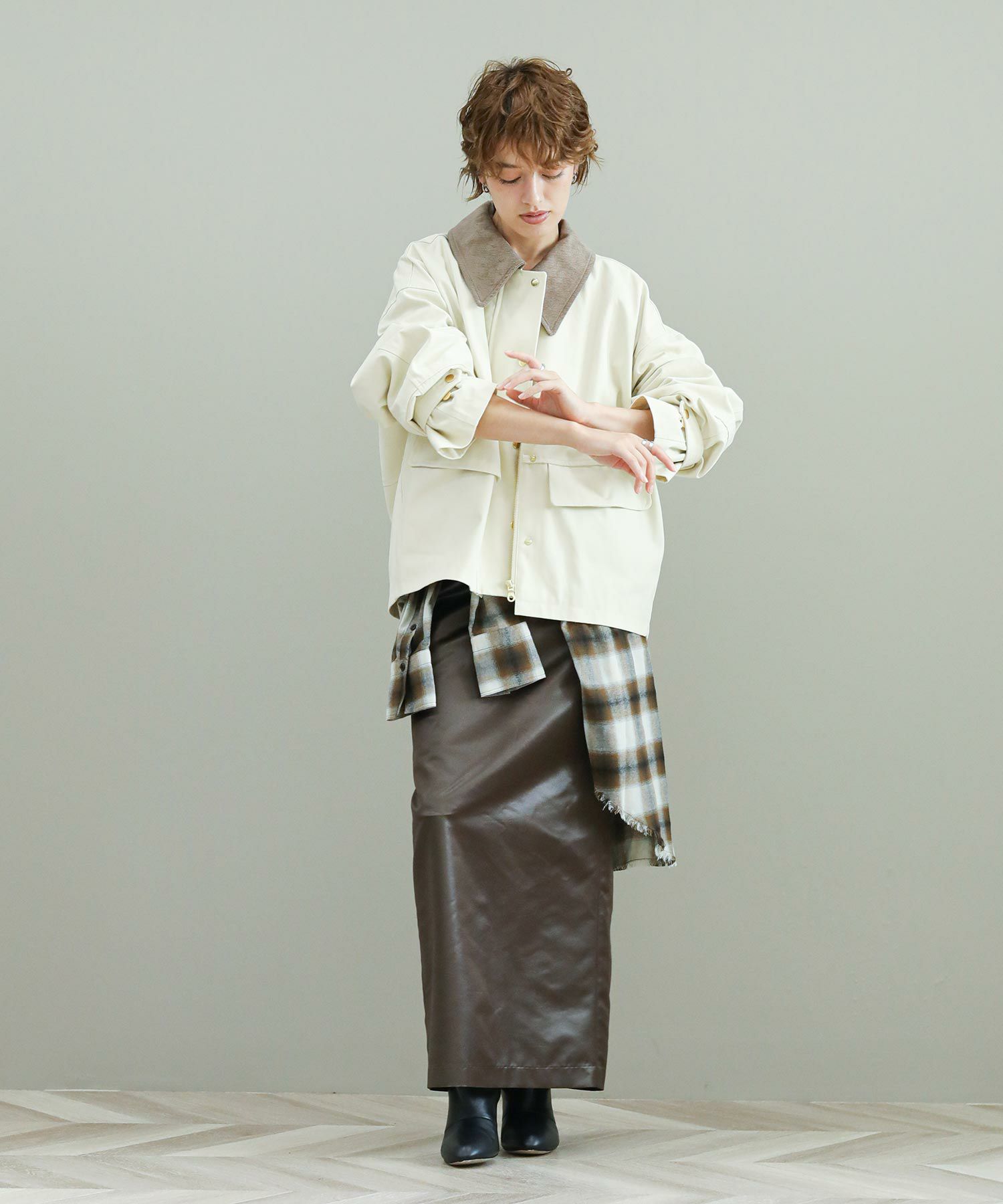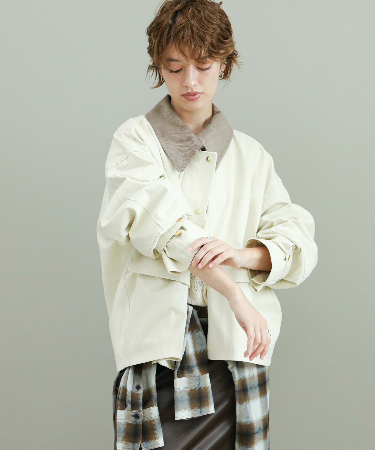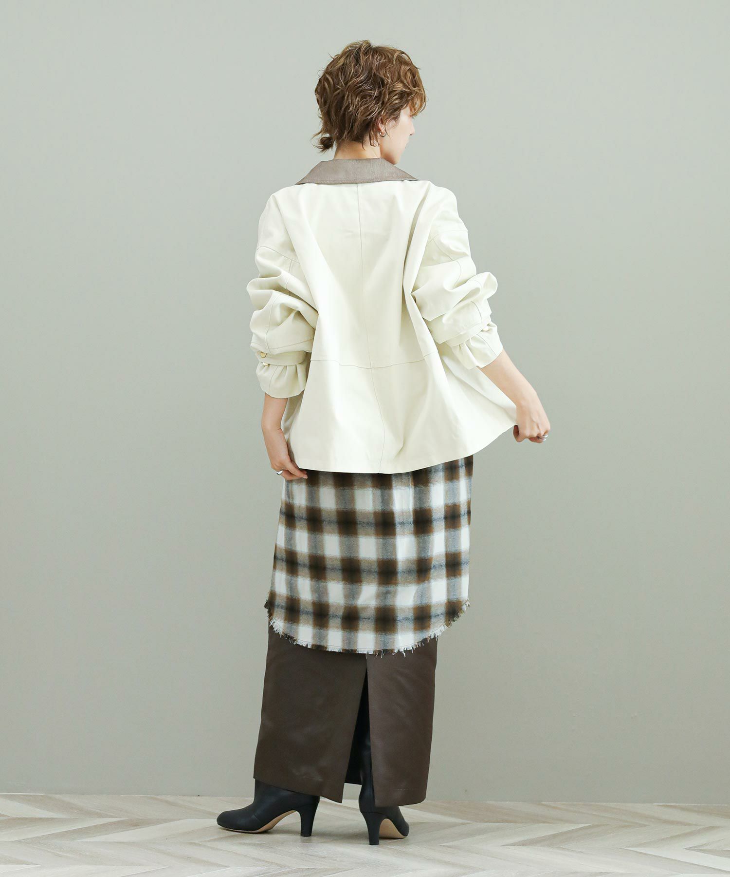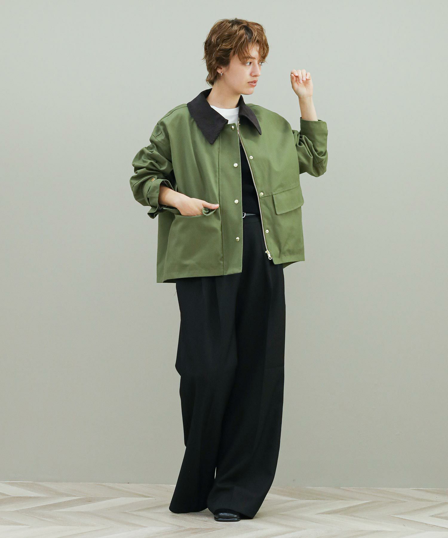 ※着用画像は撮影状況、光の当たり具合で色みが違って見える場合がございます。実際の色みについては、画像一覧の最後に掲載している詳細画像をご参照ください。