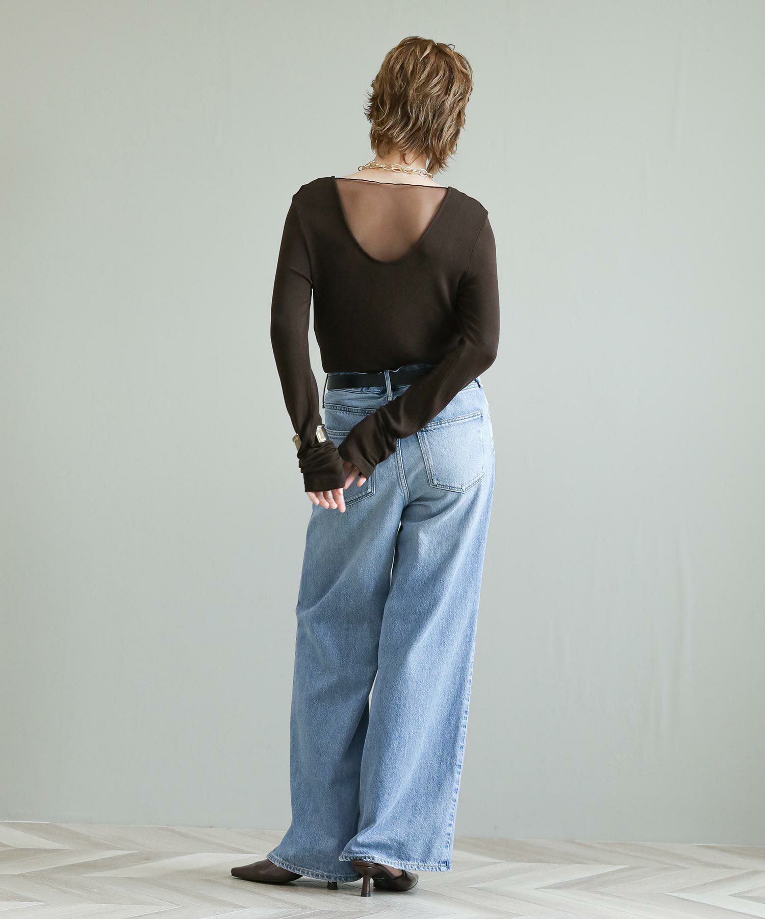 ※着用画像は撮影状況、光の当たり具合で色みが違って見える場合がございます。実際の色みについては、画像一覧の最後に掲載している詳細画像をご参照ください。