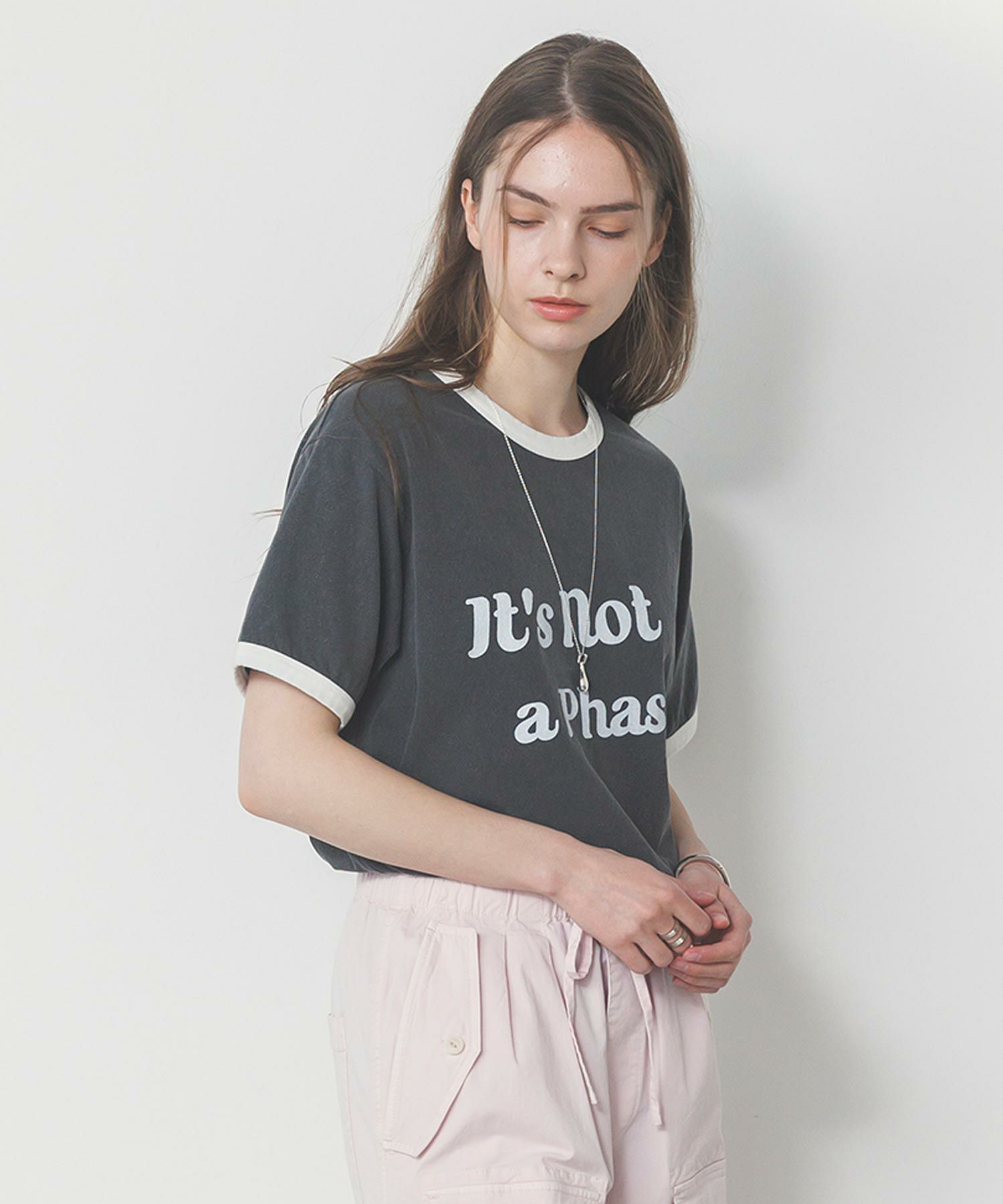 特殊な染色方法で染めるピグメント生地を使用し、ヴィンテージ感あるルックスなのがこだわりのポイント。カーゴパンツにサンダルでカジュアルに楽しんでもらいたい一着。「it’s not a phase」(”これが自分のスタイルなんだ”と自己主張するような時に使うスラング)のメッセージが心くすぐる、遊び心のあるデザインです。