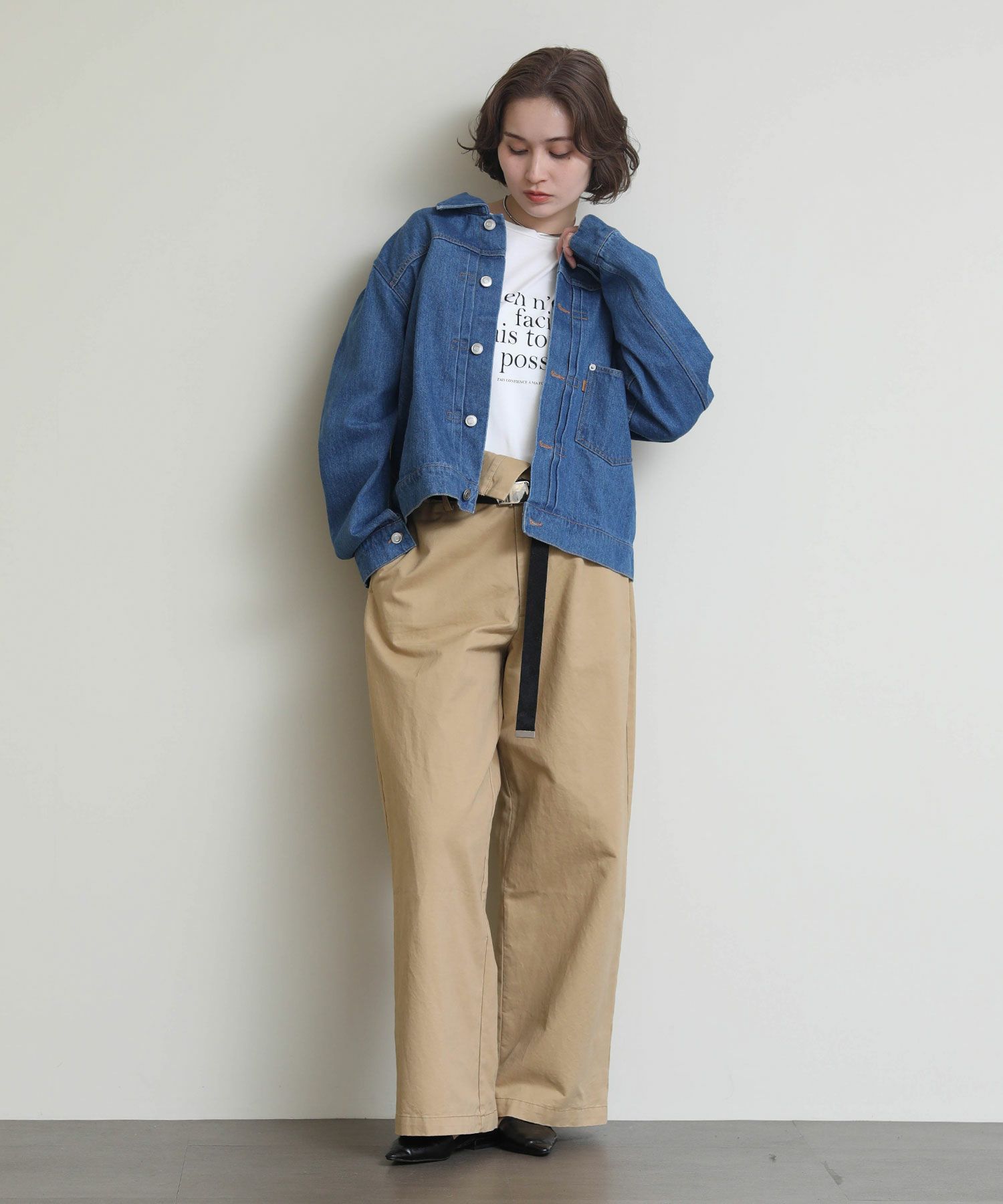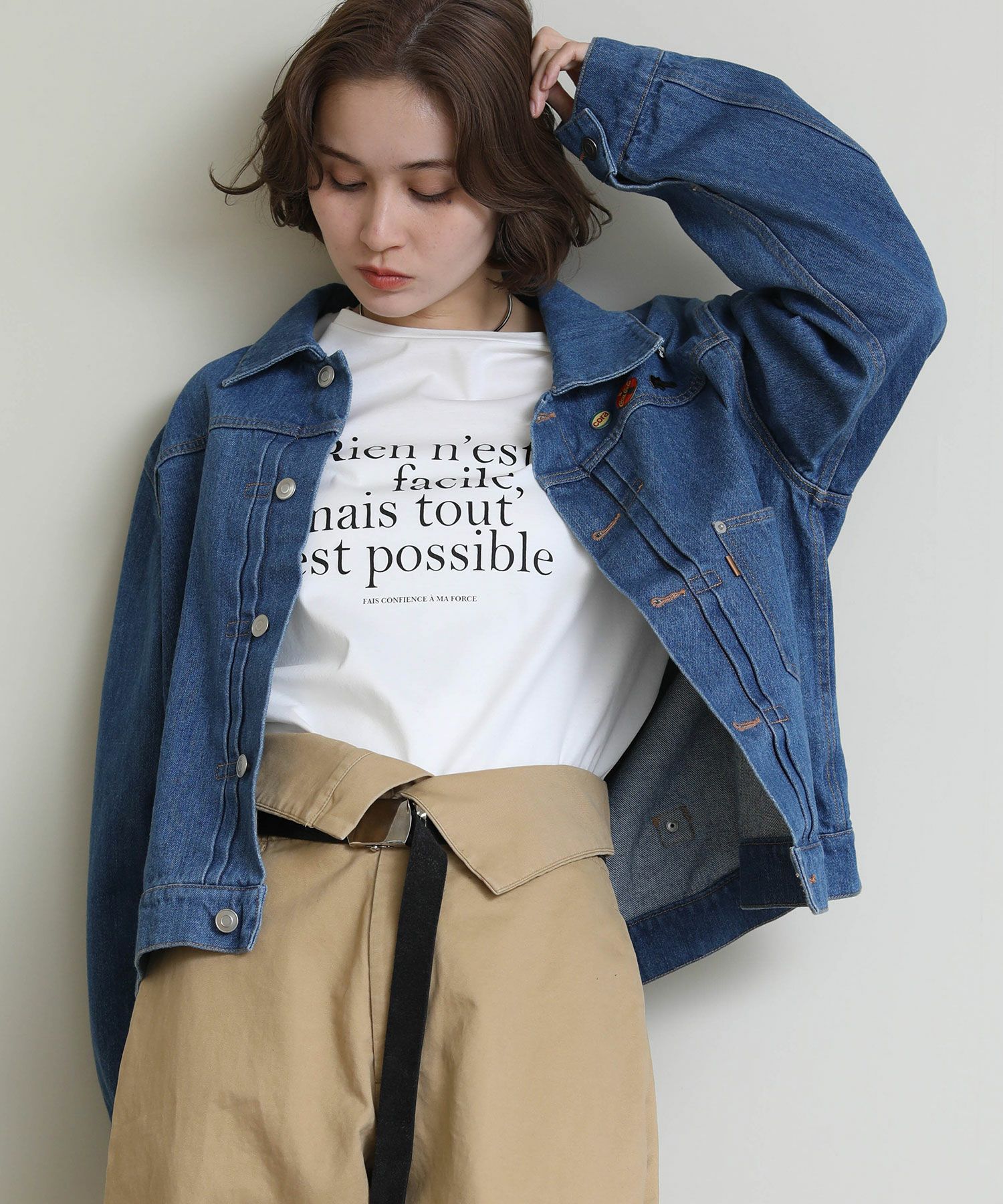 オーバーサイズになりすぎない程よいサイズ感に加え、ロングシーズン使っていただけるよう少し薄いデニム生地で仕上げております。