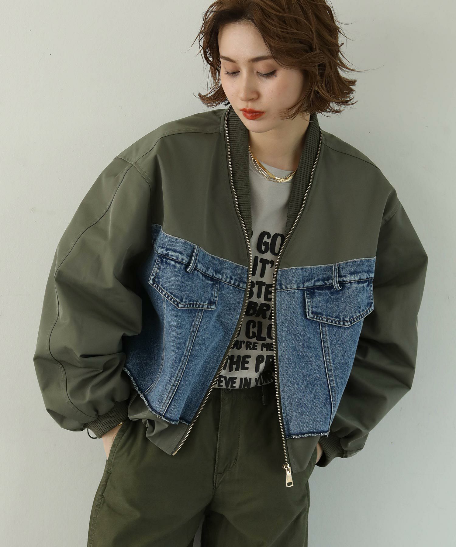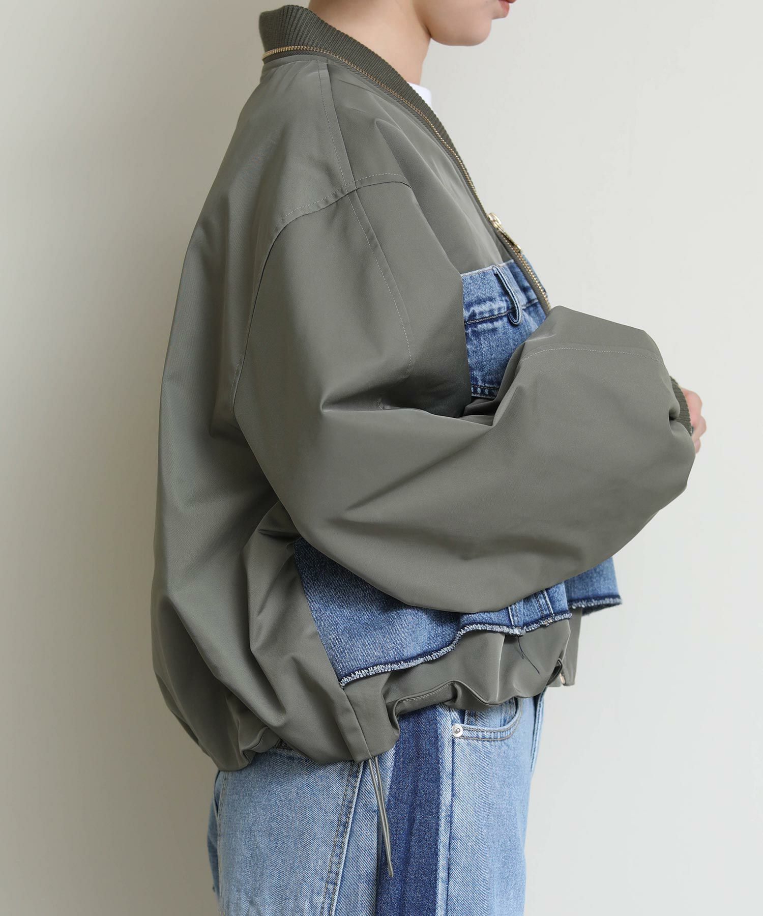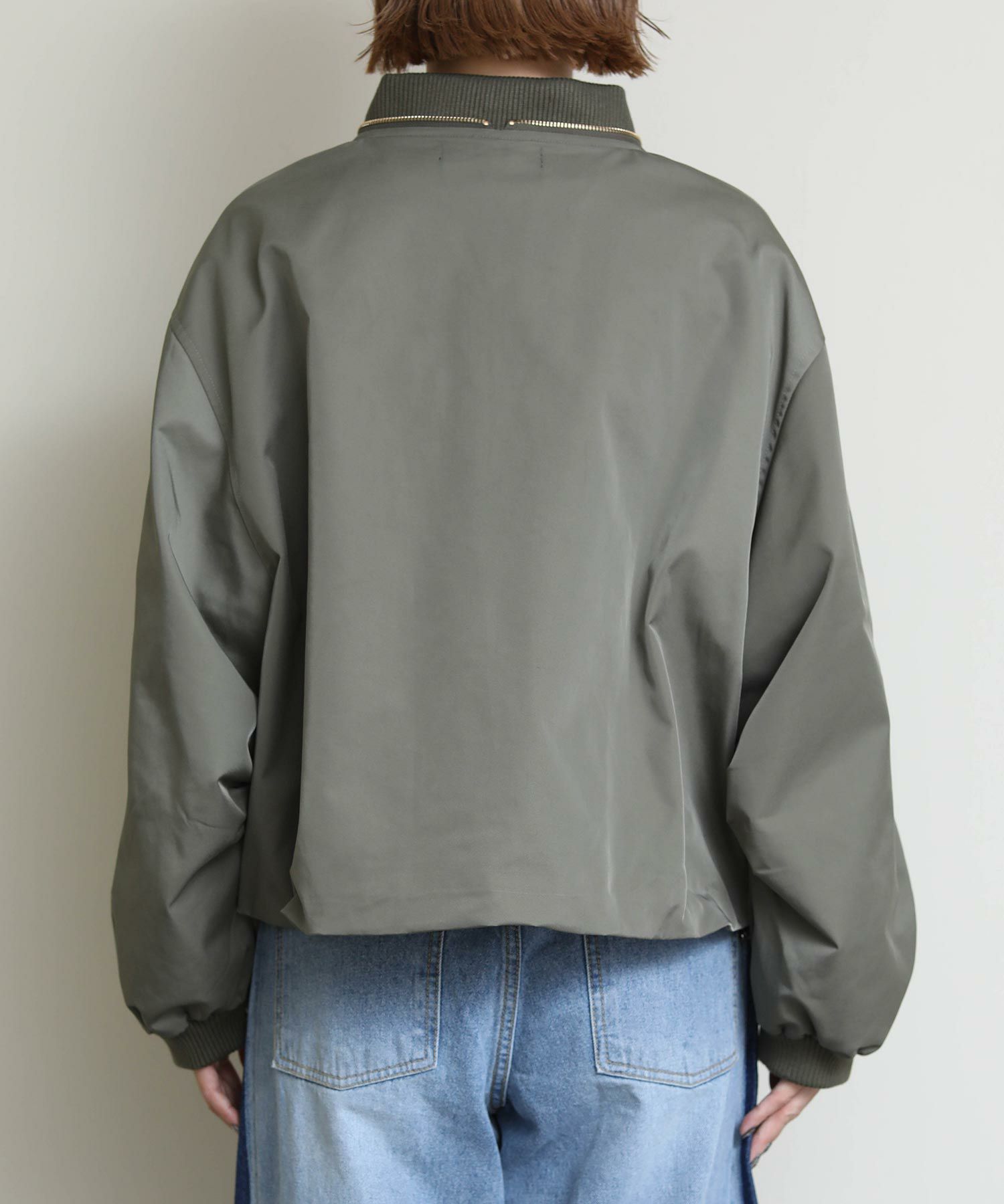 MA-1風のミリタリーテイストのブルゾンで、袖がバルーン使用になっているのでより女性らしいシルエットになっています。