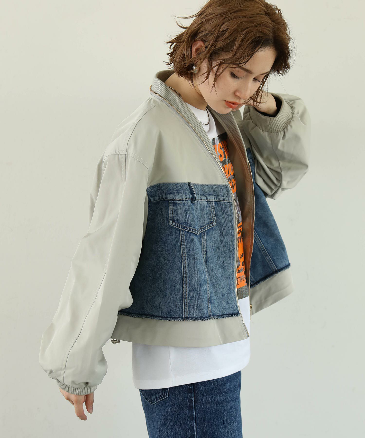Re Fiinaで大好評のデニムMIXシリーズからブルゾンを一足先にピックアップ。