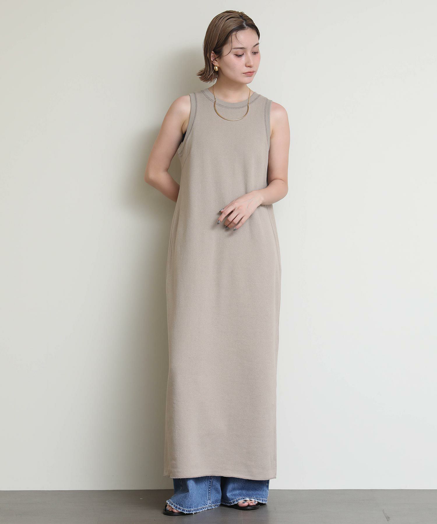 そのままサラッと着るのはもちろん、シャツやカーディガンなどのインナーとして合わせたり、幅広く着まわせるアイテムです。