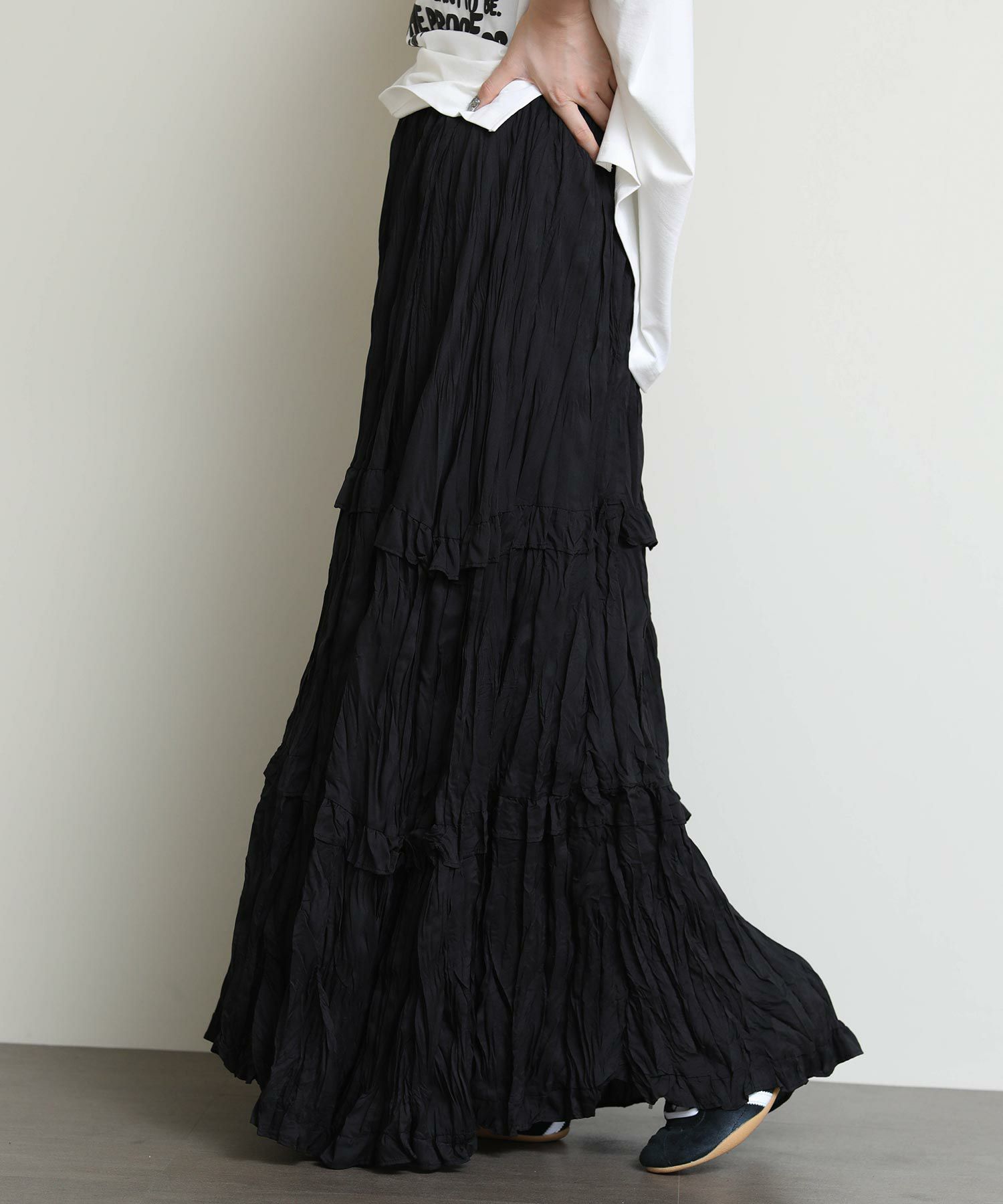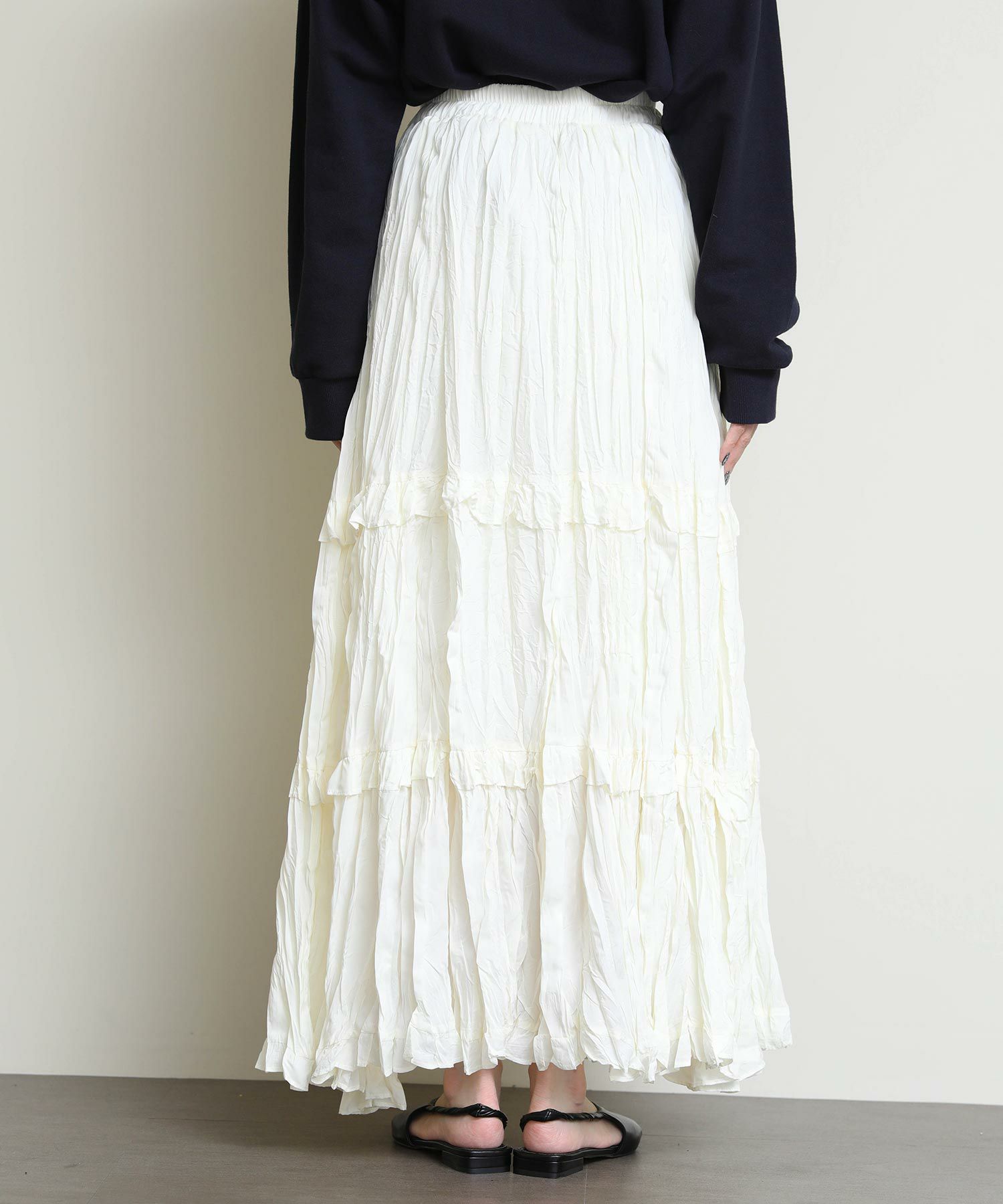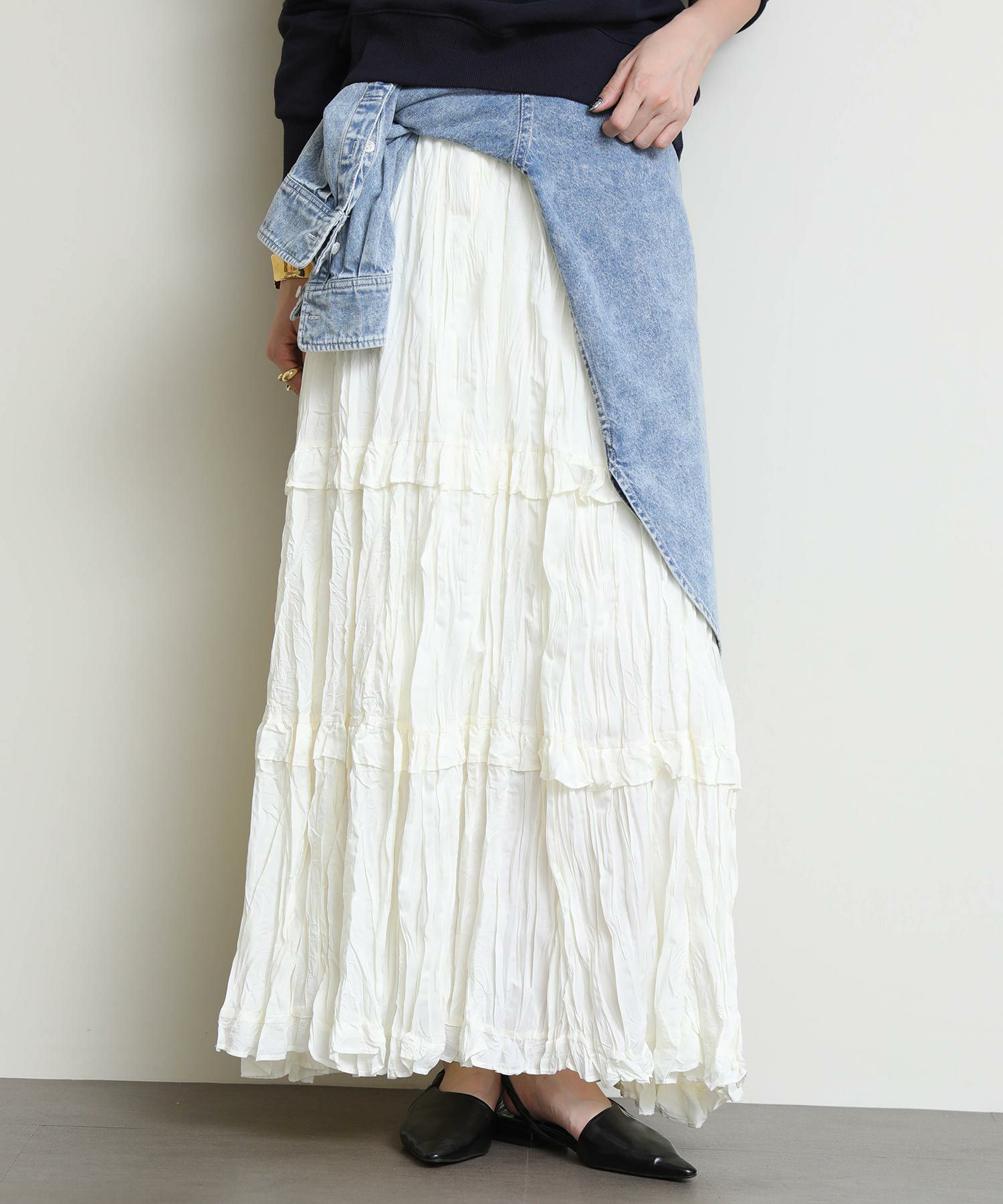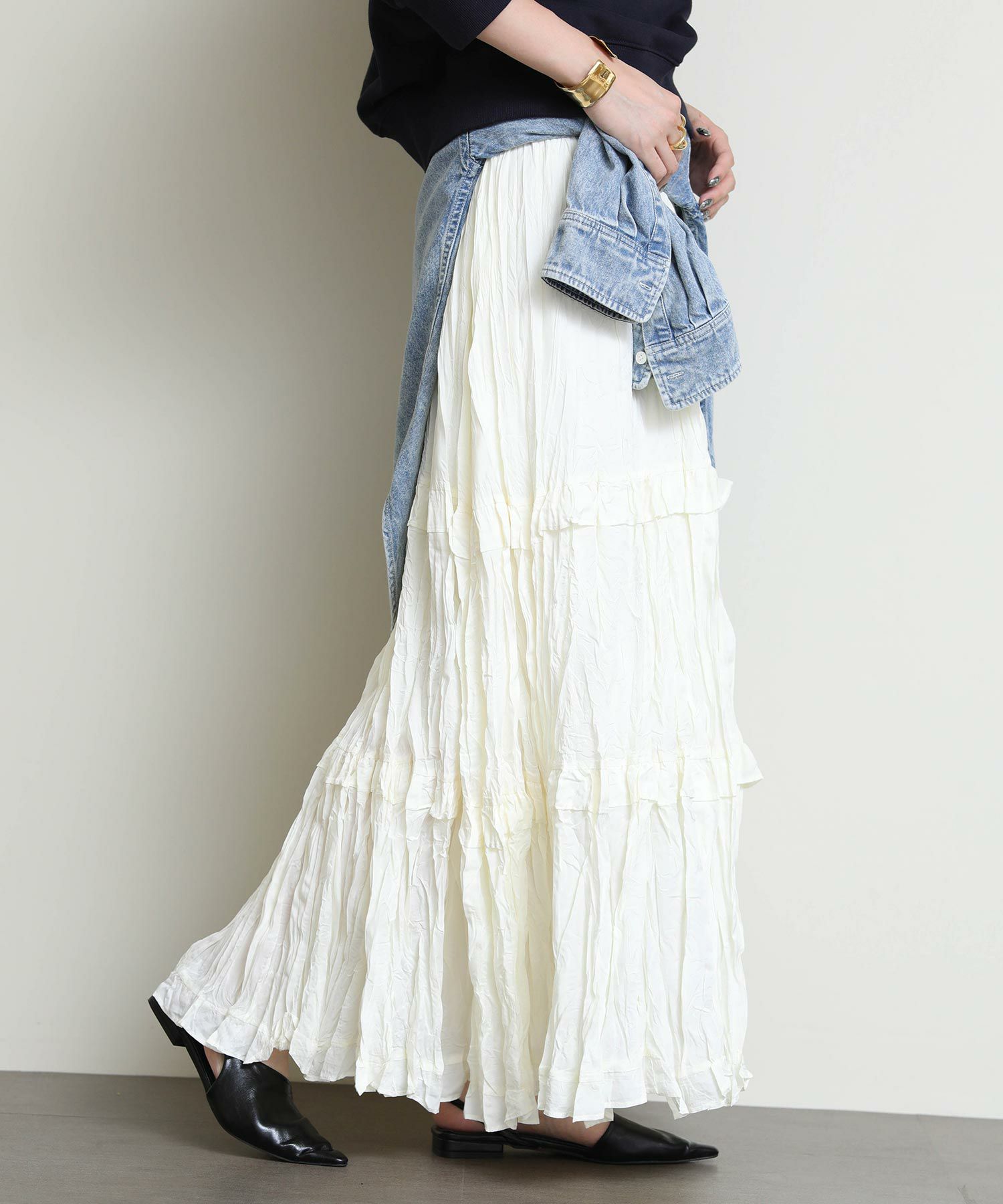 ふわりと軽やかに広がるシルエットが、スタイリングに華やかな印象を与えてくれます。