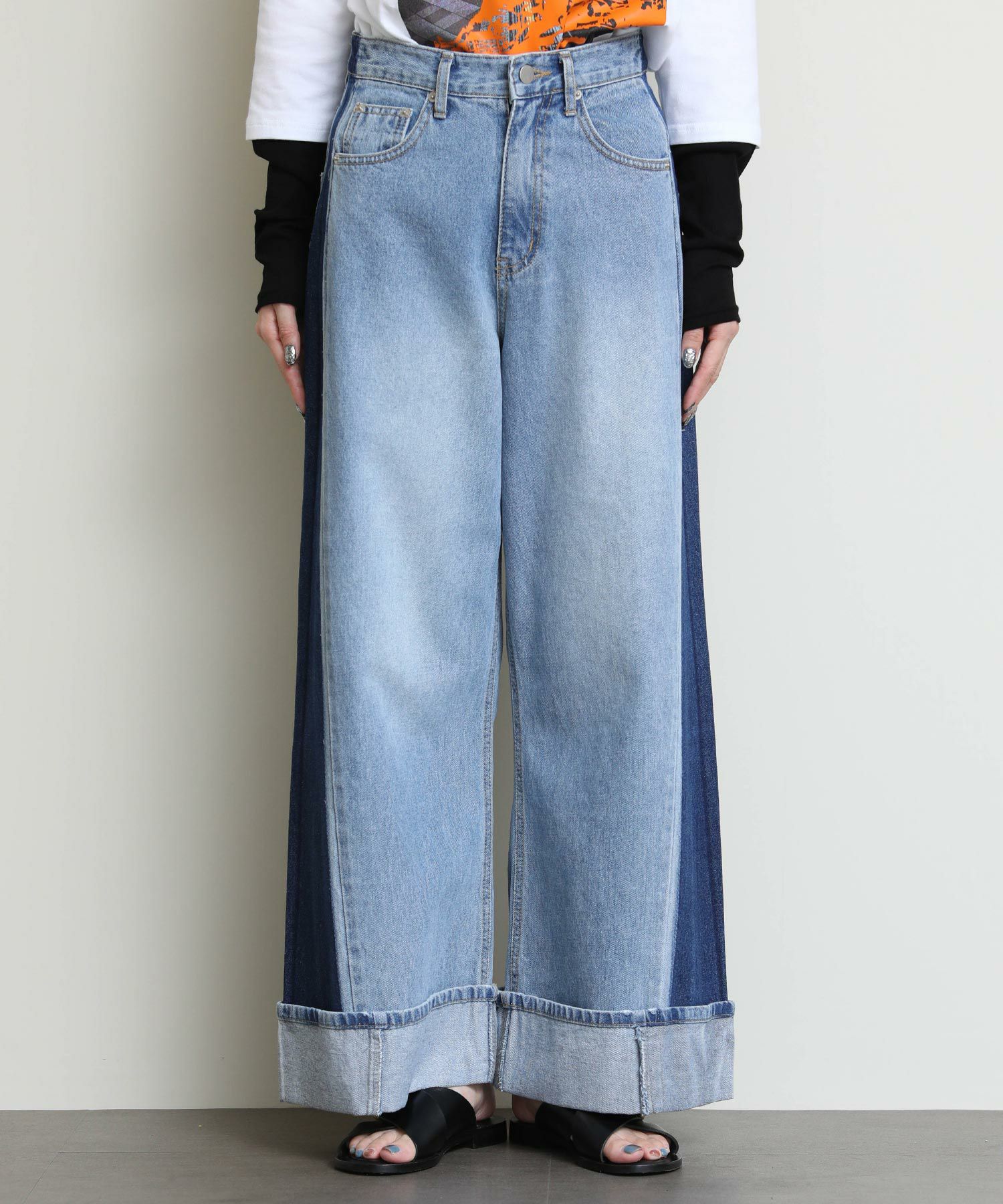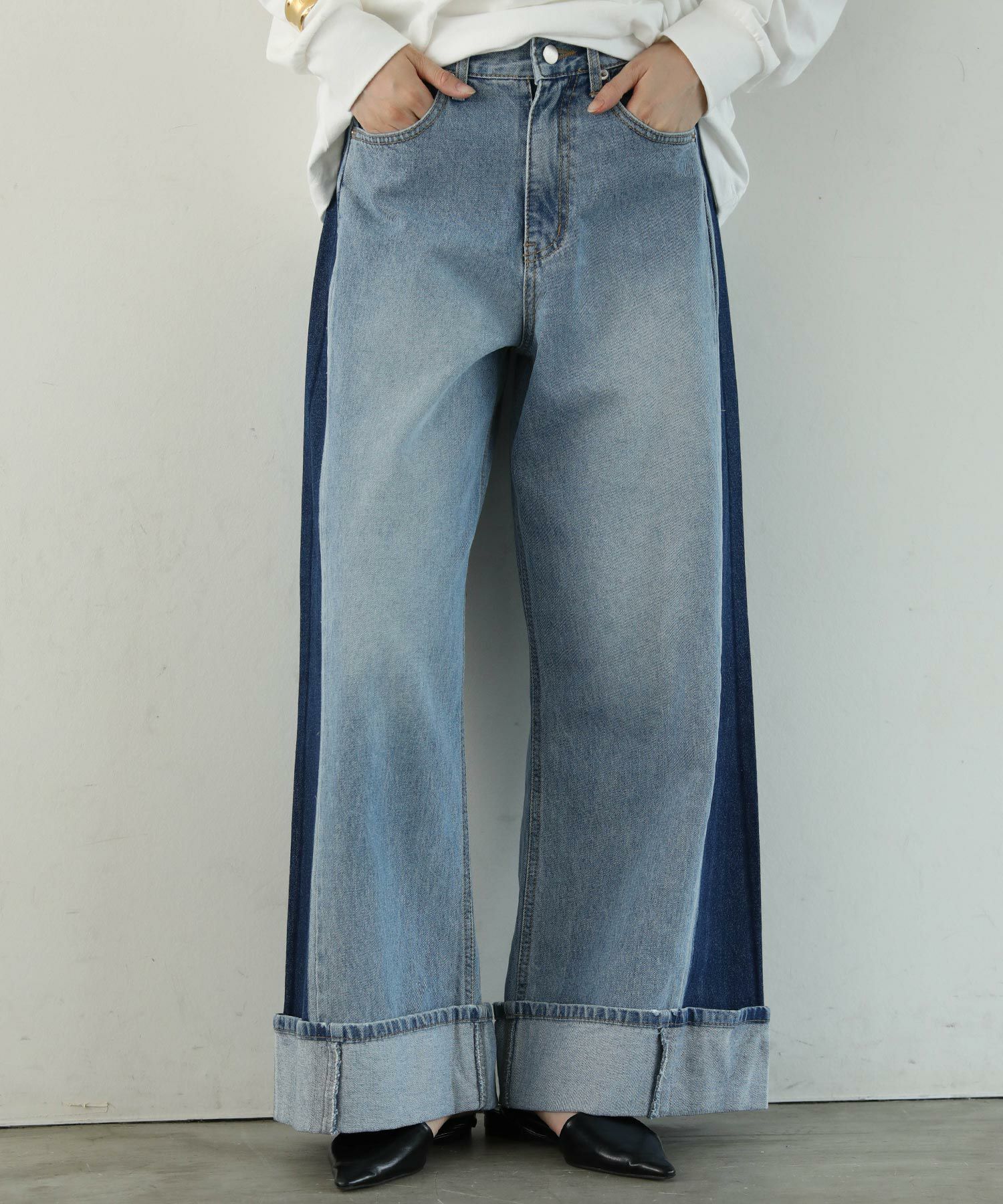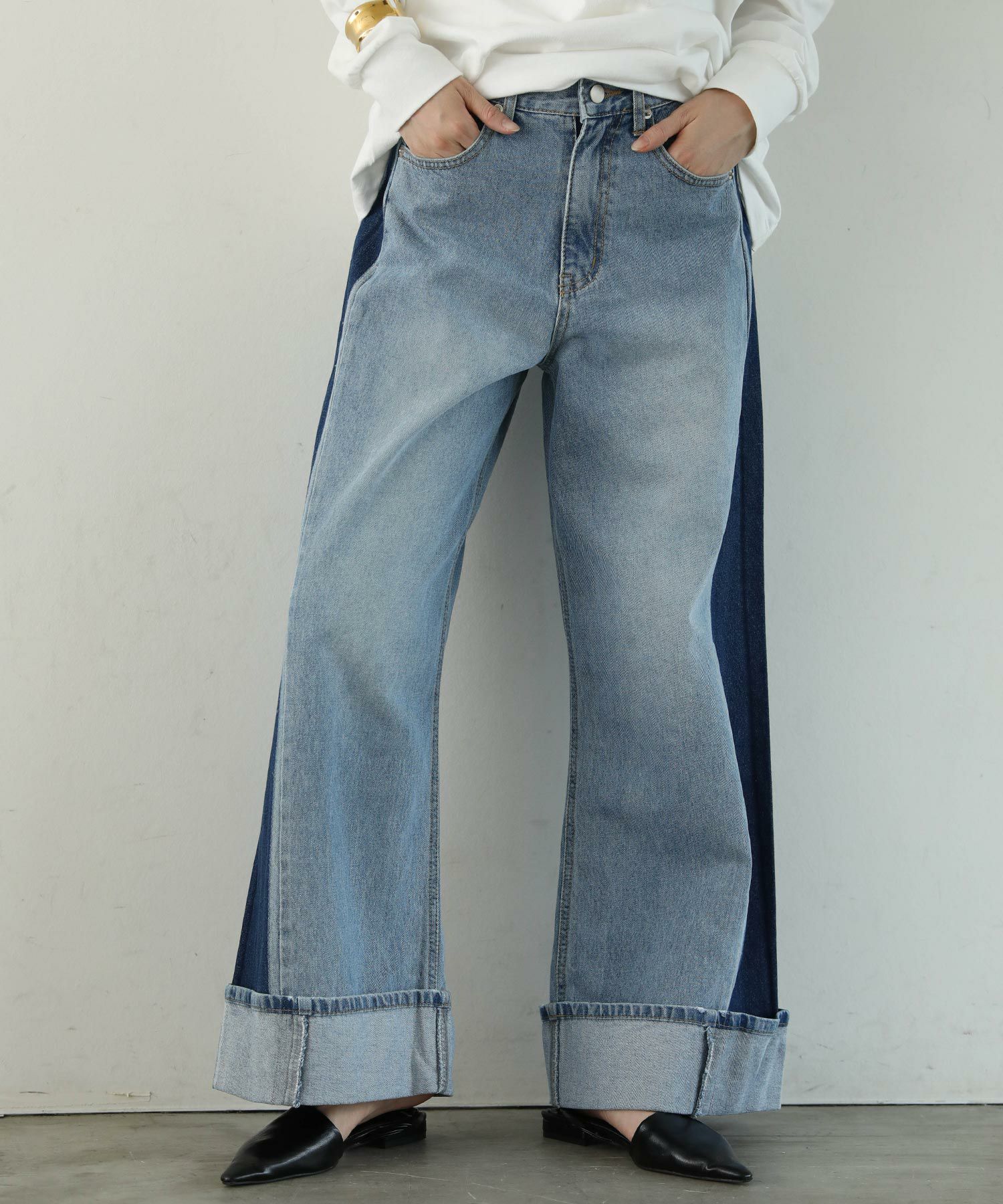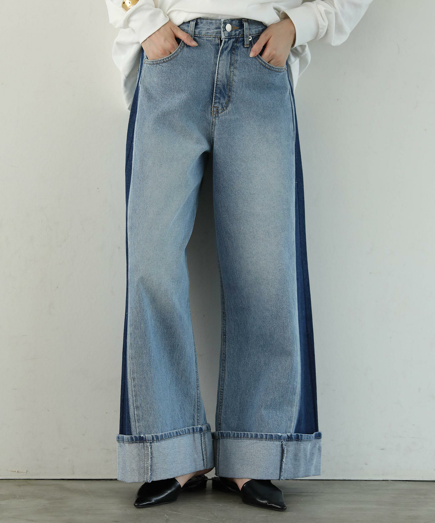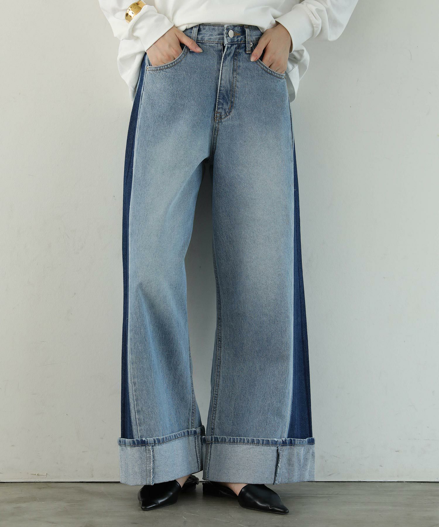 裾は大きくロールアップしたデザイン。トレンドのデニムスタイルにこだわりを詰め込んだ一着です。