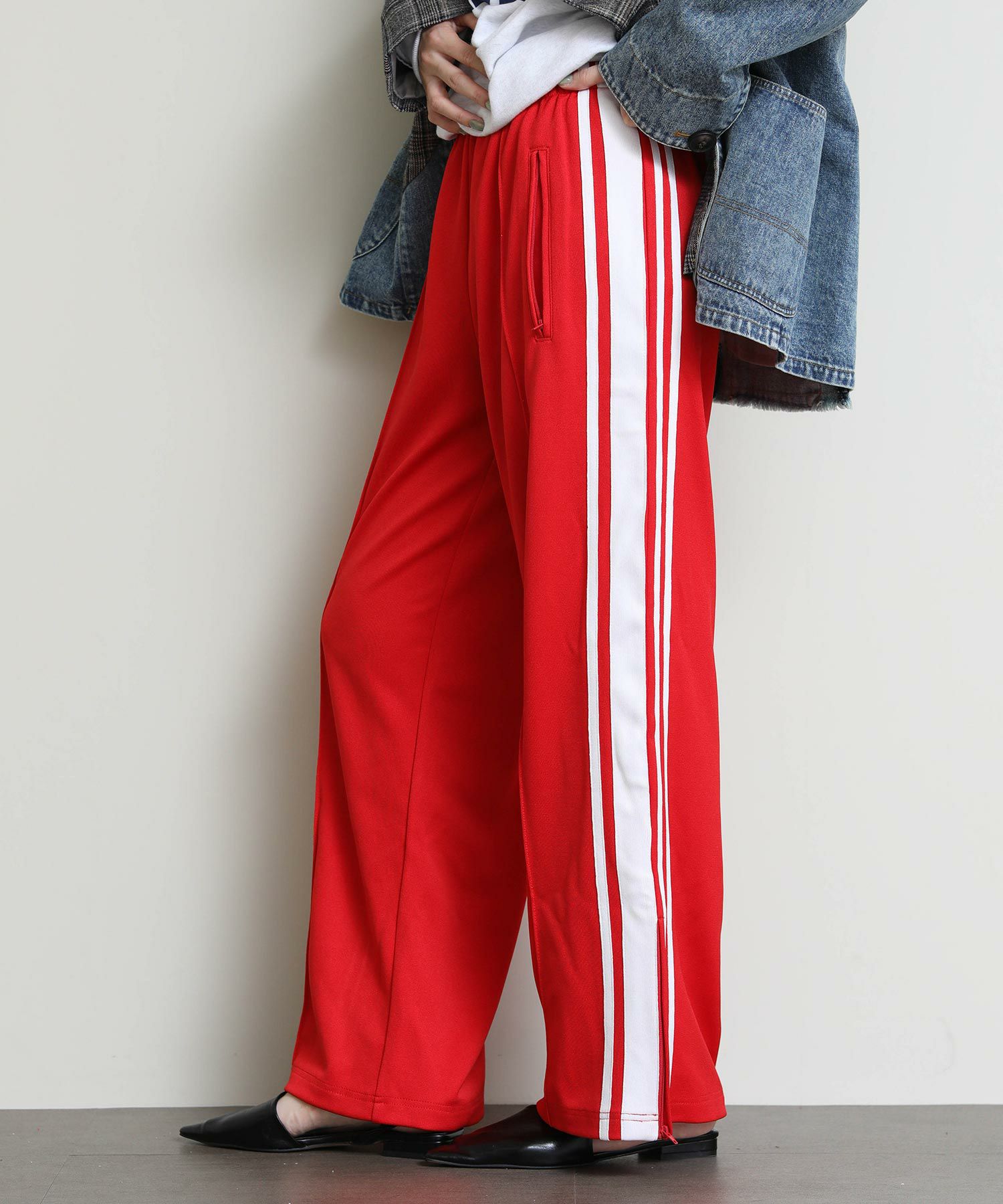 90年代のトラックパンツをインスピレーション源にデザインしたルーズパンツ。