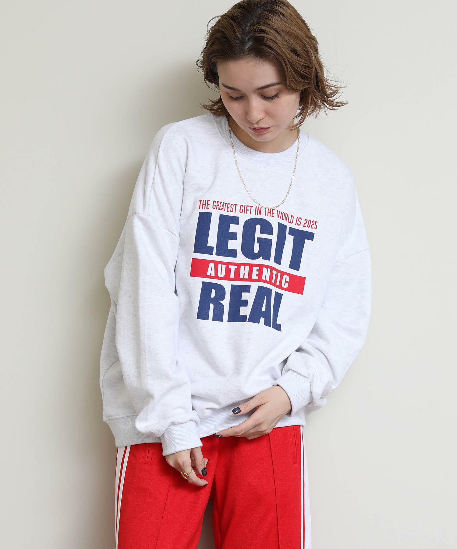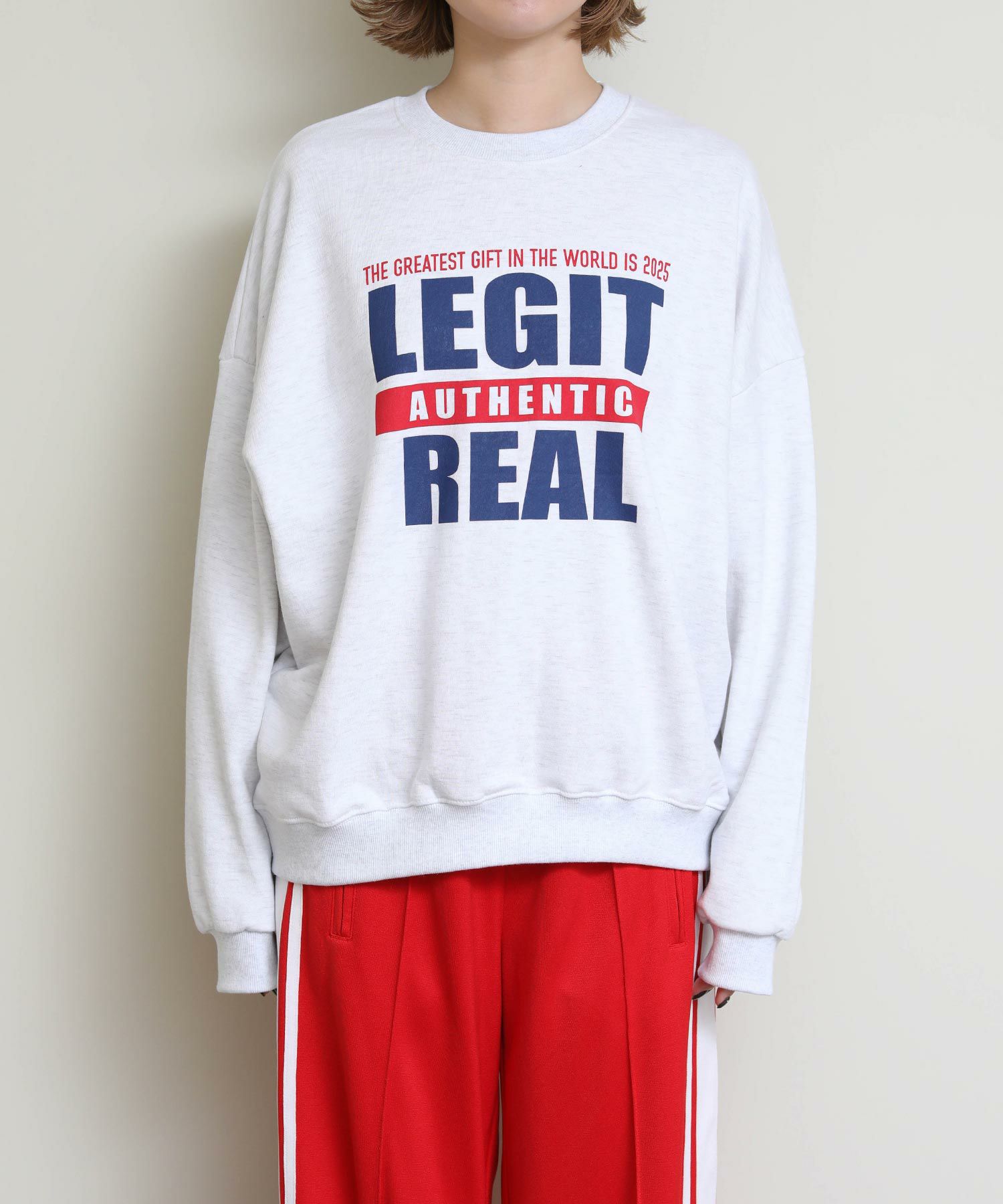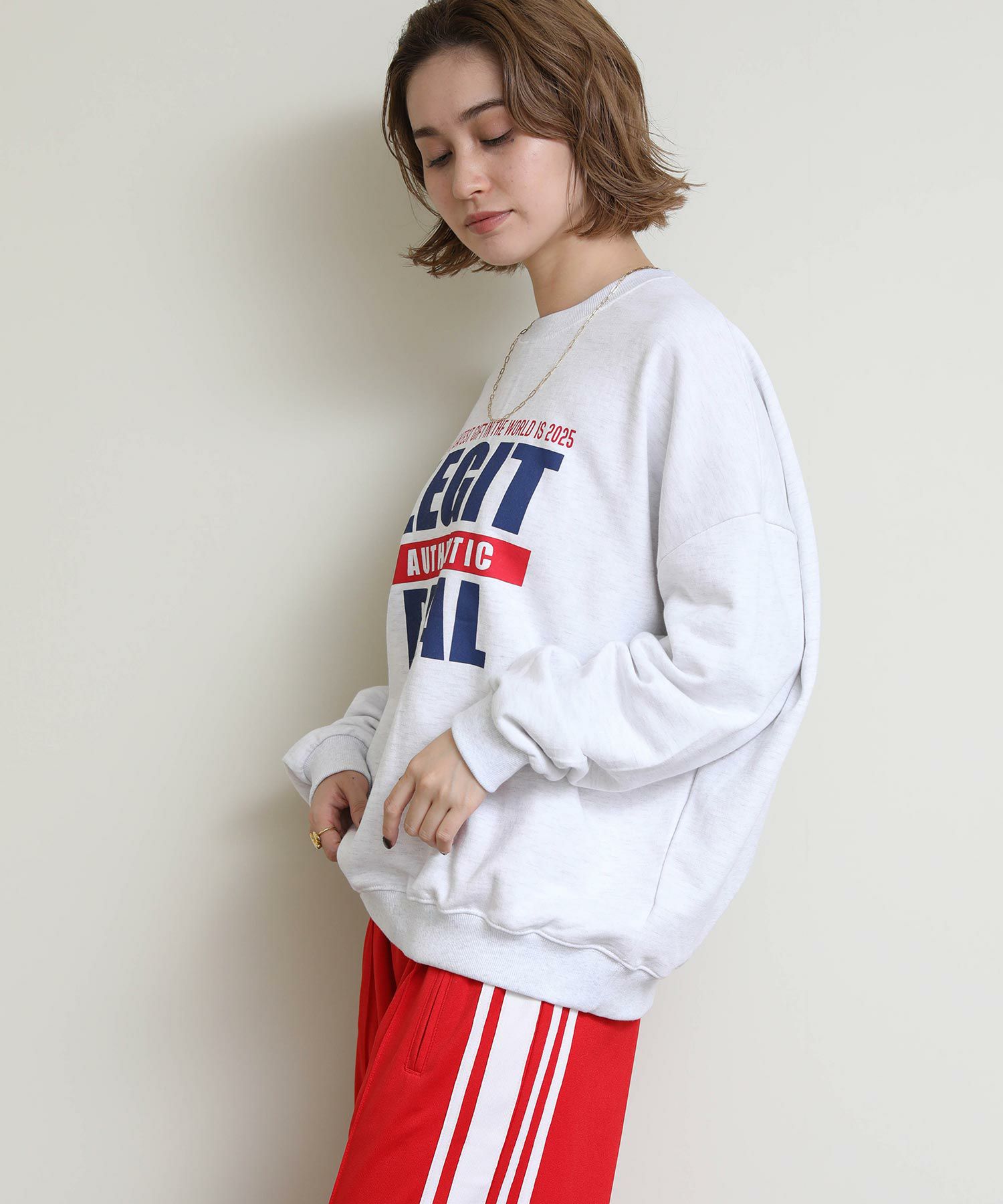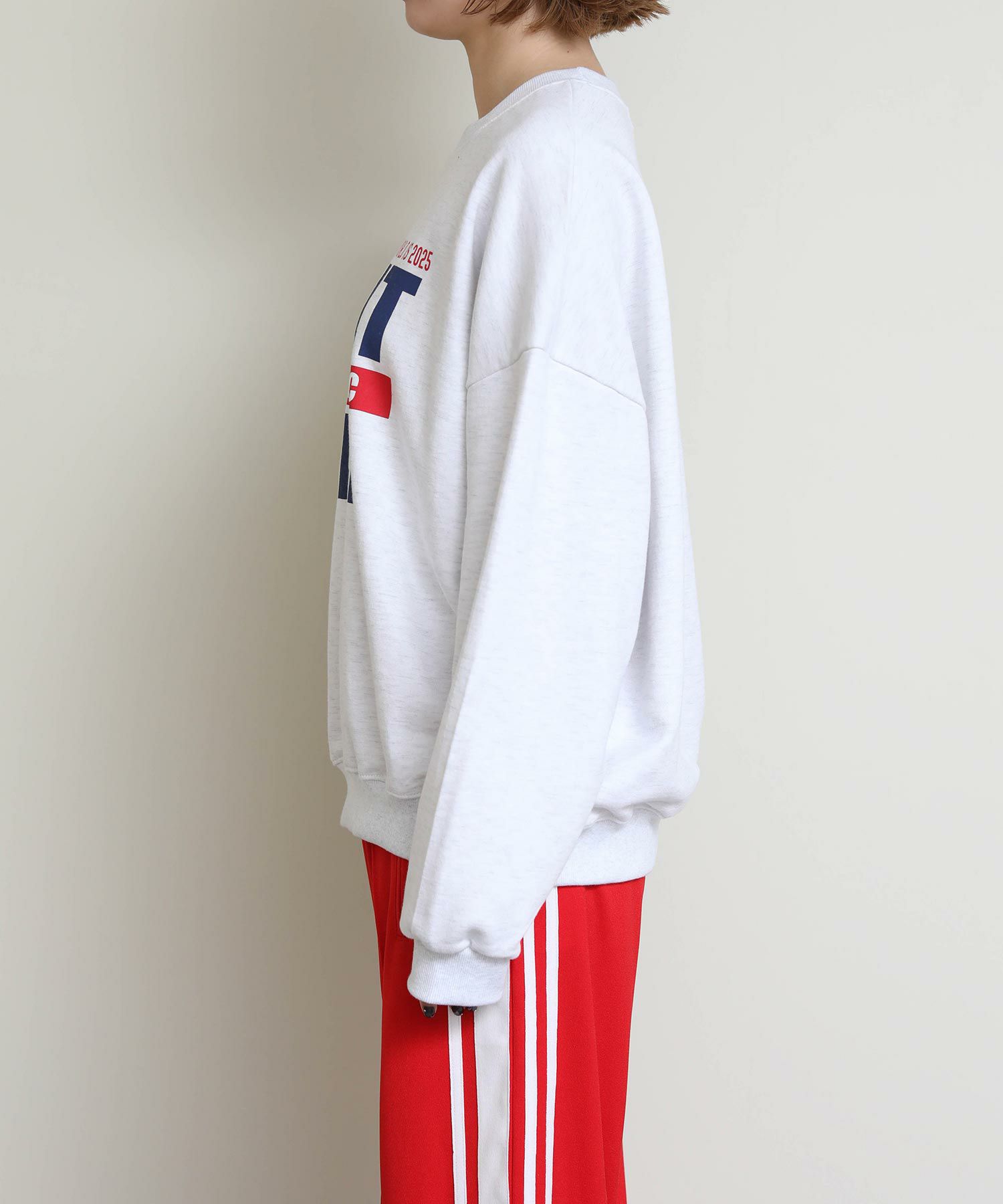 存在感のあるロゴプリントを施したオーバーサイズのスウェット。
