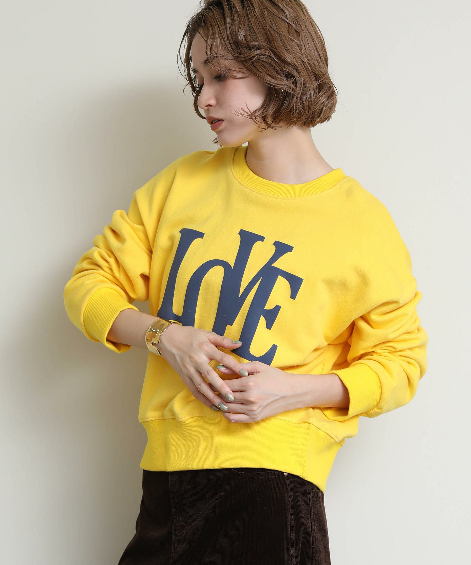 シンプルながらも存在感のある「LOVE」のプリントが特徴で、明るいイエローとシックなネイビーの2色展開で、どちらもコーディネートのアクセントにぴったりな一着です。