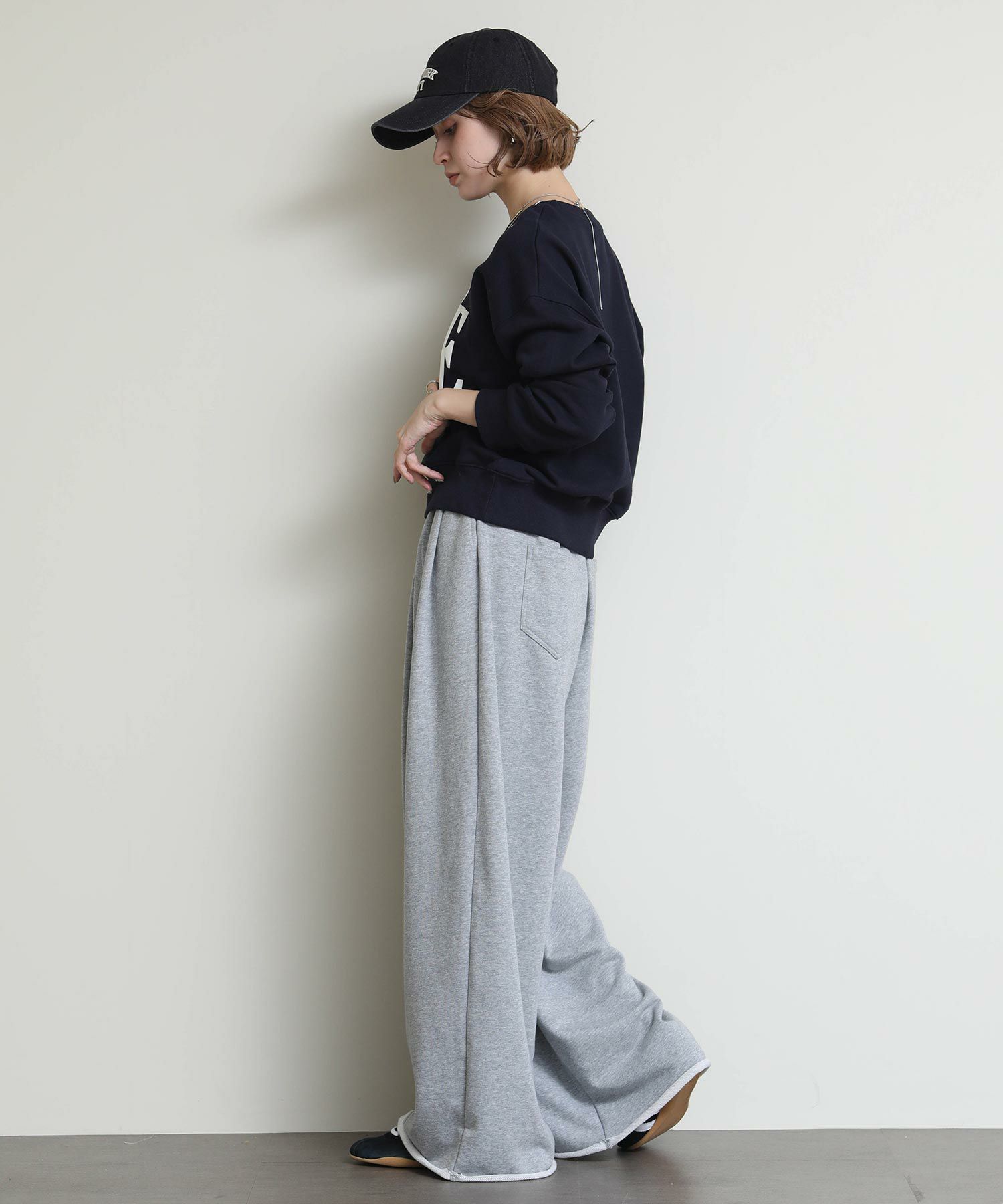 程よいクロップ丈と立体的なプリントがポイントの裏毛スウェット。短すぎない程よい丈感がトレンドライクば印象を与えてくれます。