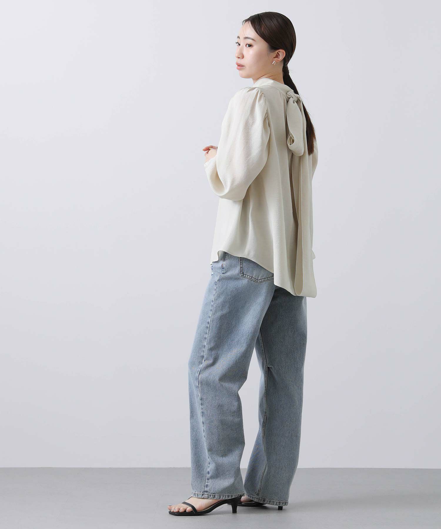 春らしいシアーの風合いが軽やかなリボンブラウス。