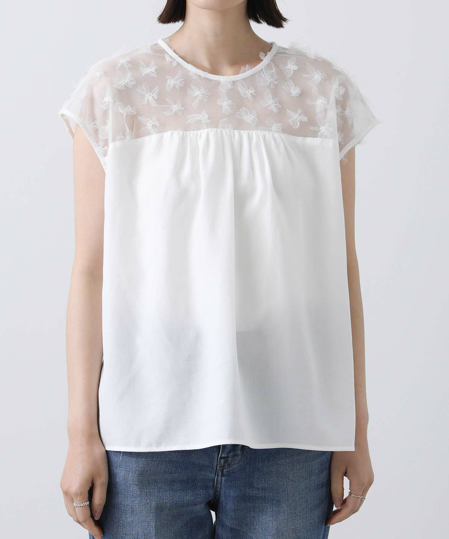 立体的な3D刺繍ヨークがポイントのブラウス。