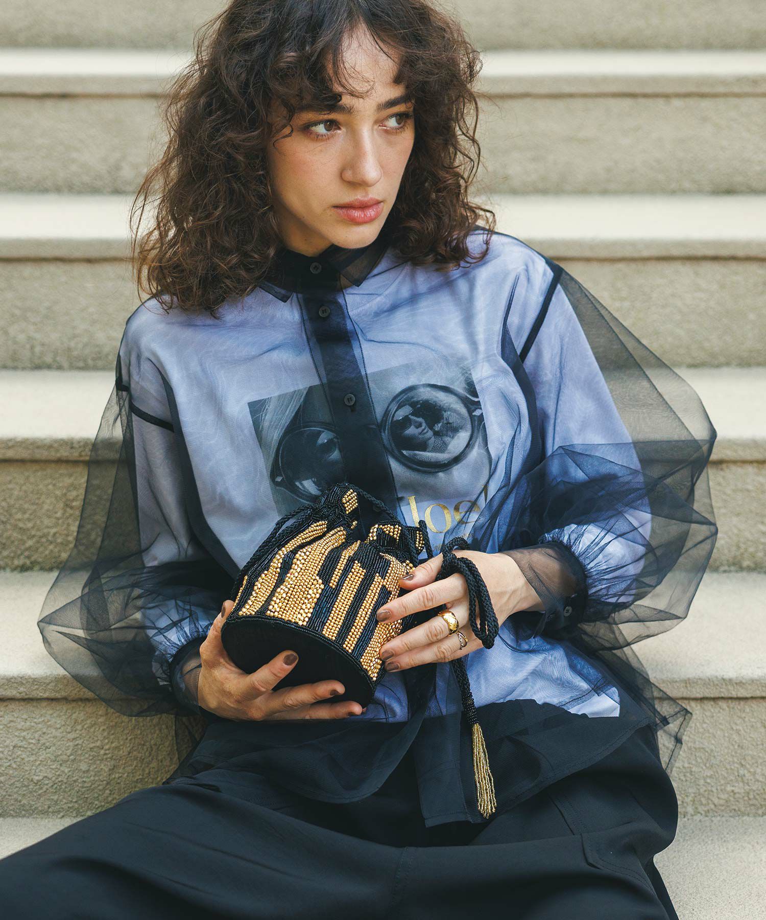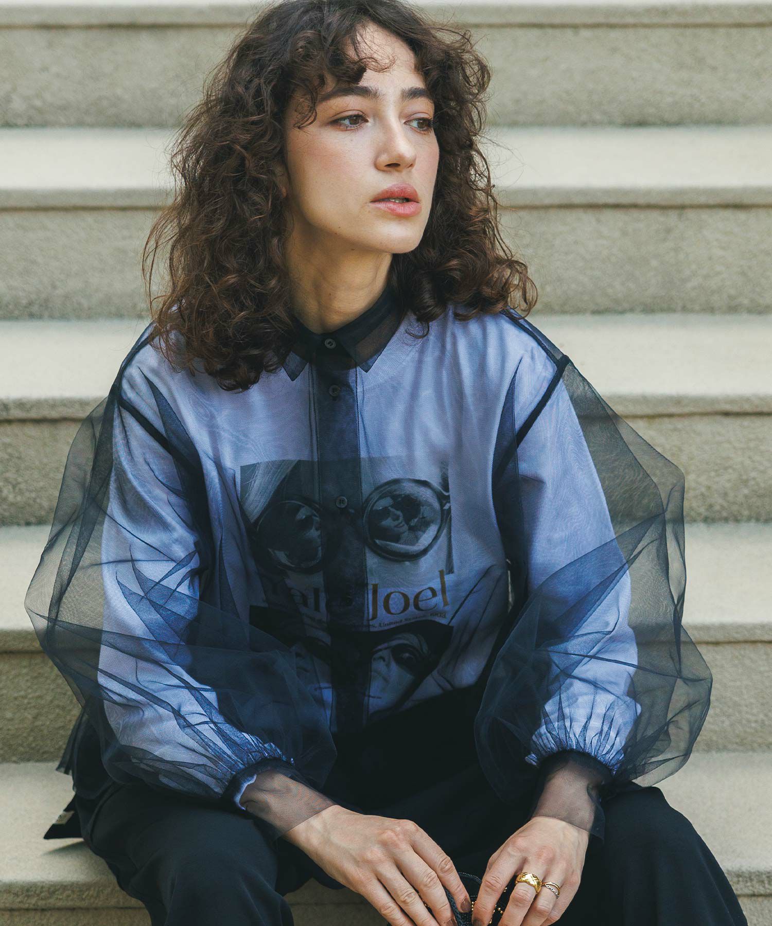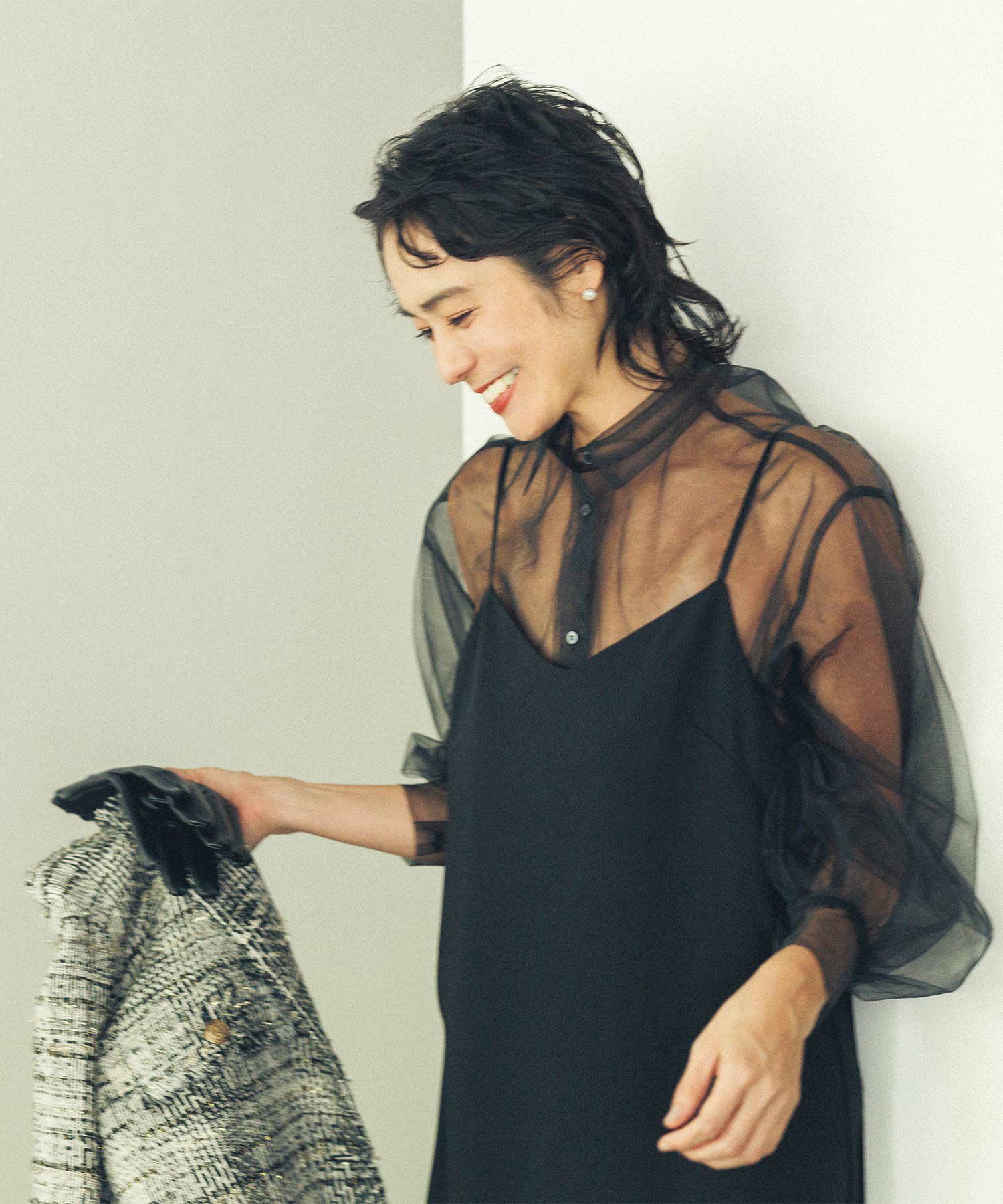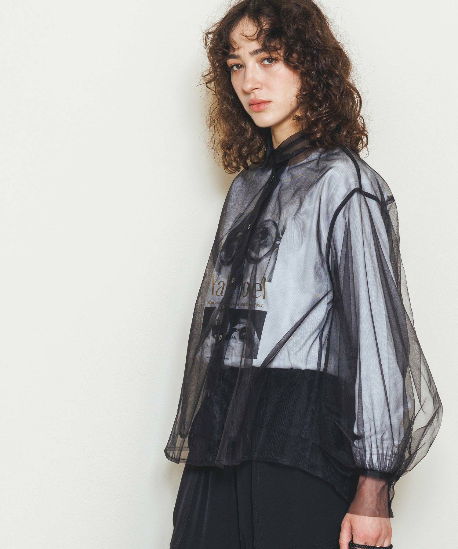 チュールをふんだんに使用したシアーブラウス。