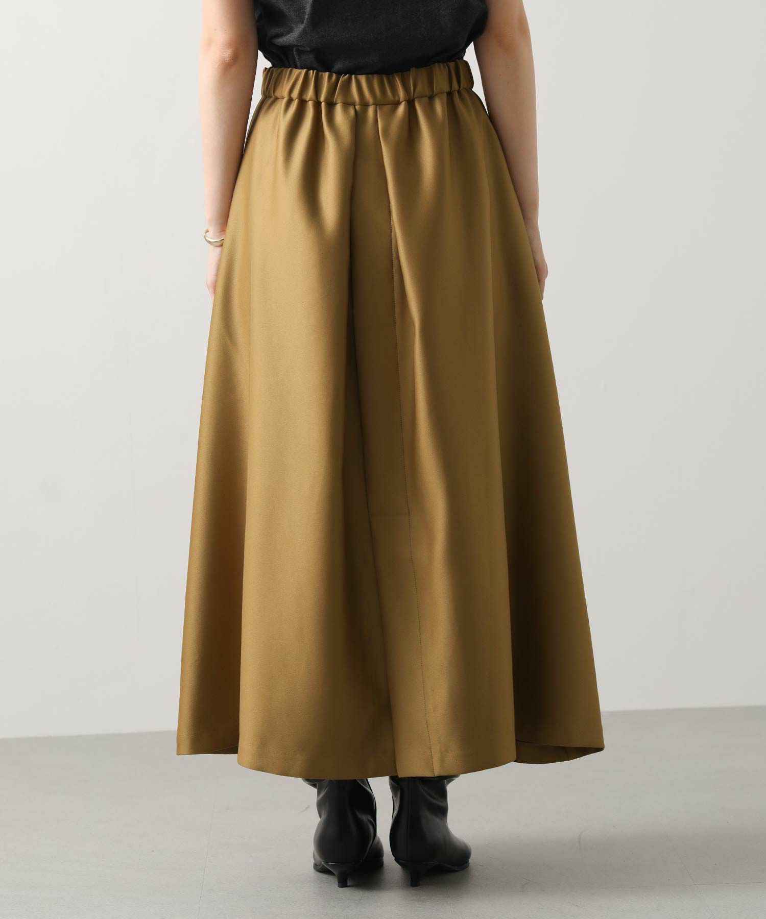 大胆なタックデザインが印象的、後ろ側のフレア分量が多いので、歩いた時の動きが美しいシルエットに。