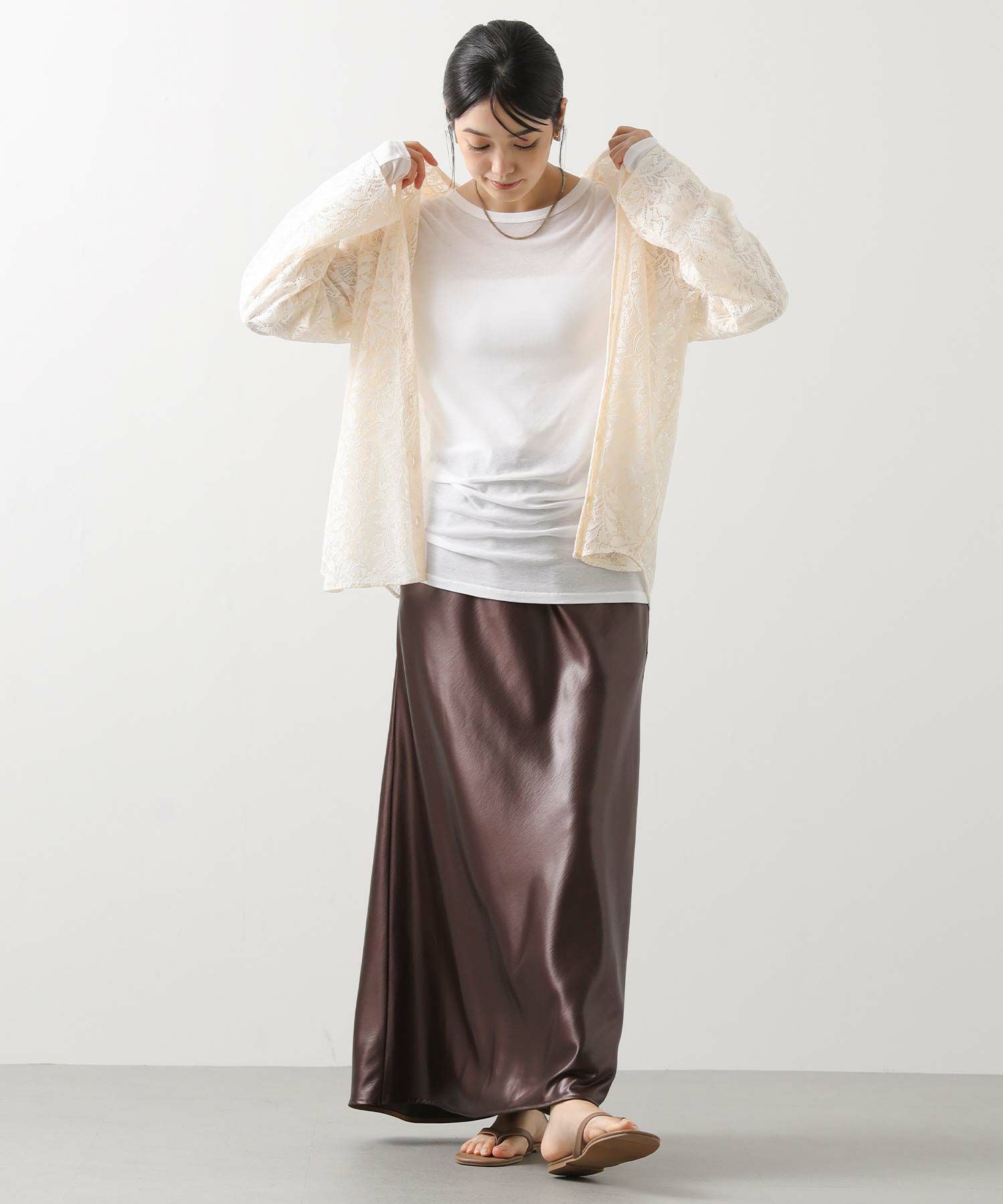 程よい透け感が美しいレースを使用し、軽やかで女性らしい印象に。