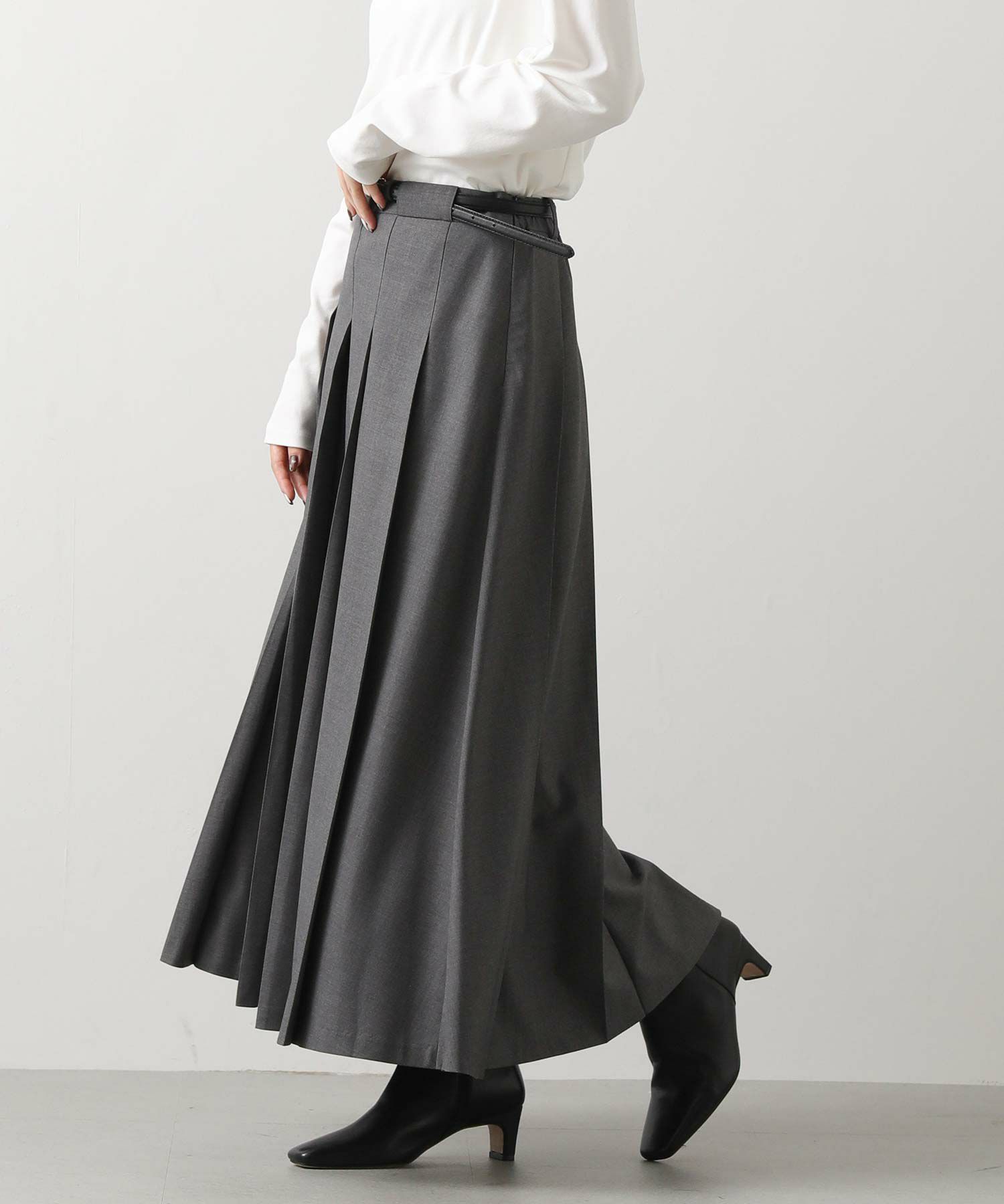 今季トレンドのワイドプリーツがトラッドでクラシカルな印象のスカート。