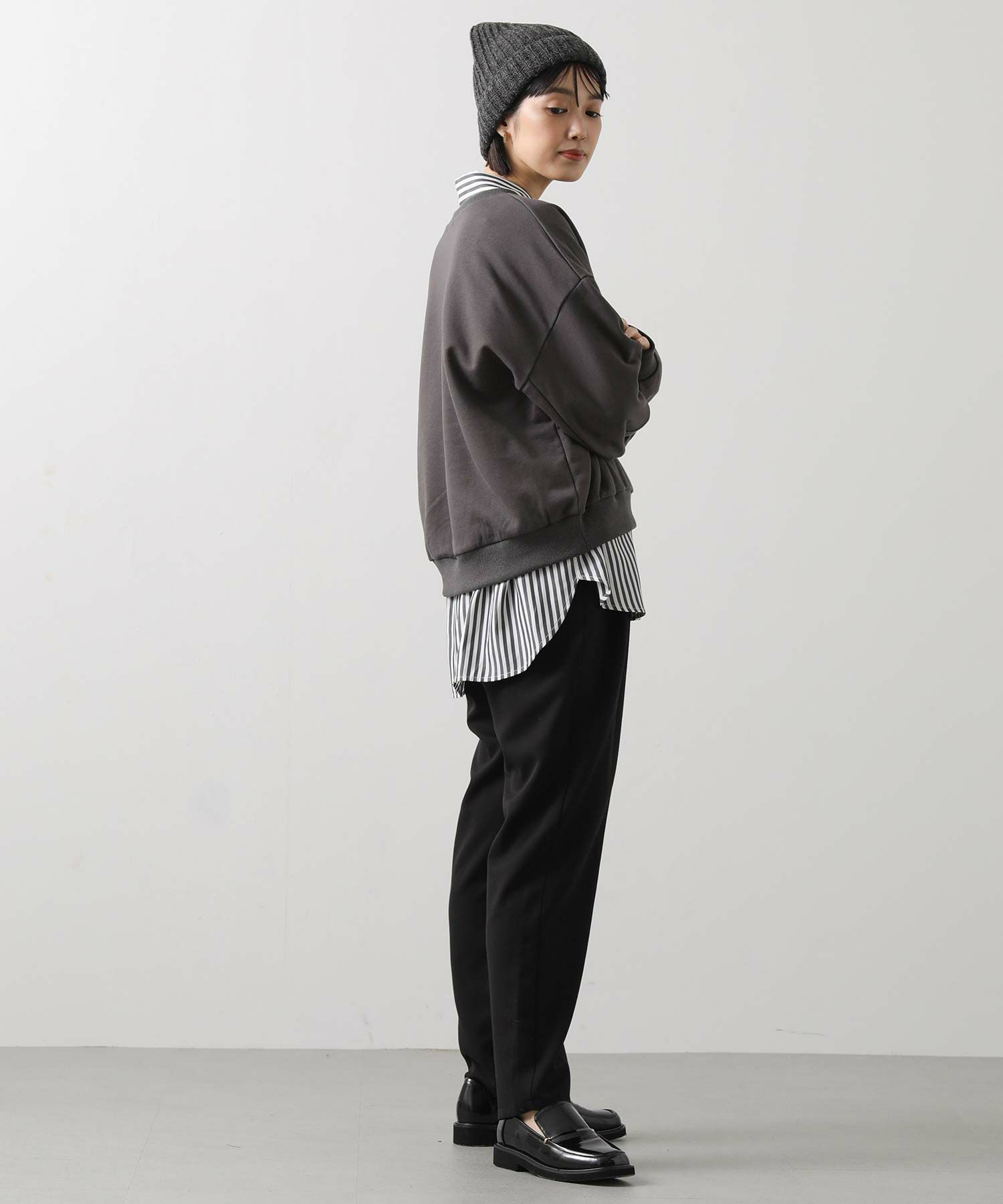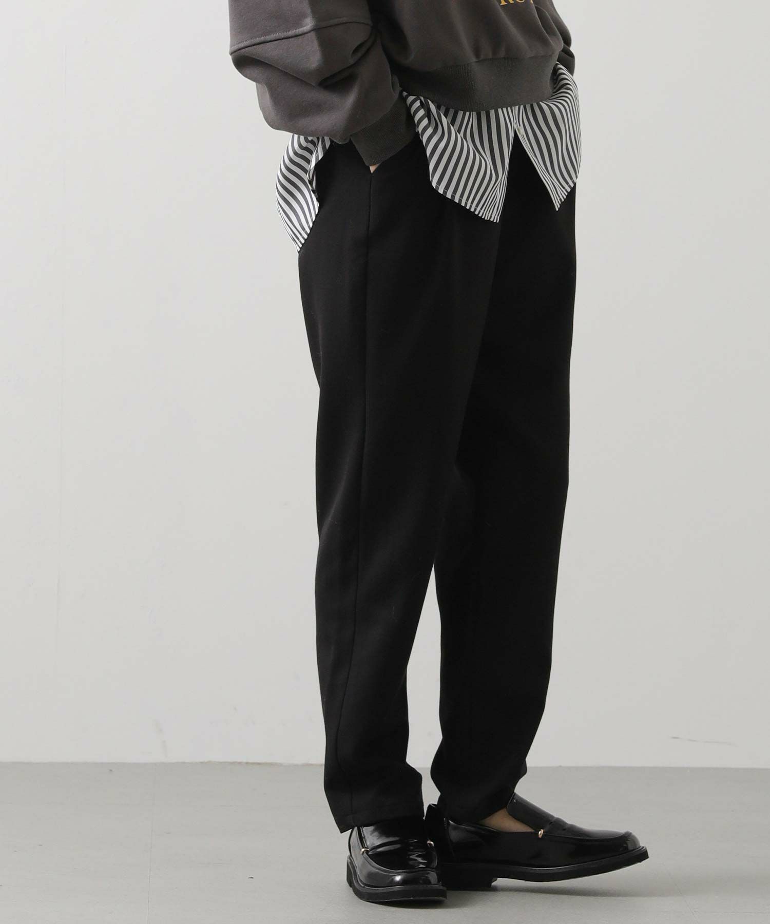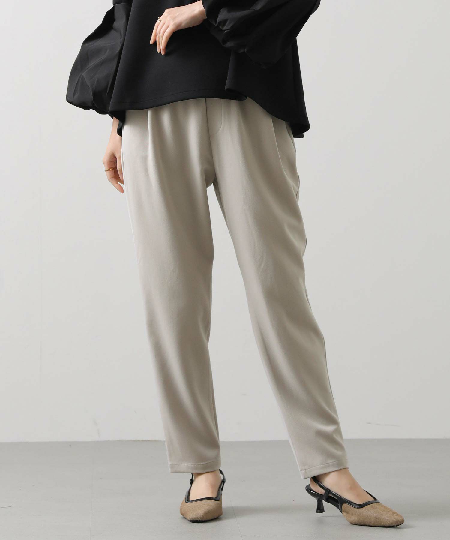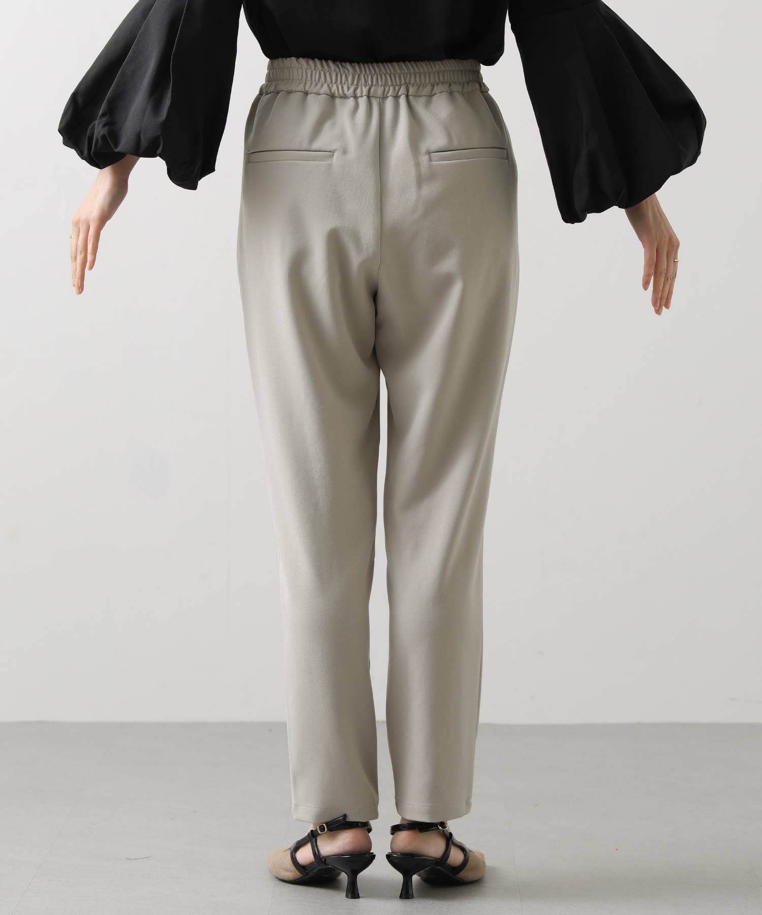 ウエストゴムの楽ちんな穿き心地に、きちんと見えするシルエットがオン・オフ使える万能パンツです。