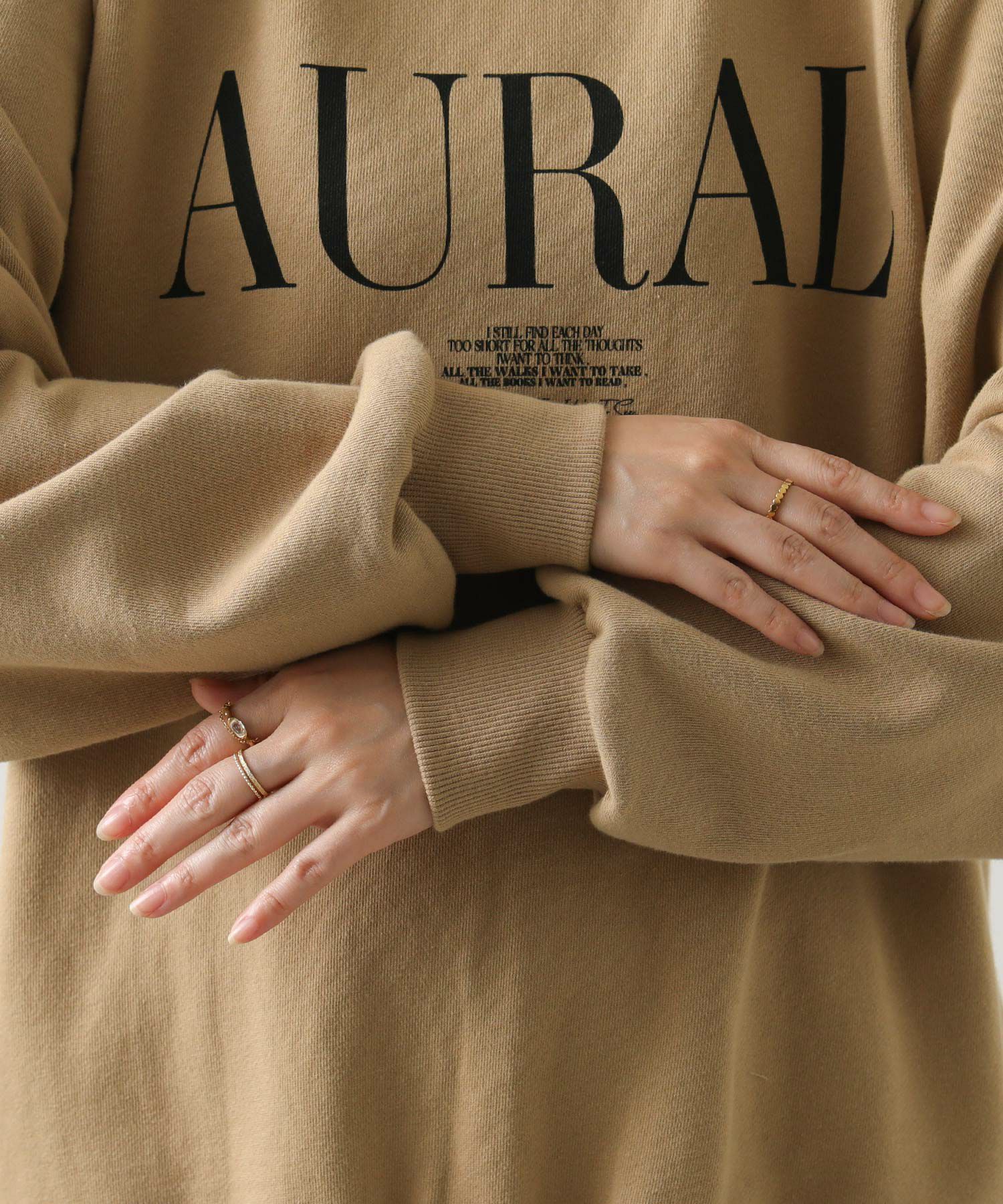 柔らかな裏毛素材を使用。上品で大人っぽいフォントのロゴなので、カジュアルになりすぎず女性らしく決まります。