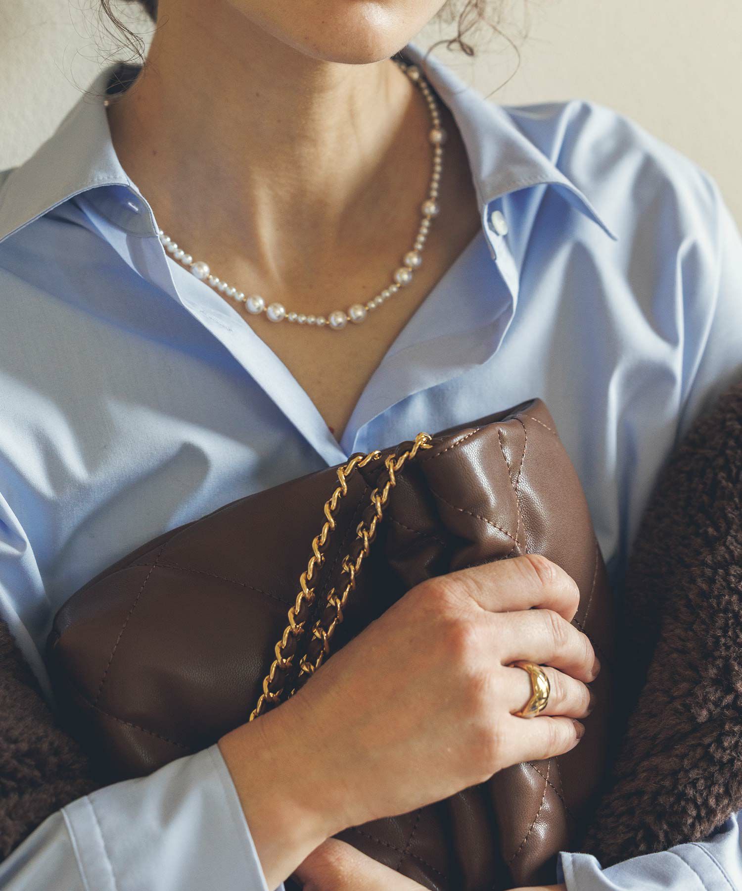 シンプルなTシャツにさらっと付けるだけでこなれた雰囲気を演出してくれます。