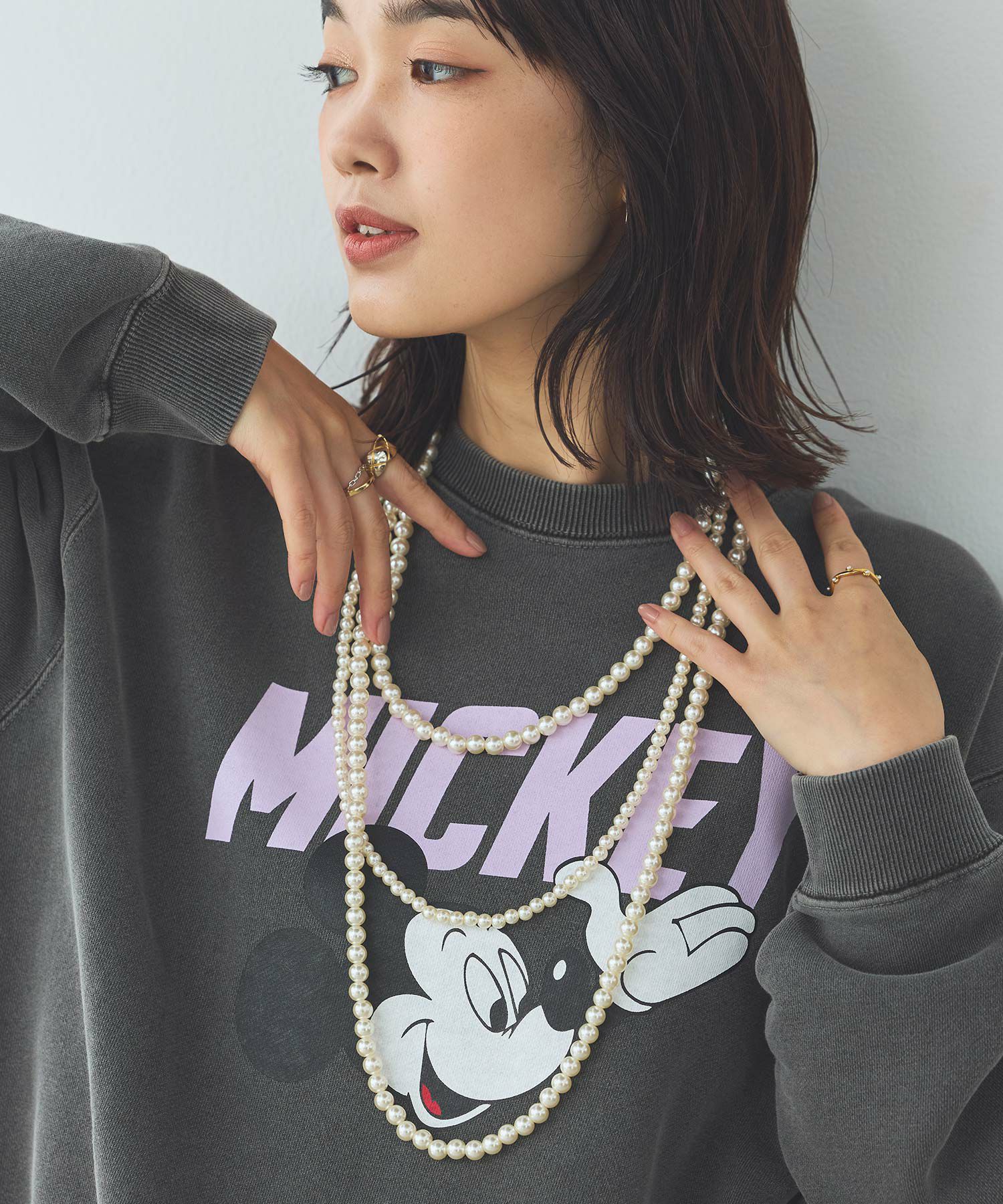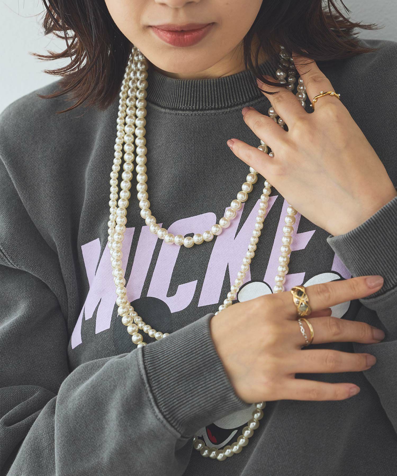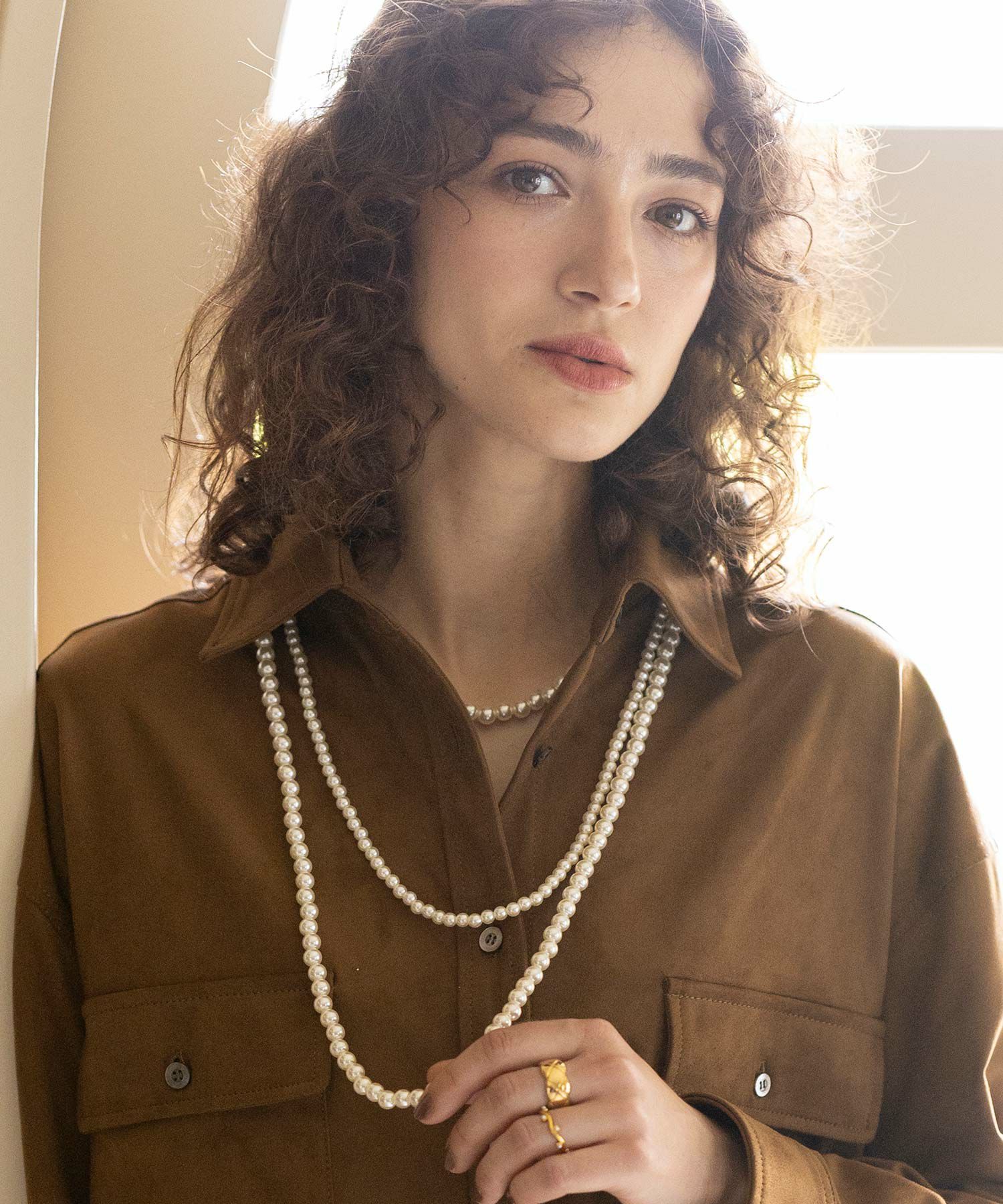 3連パールネックレス。