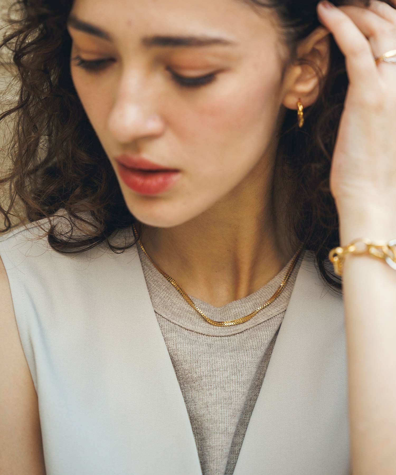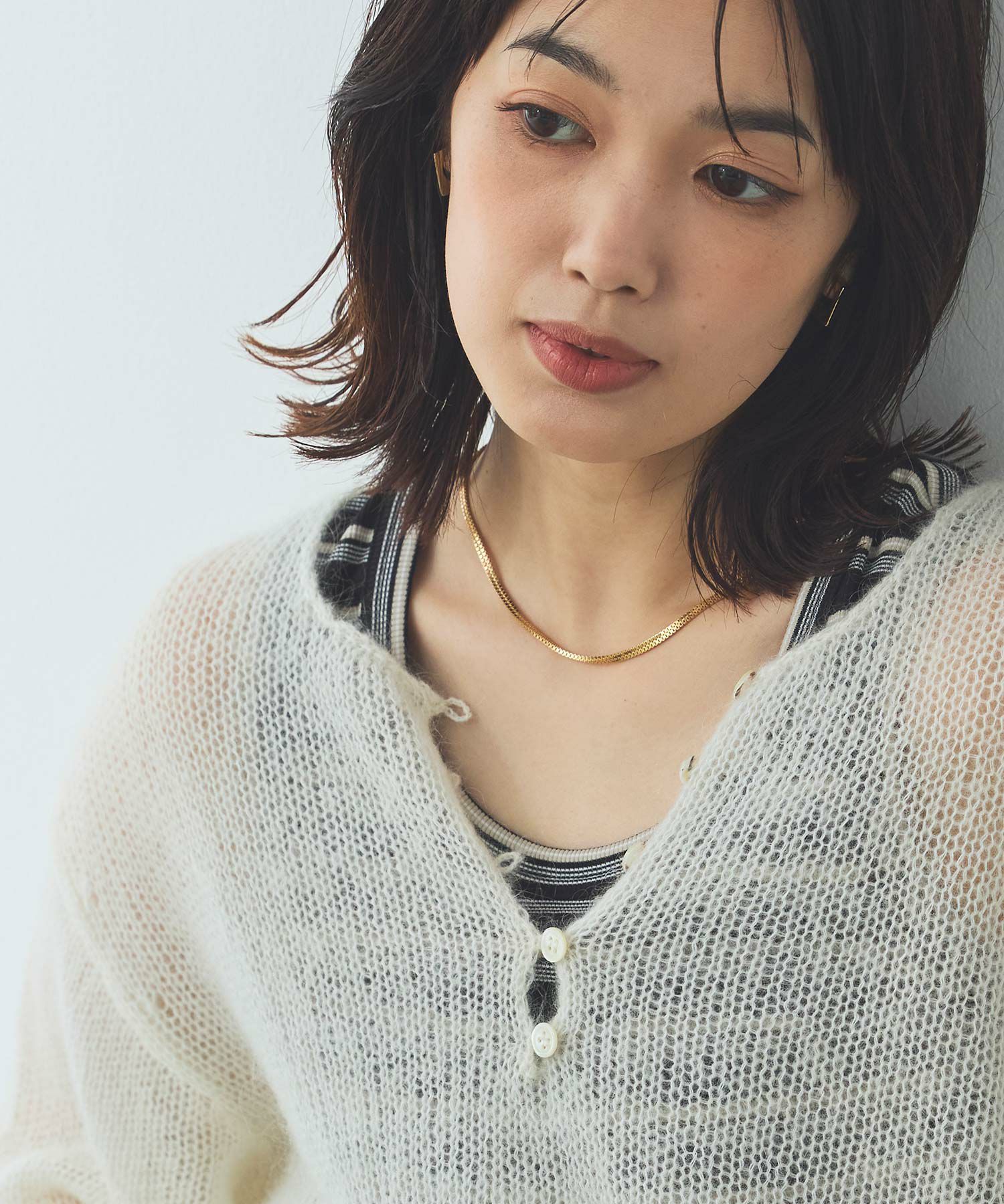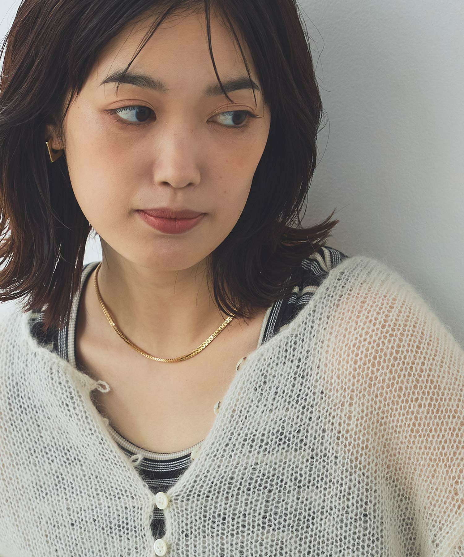 華奢なチェーンがさりげなく首元を魅せてくれます。