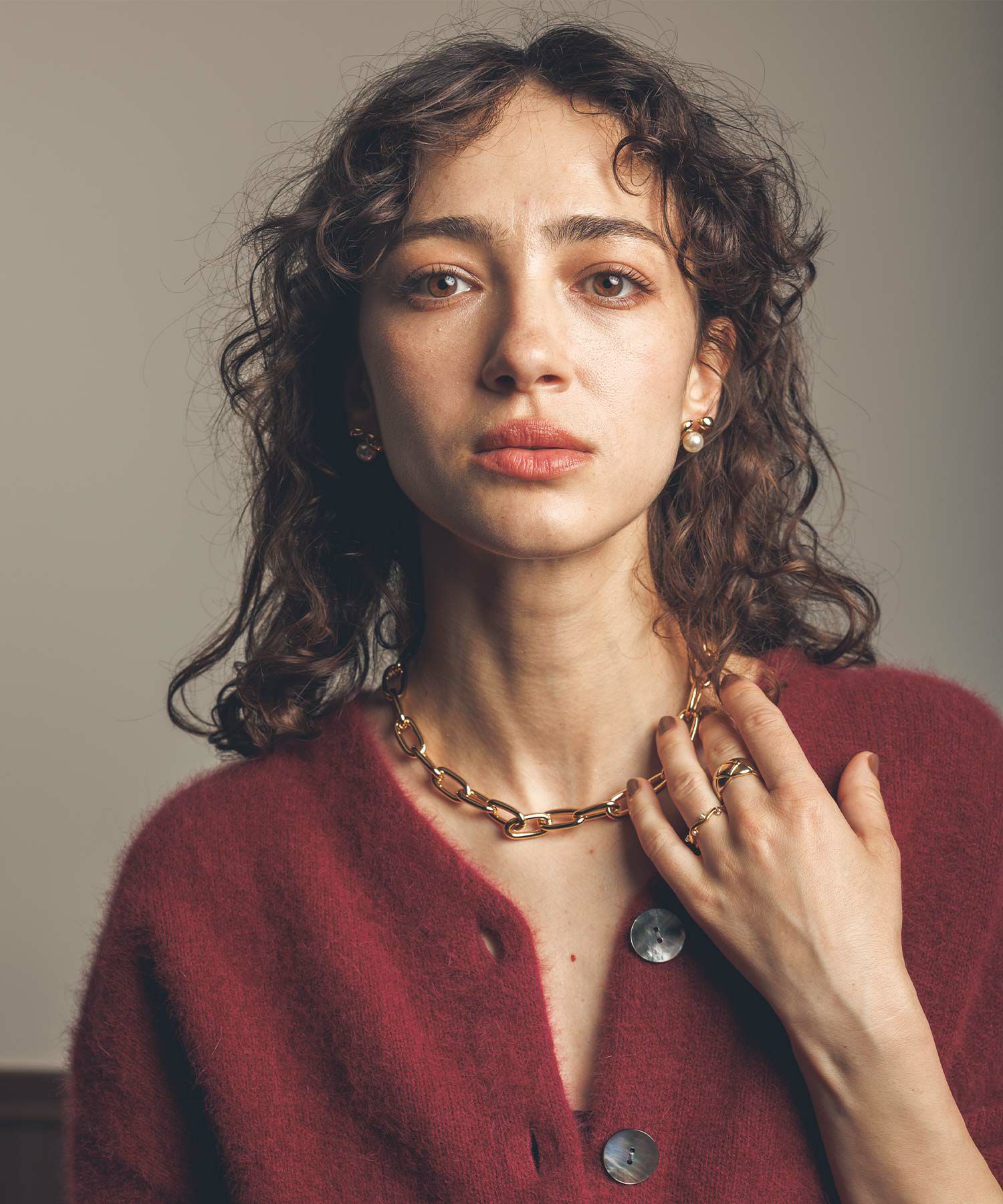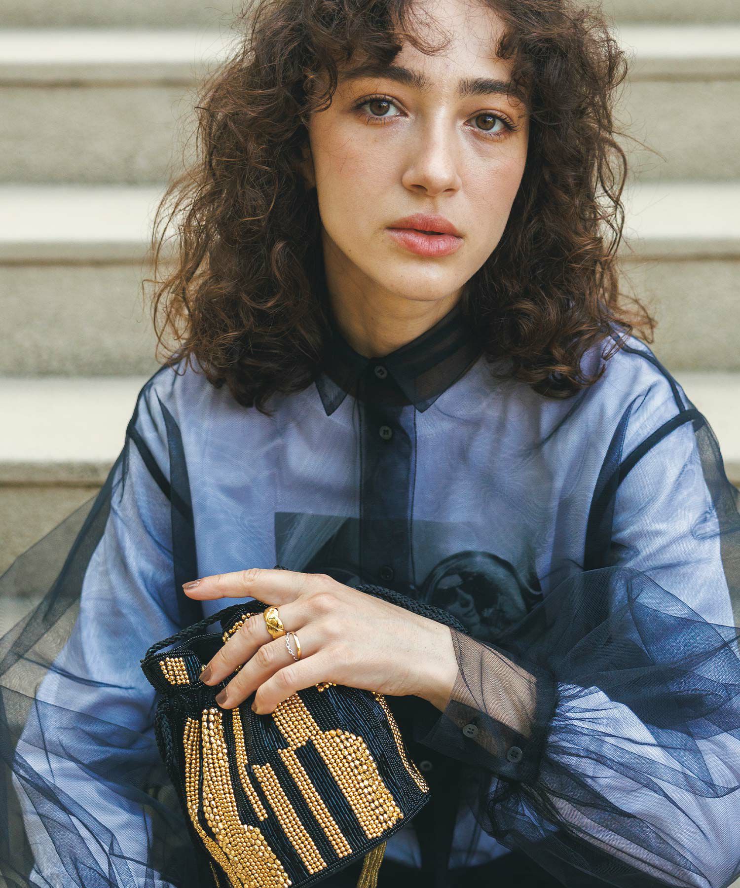 華奢なリングと合わせて付けるのがオススメ。