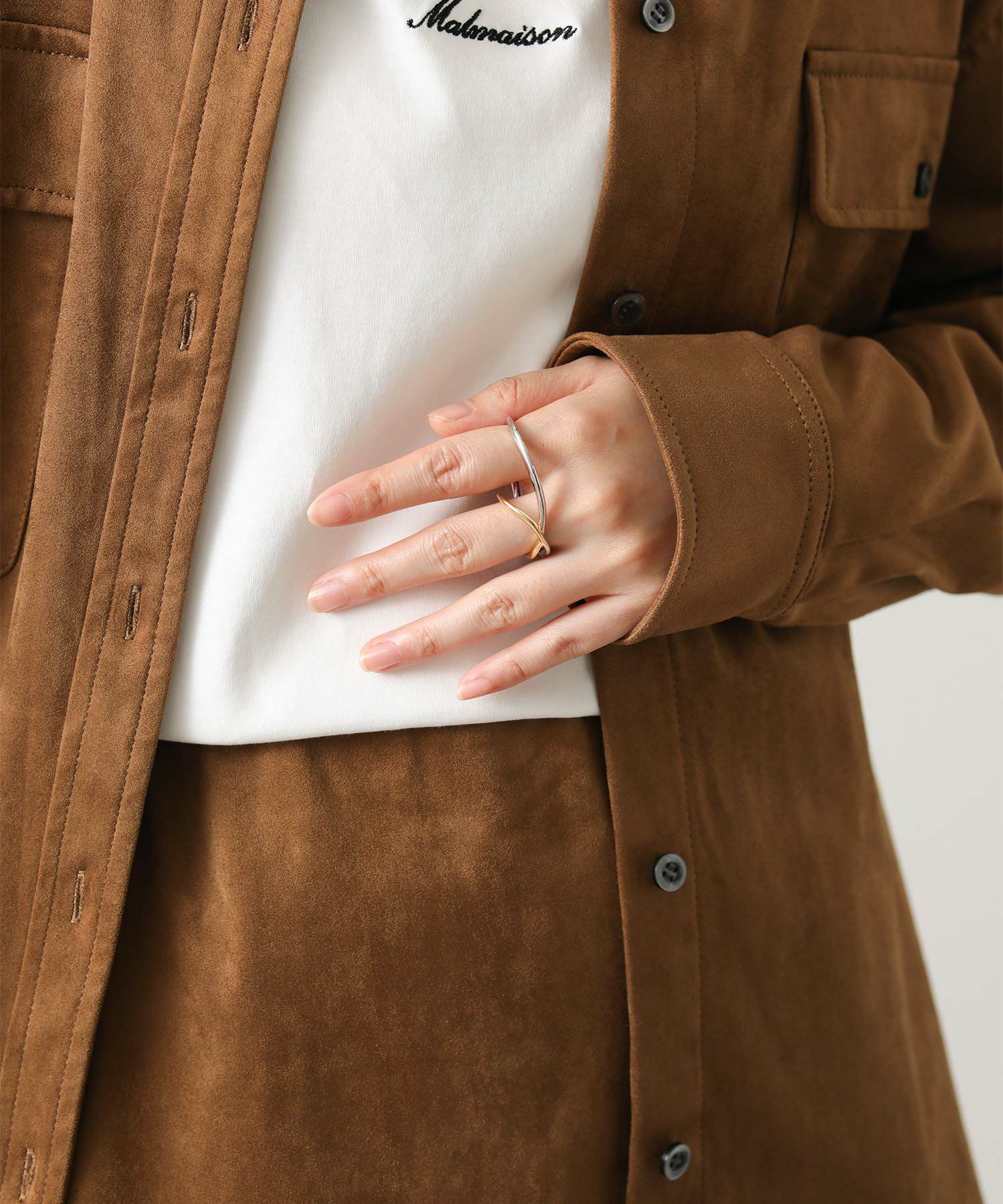 手元にインパクトを与える、二本の指に装着するダブルフィンガーリング。