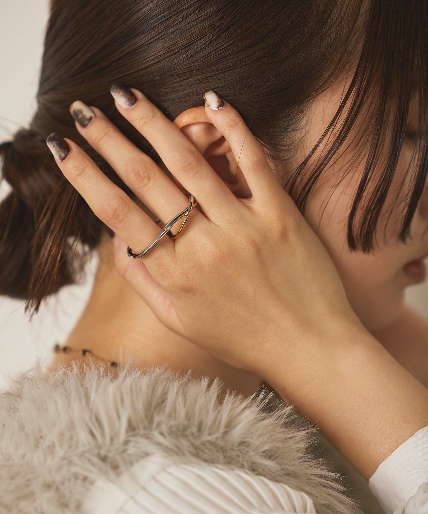 片側は二連になっており、まるでリングを重ね着けしているようなデザインになります。