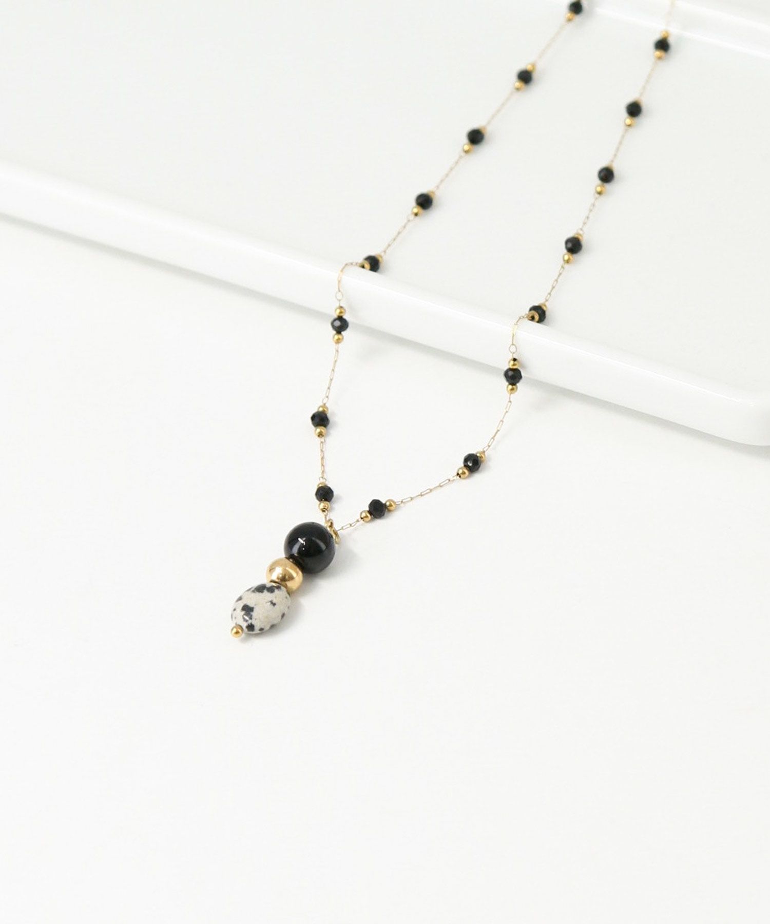 ストーンがスタイリングのポイントになるステンレス素材のネックレス。