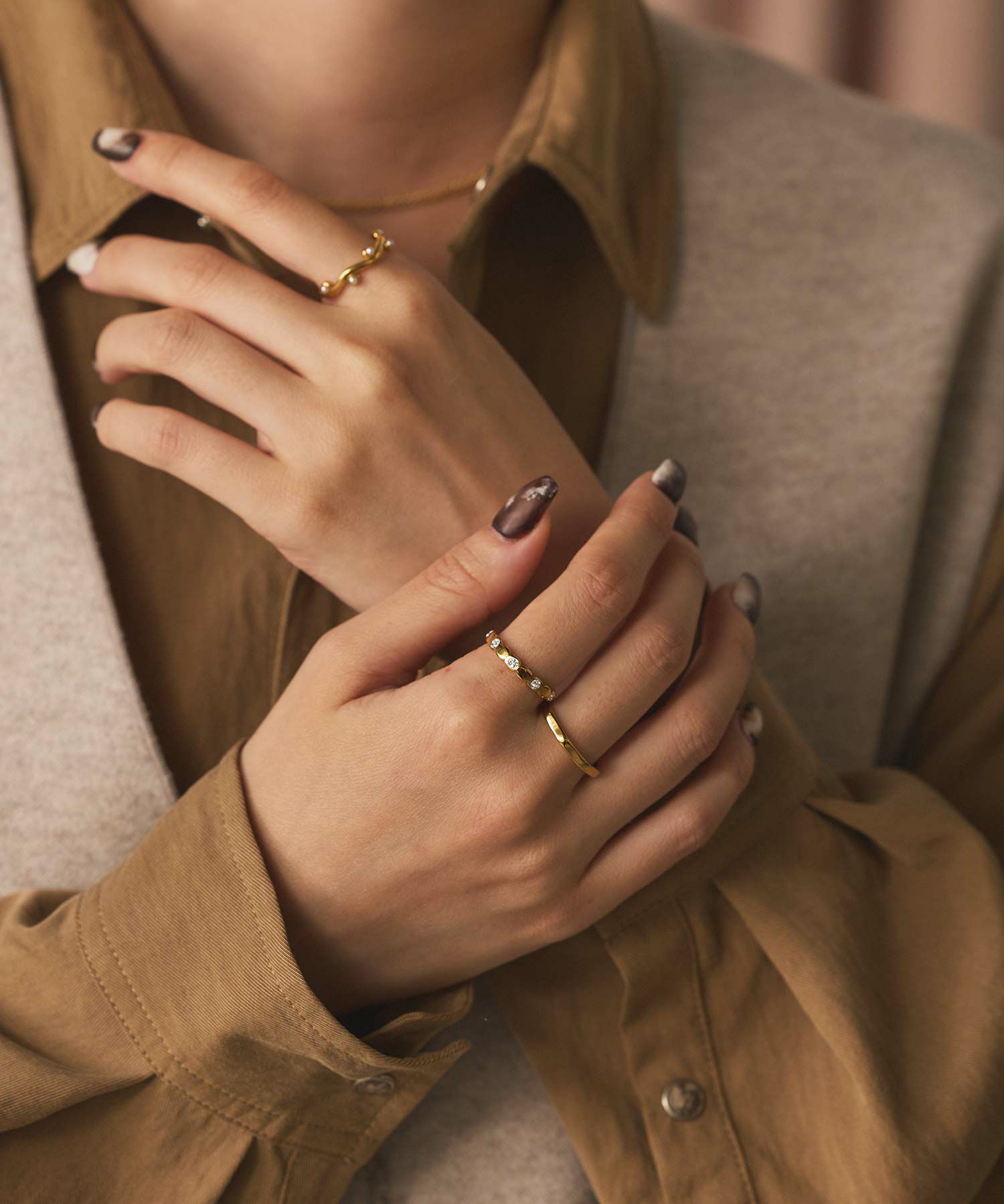 1つの指に重ねても、それぞれ単体で使っても、お手持ちのリングとの重ね付けにも◎