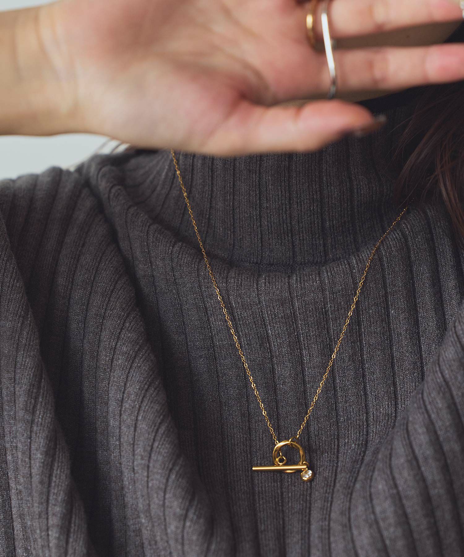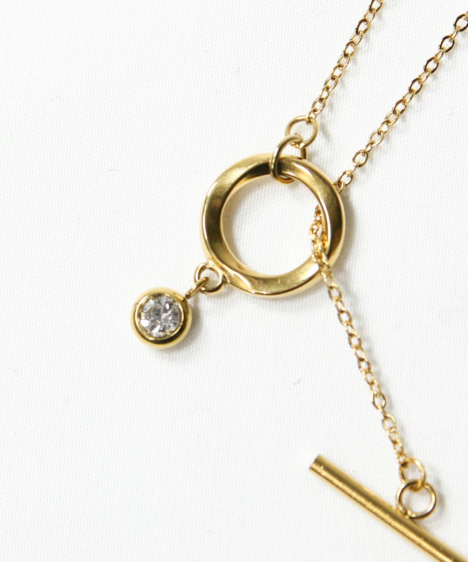 さりげないリングとストーンが女性らしい、ステンレス素材のネックレス。