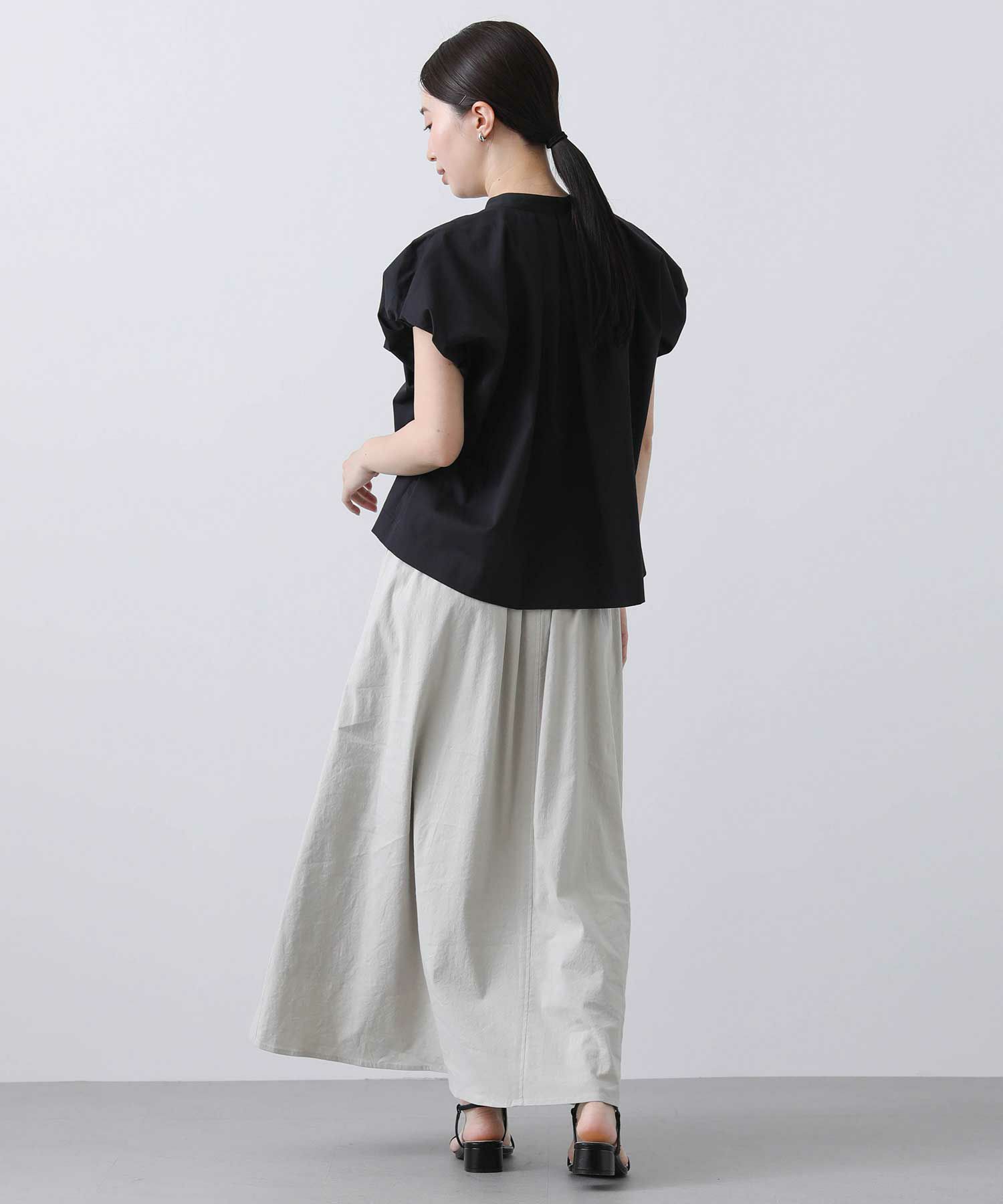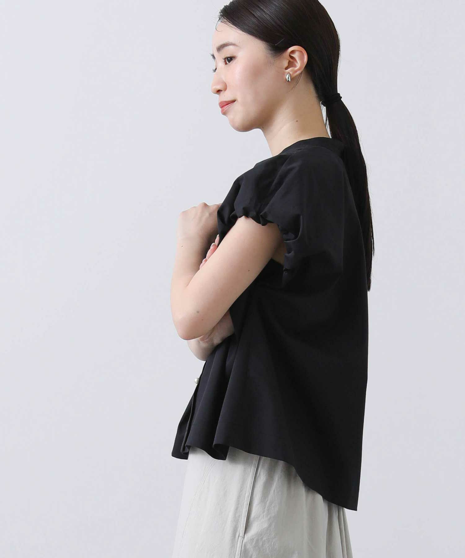 袖のバルーン仕様がポイントのブラウス。