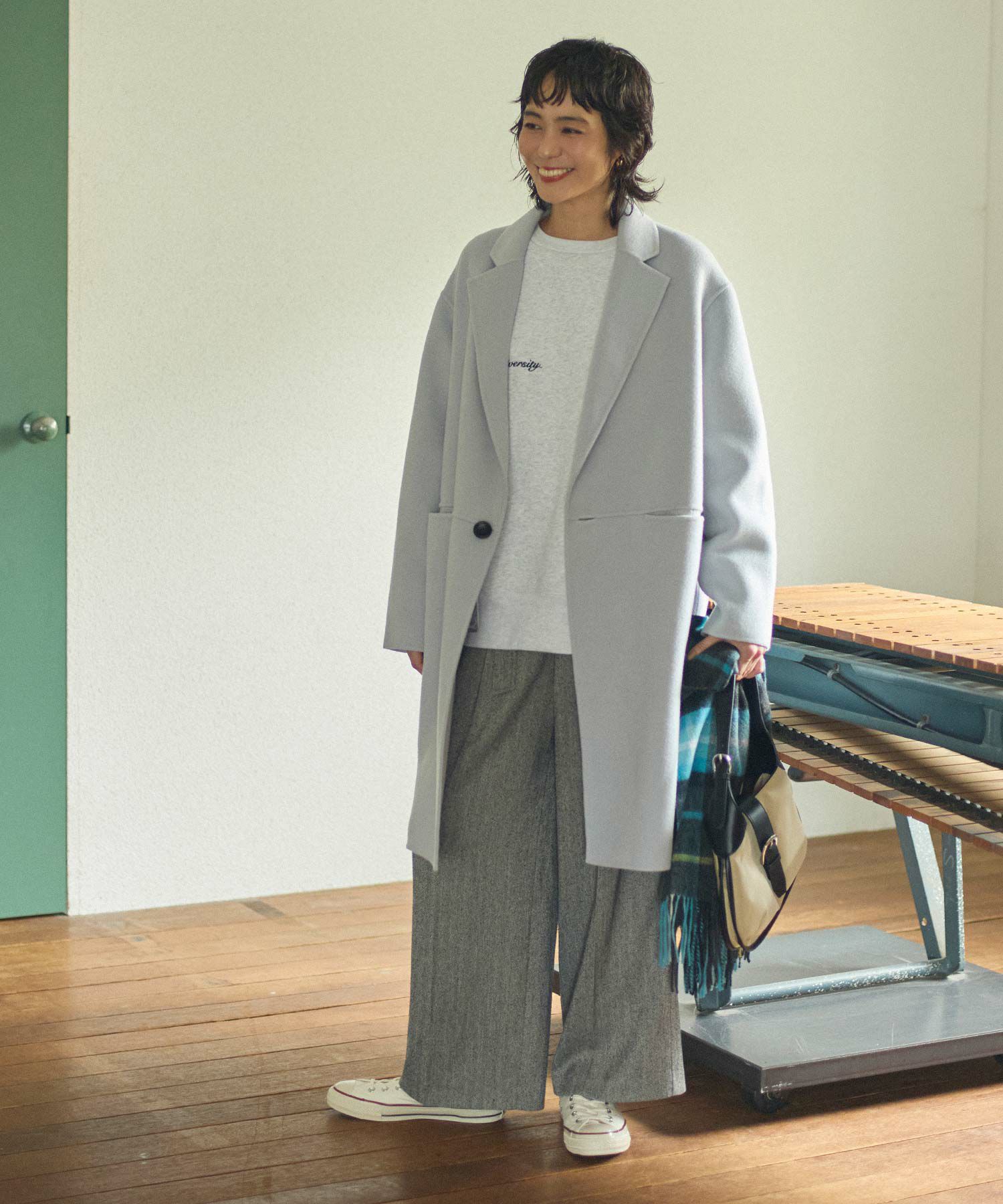 ※着用画像は撮影状況、光の当たり具合で色みが違って見える場合がございます。実際の色みについては、画像一覧の最後に掲載している詳細画像をご参照ください。