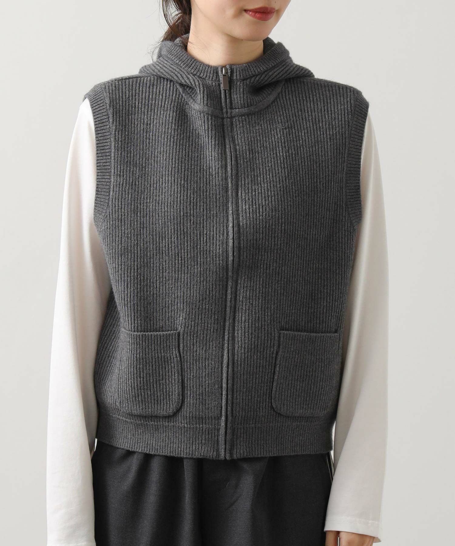 コンパクトなサイズ感が魅力のニットパーカーベスト。