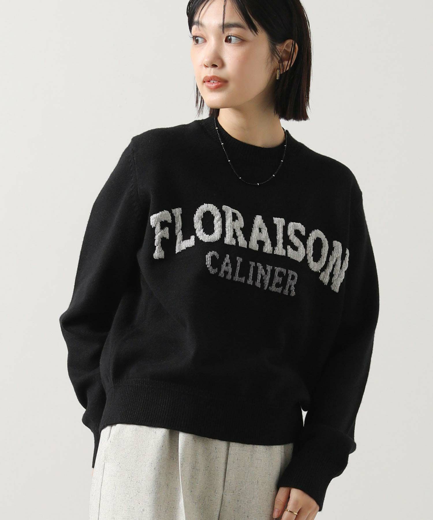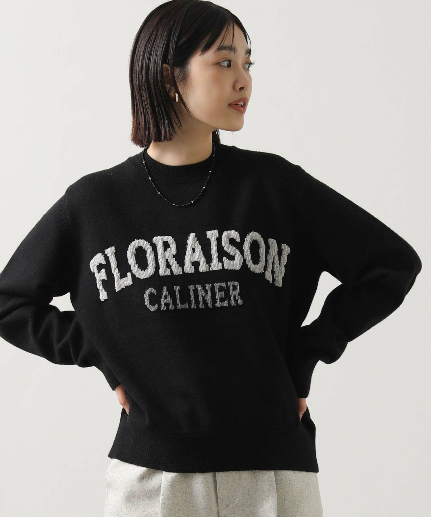 ロゴにさりげく光るラメ糸と立体感のあるモール糸を組み合わせたデザインニット。