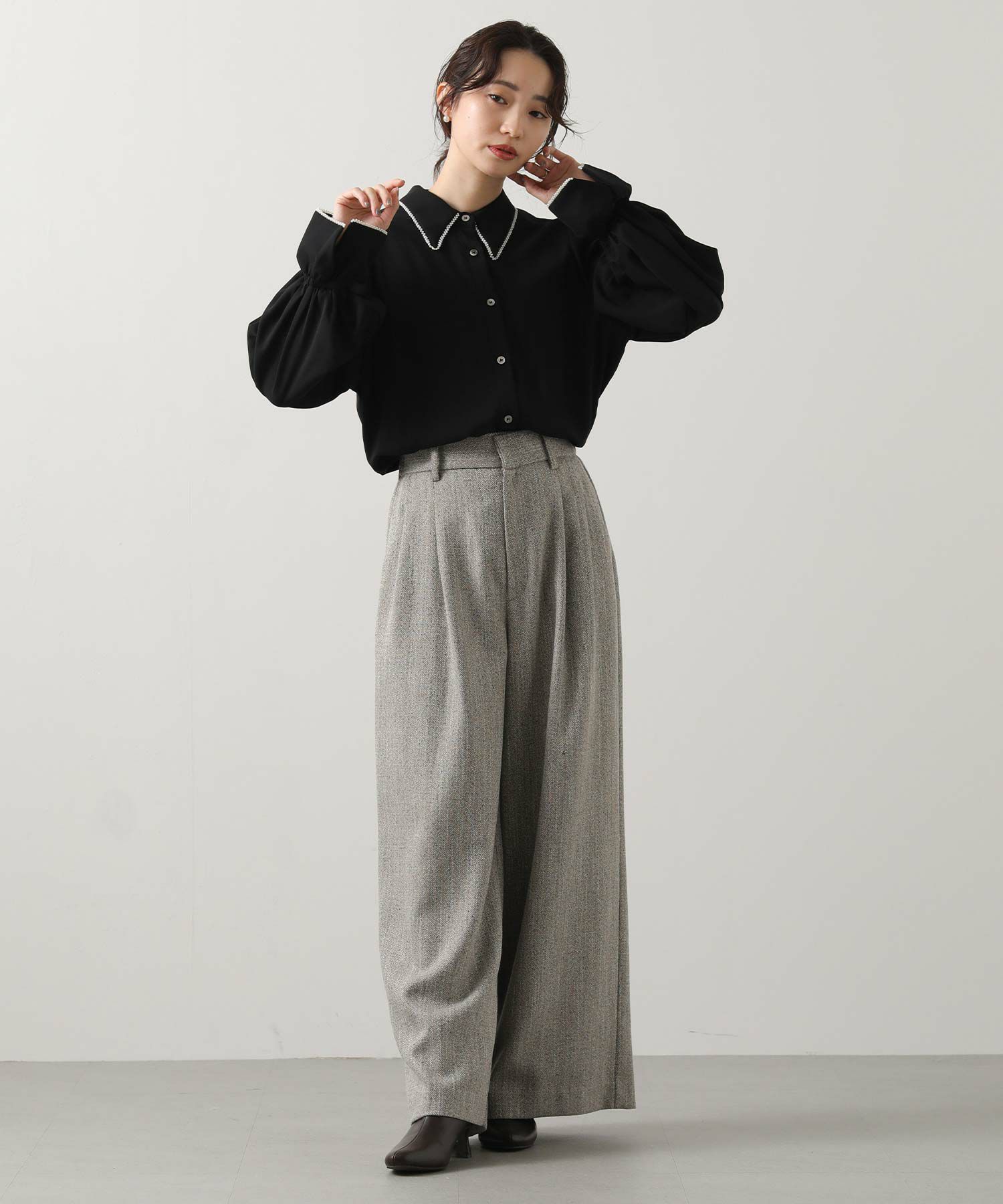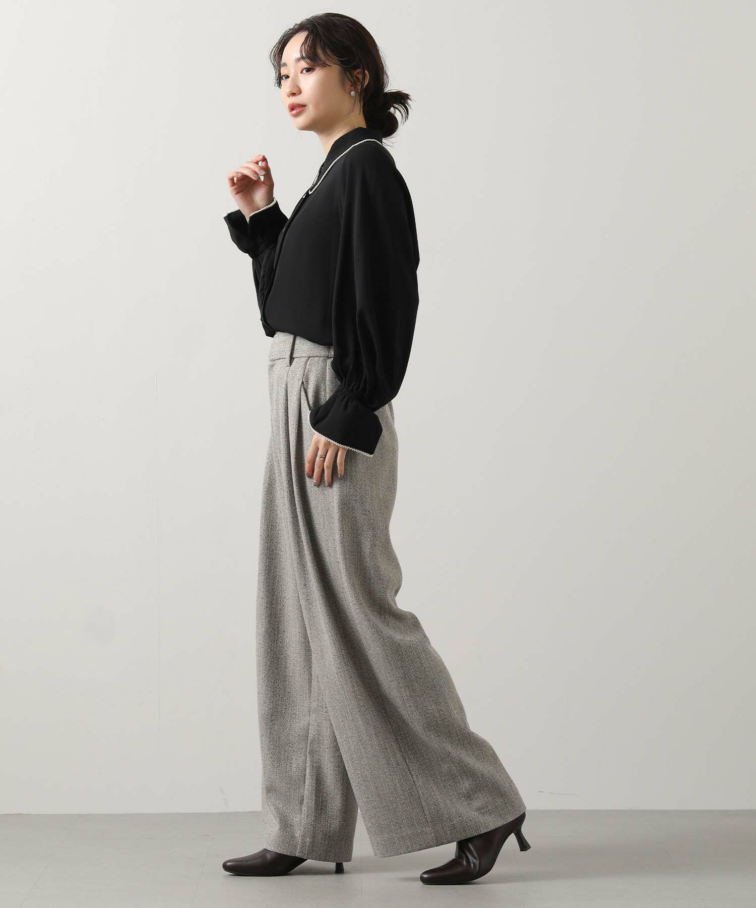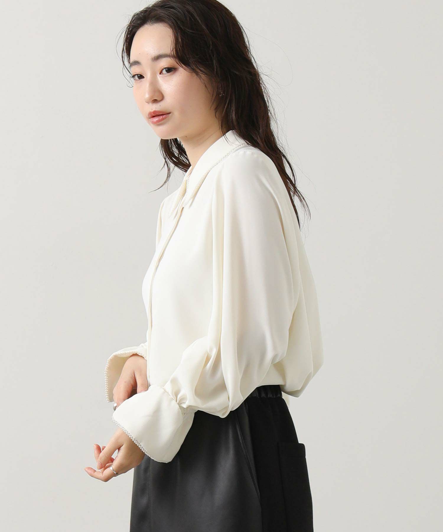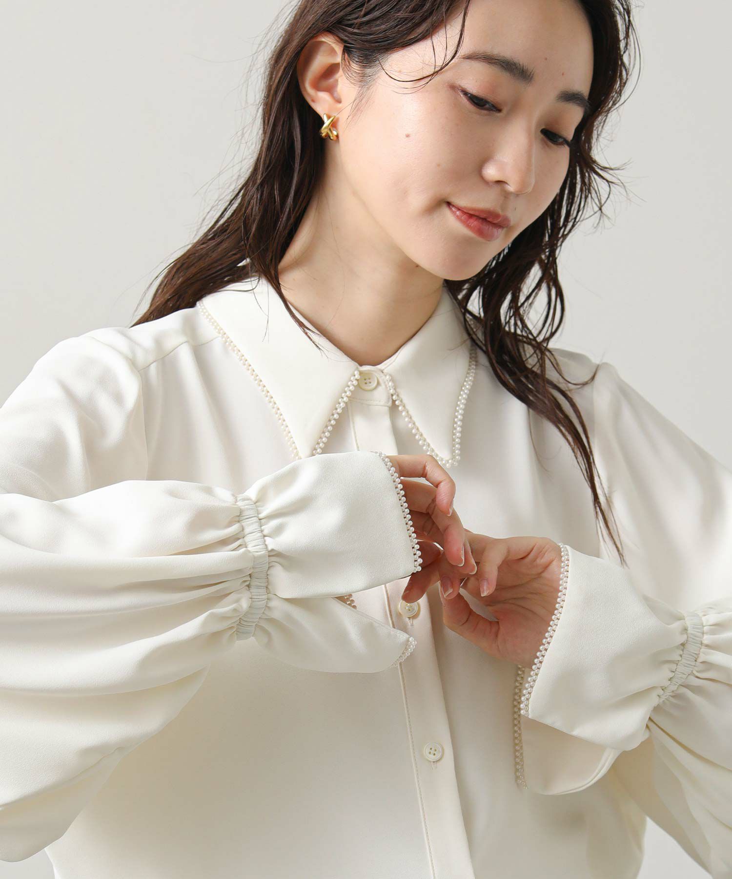 【anana(アナナ)】から、衿まわりとカフスまわりにパールを施した華やかなブラウスをセレクト。
