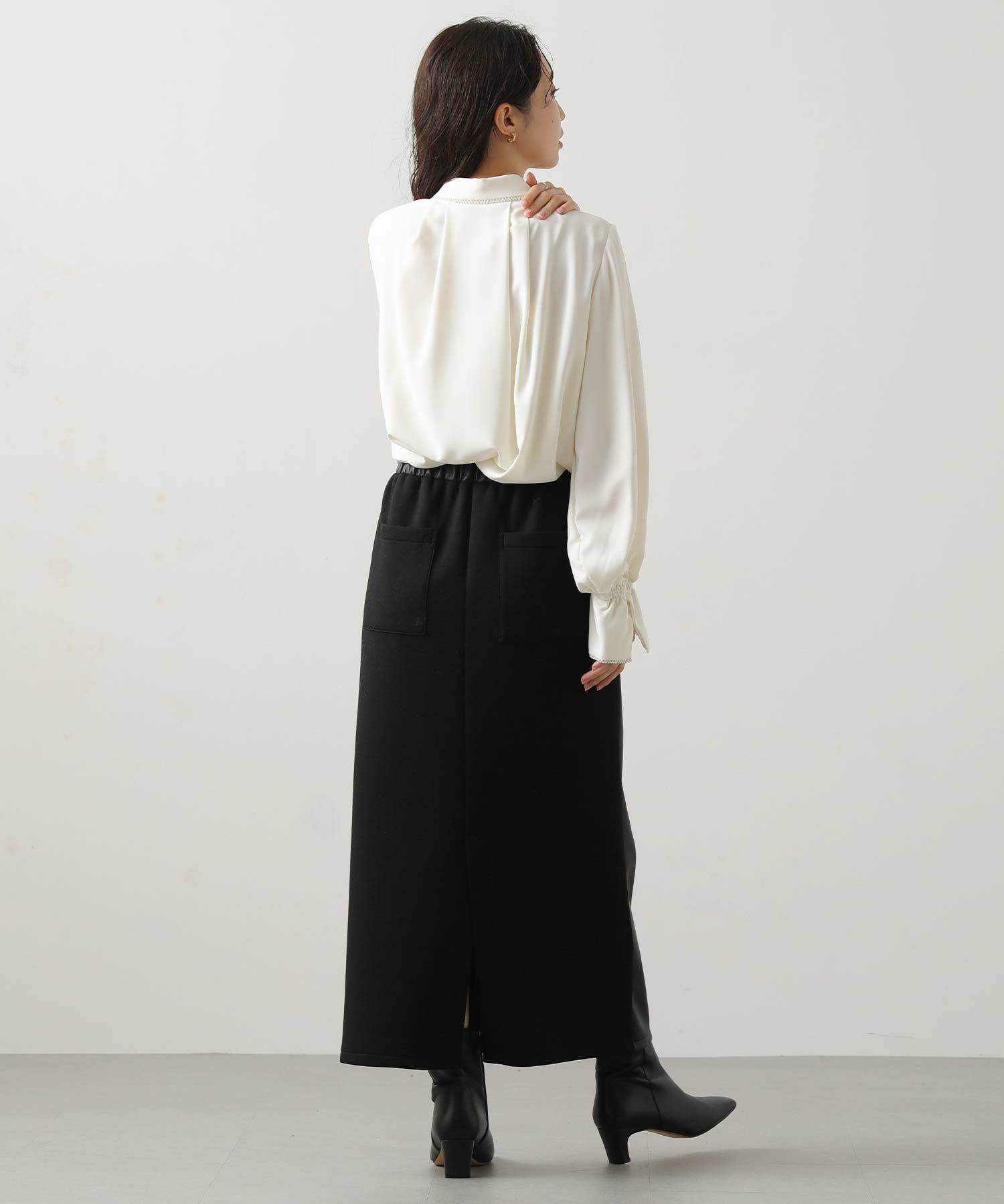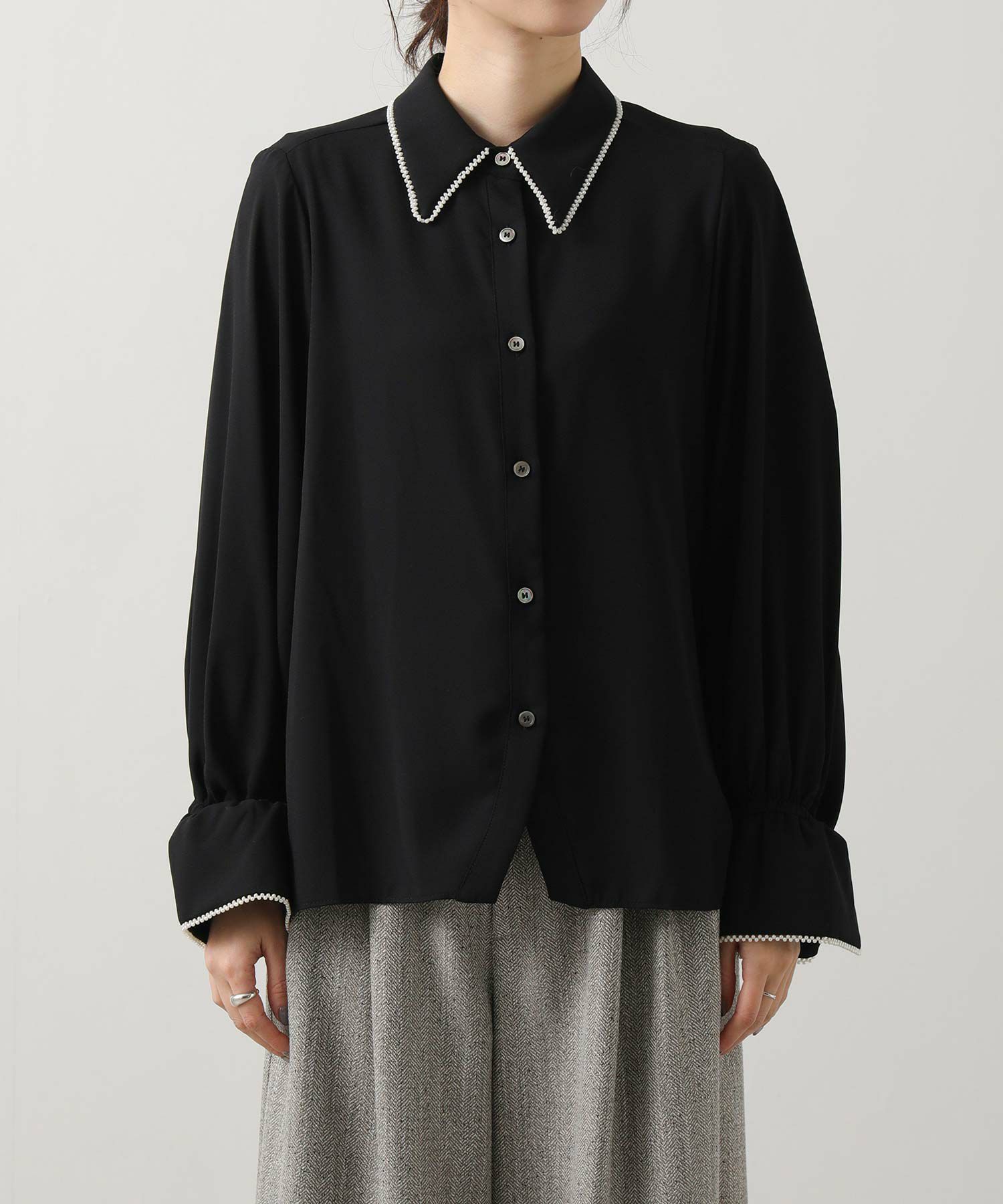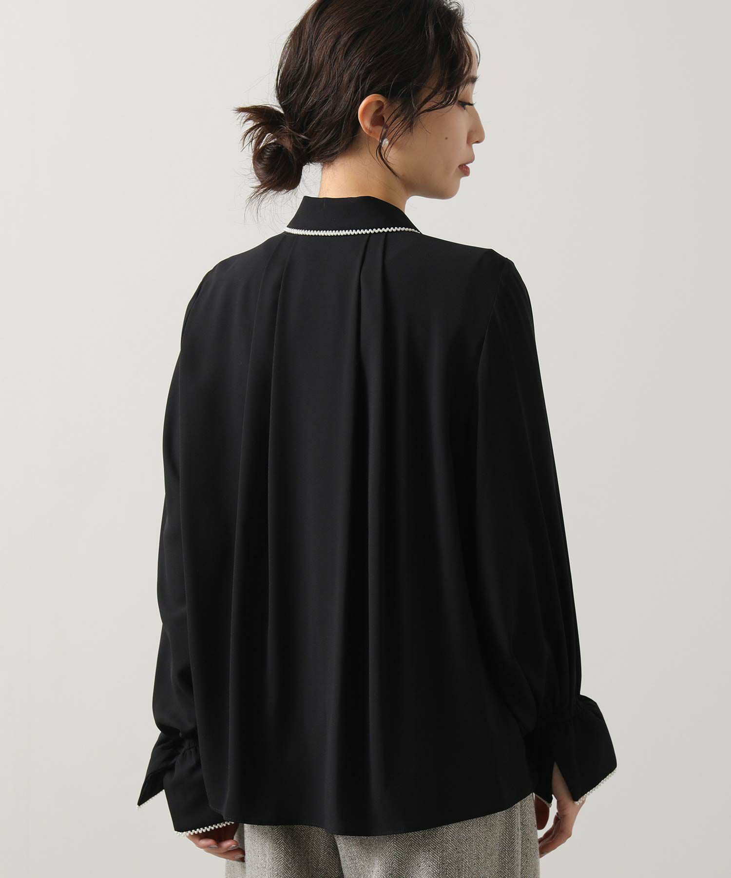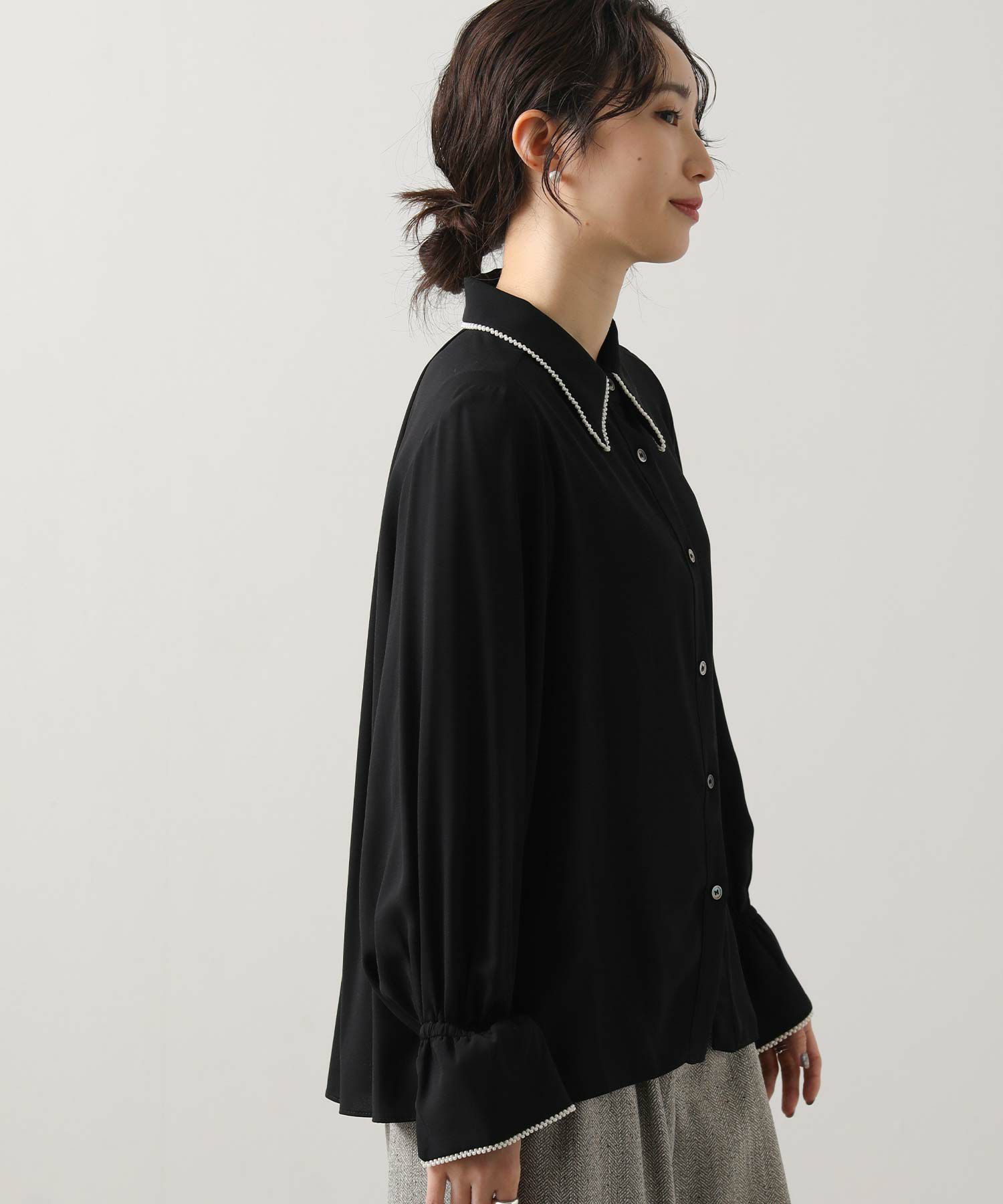 【anana(アナナ)】から、衿まわりとカフスまわりにパールを施した華やかなブラウスをセレクト。