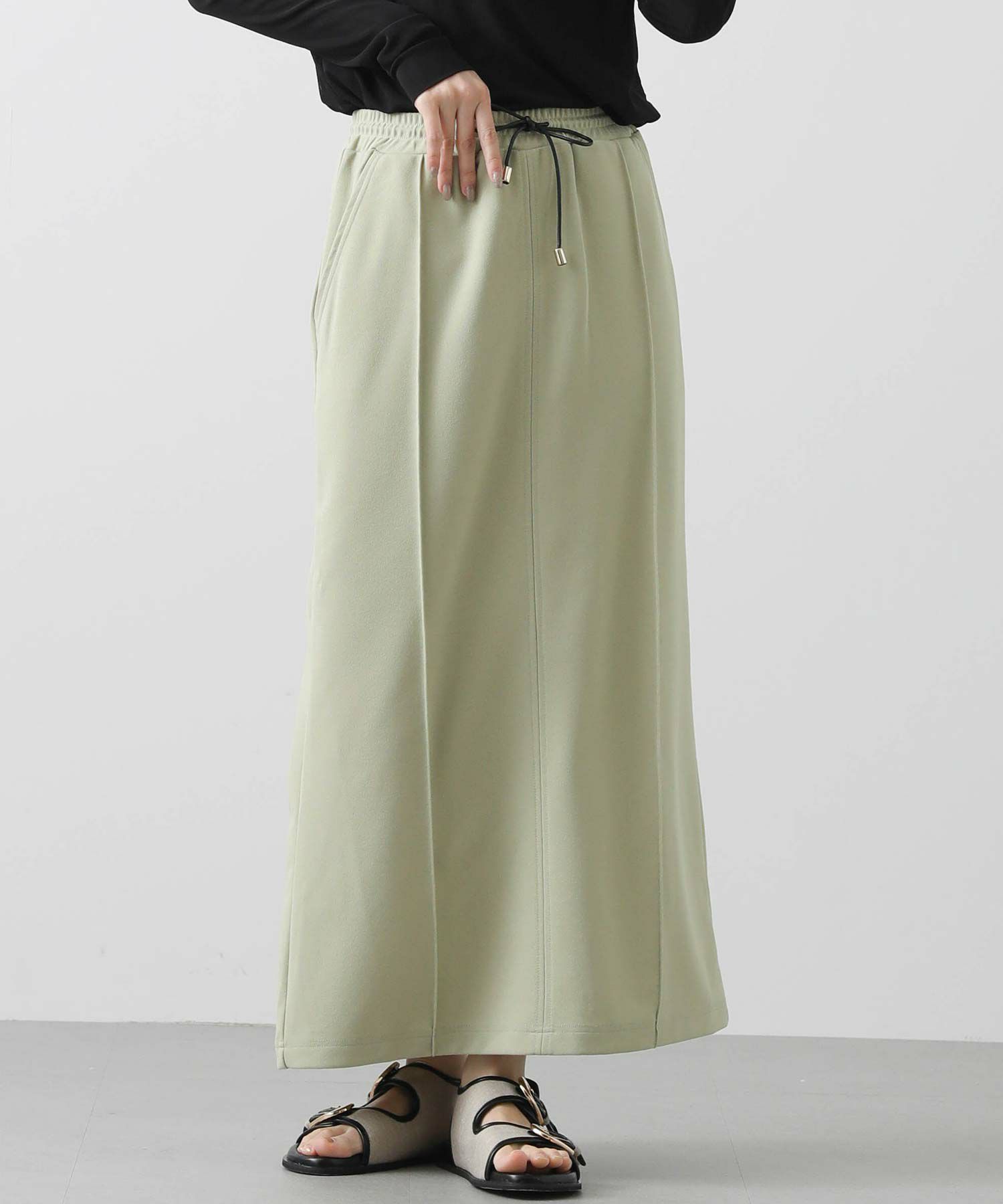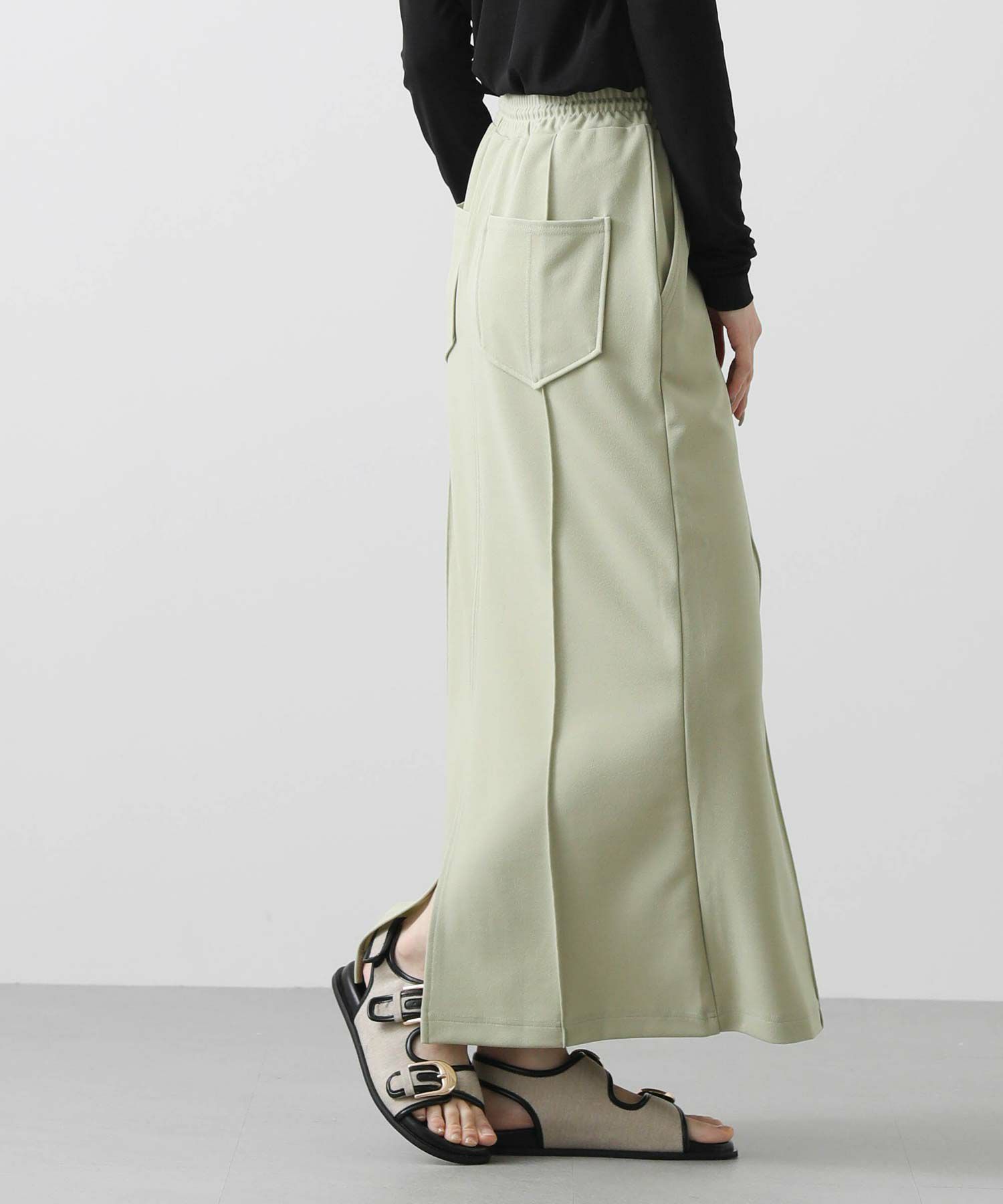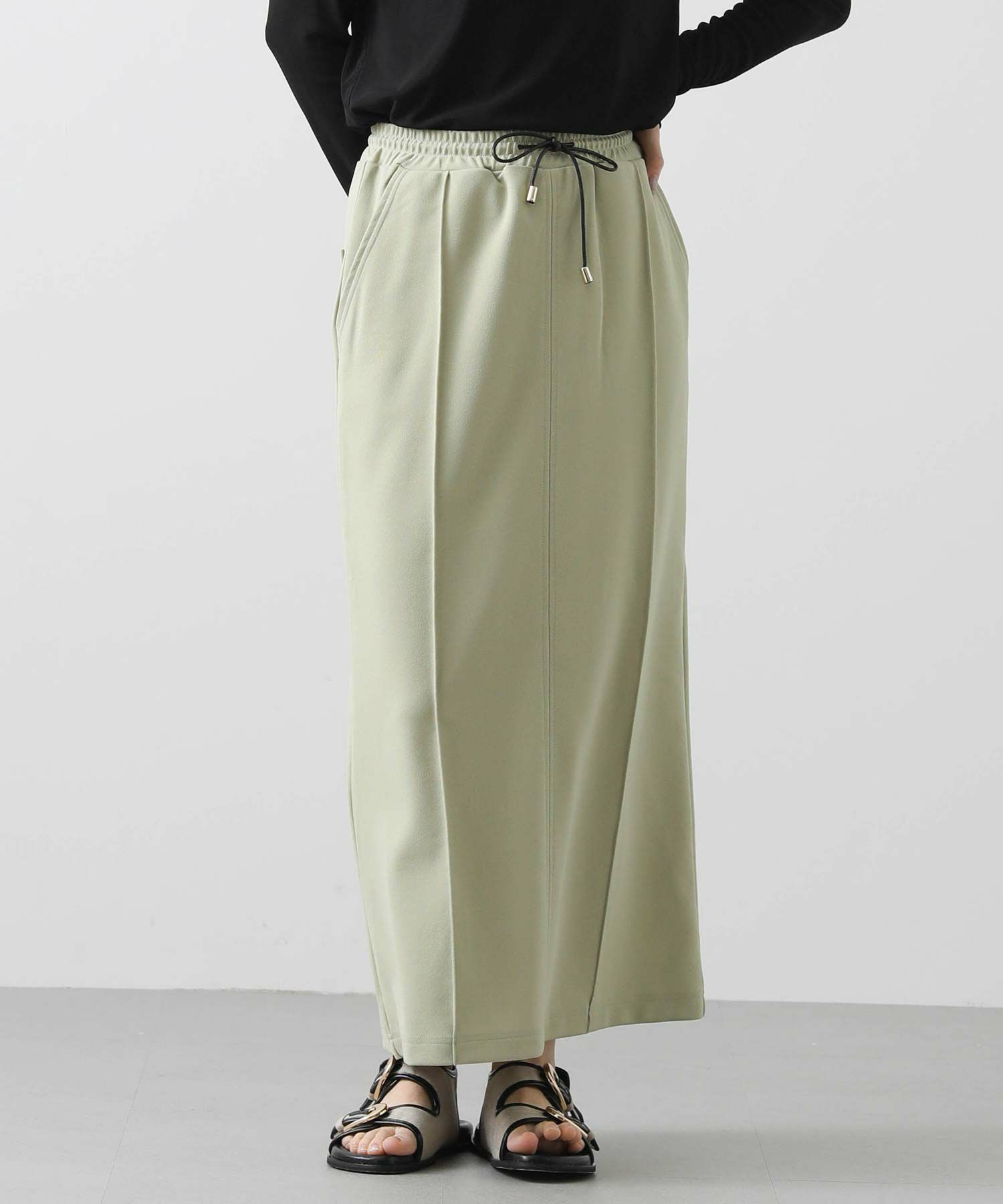 肌当たりの良いジョーゼット素材のタイトスカート。