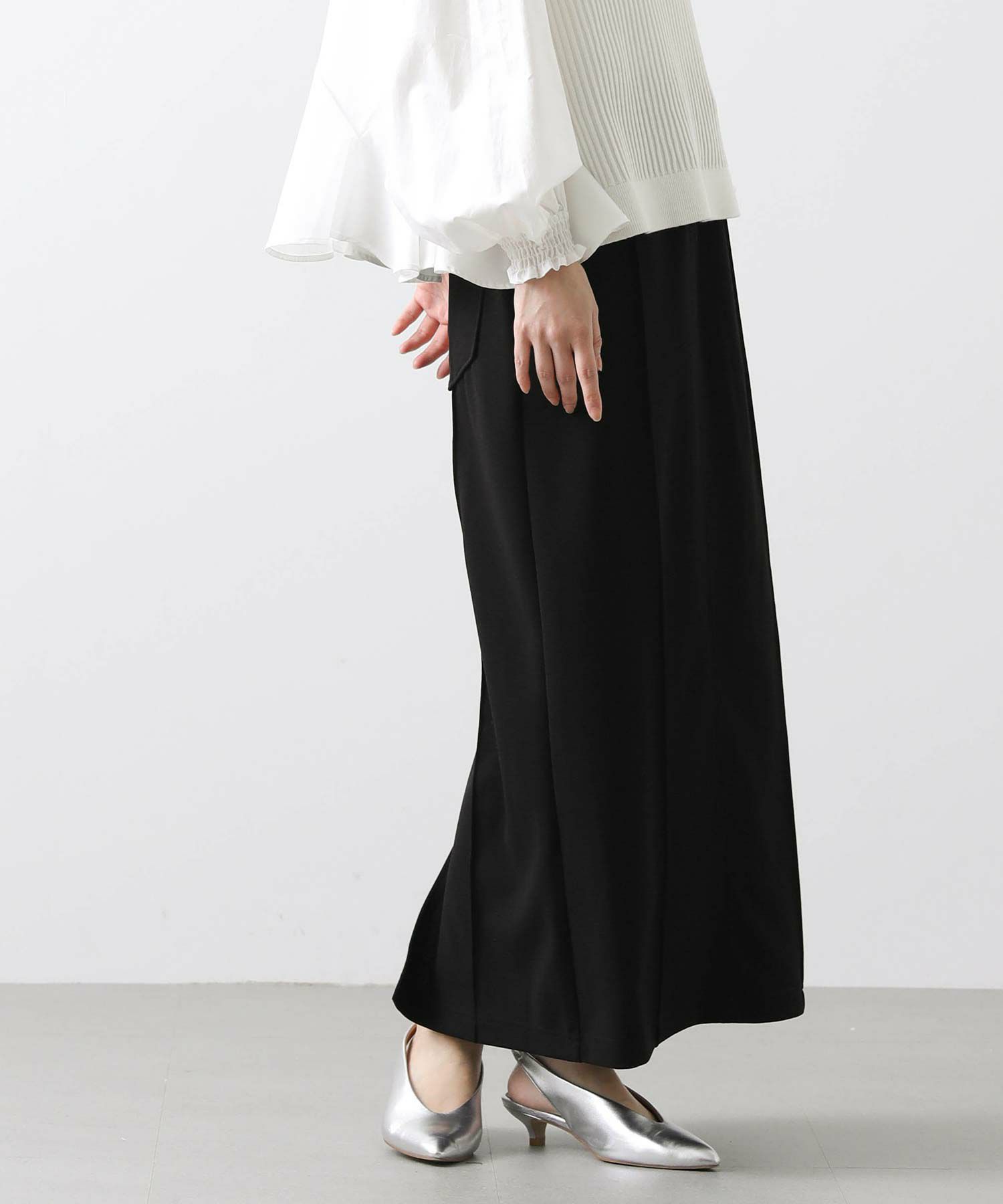 表情のあるジョーゼット素材は身体を包み込むような柔らかなフィット感があり、穿き心地も抜群。シンプルでタイムレスに着回せる1枚です。