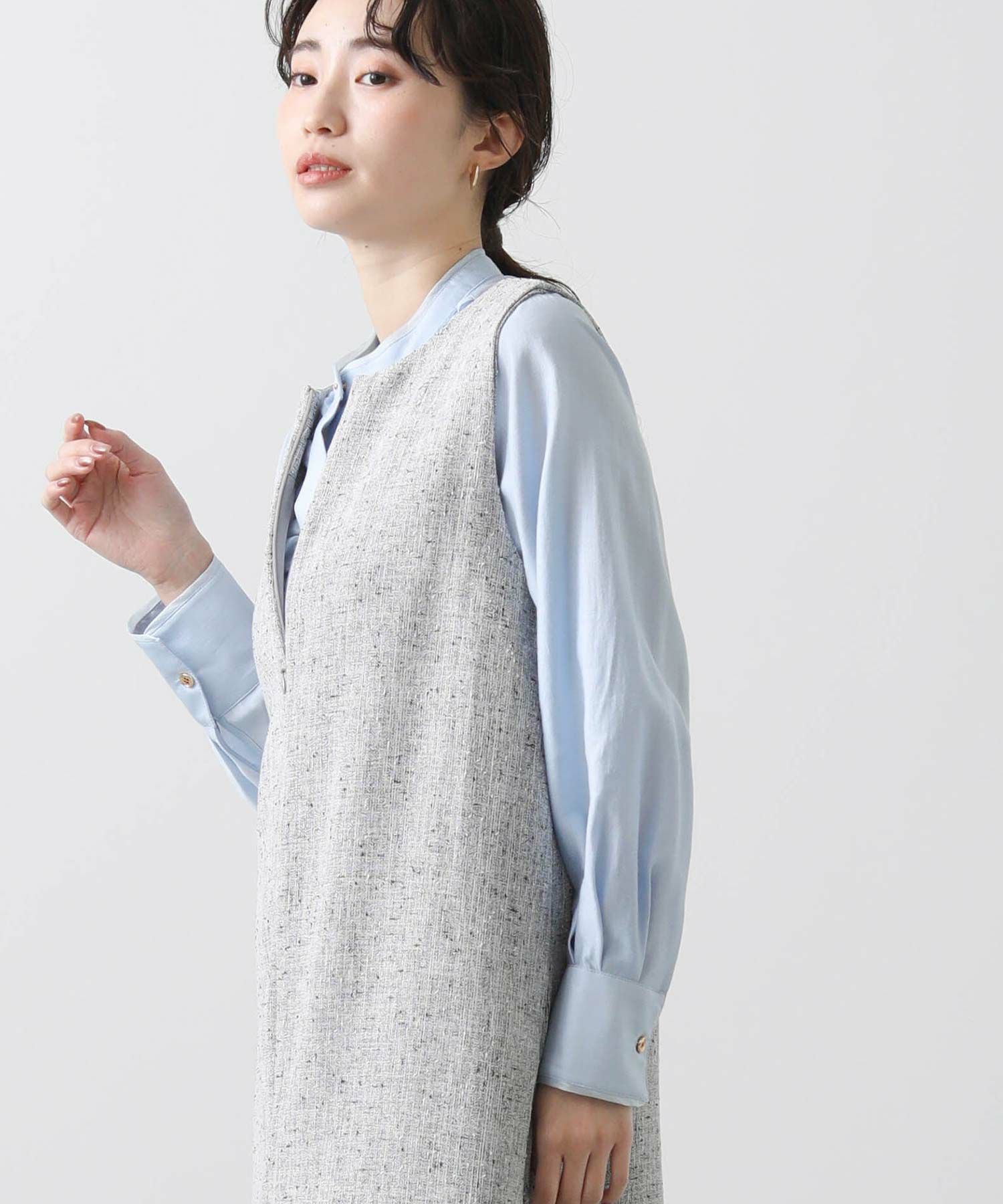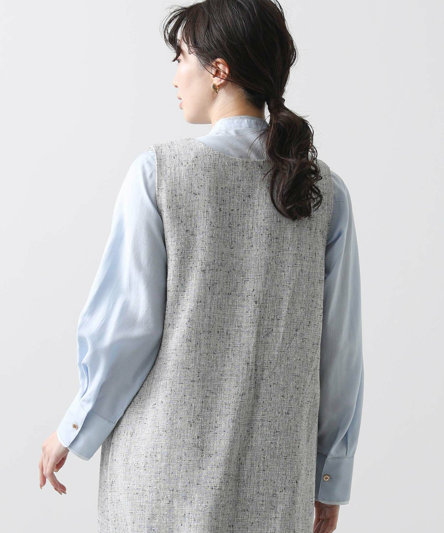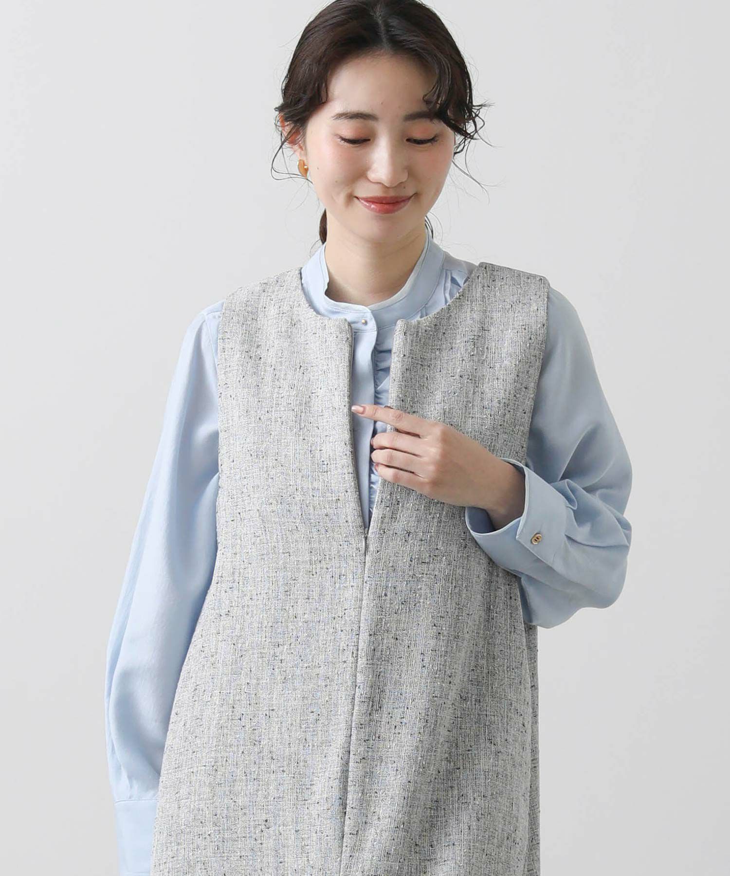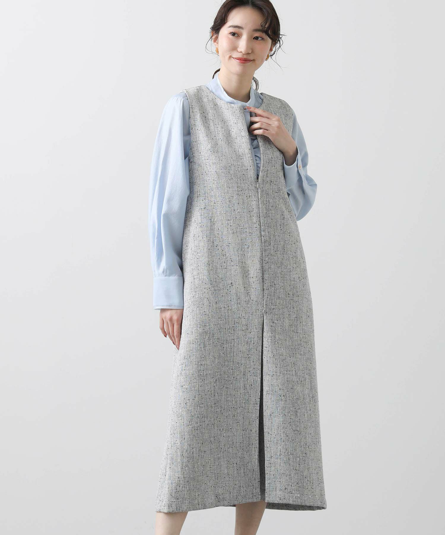 ショートジャケット(OD1157402001)と同素材でセットアップとして着られるツイードワンピースは、ハレの日スタイルにぴったりなアイテム!前後2wayで着られるデザインになっています。