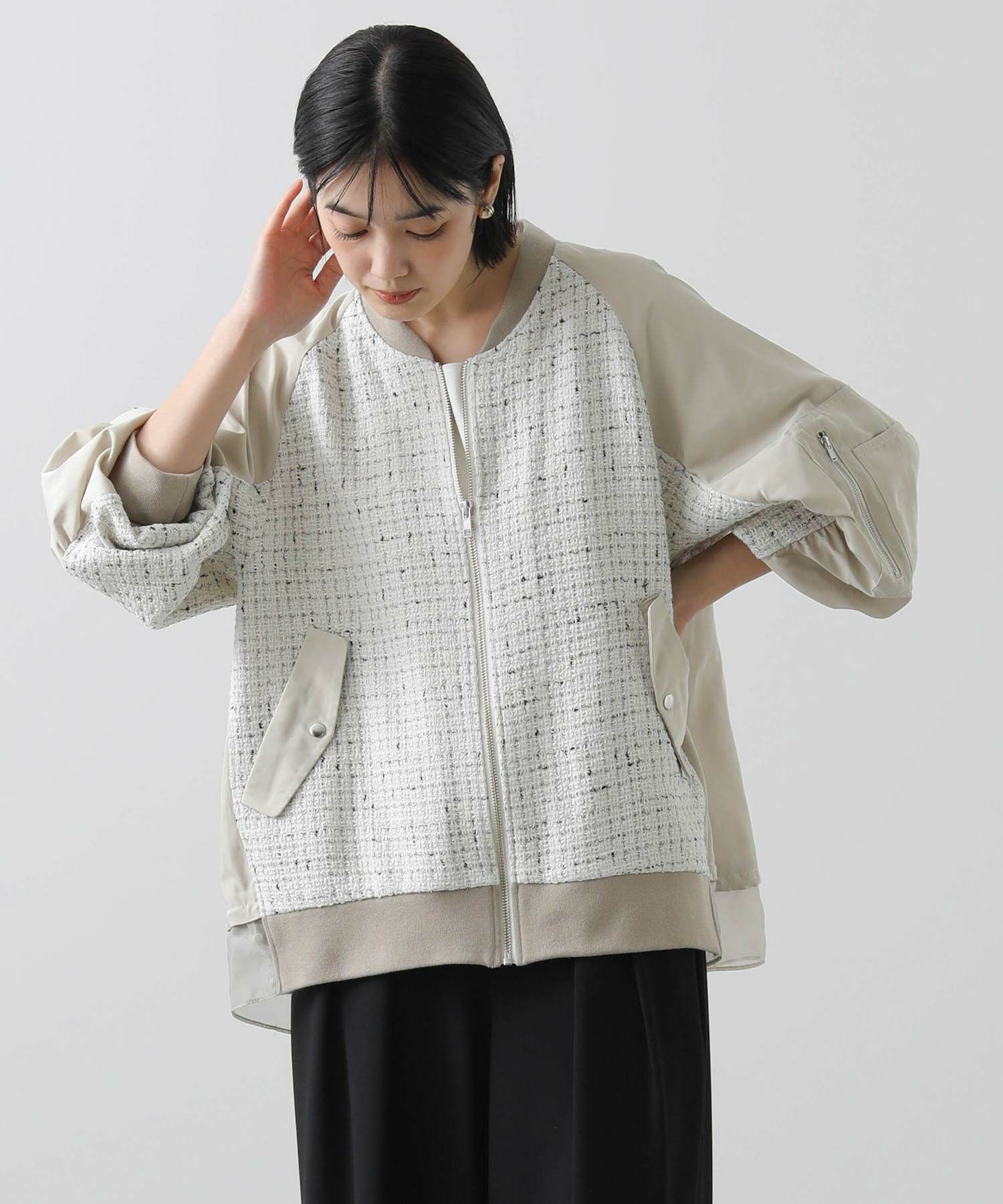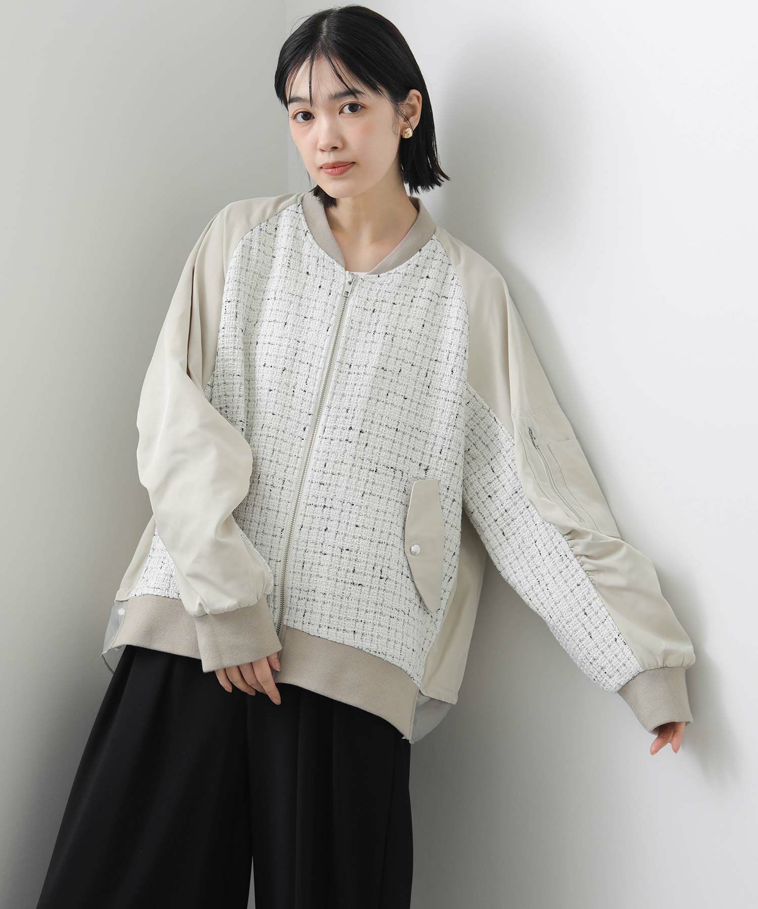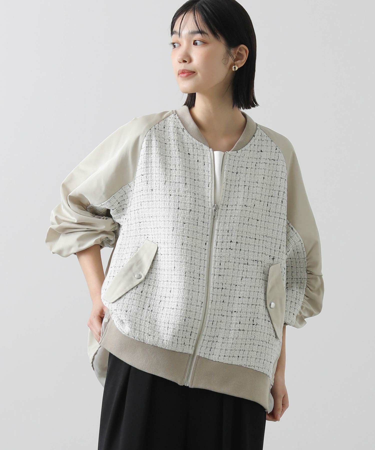 秋冬にご好評いただいたファンシーツイードとツイルを組み合わせた異素材ブルゾンが、アップグレードして登場です。