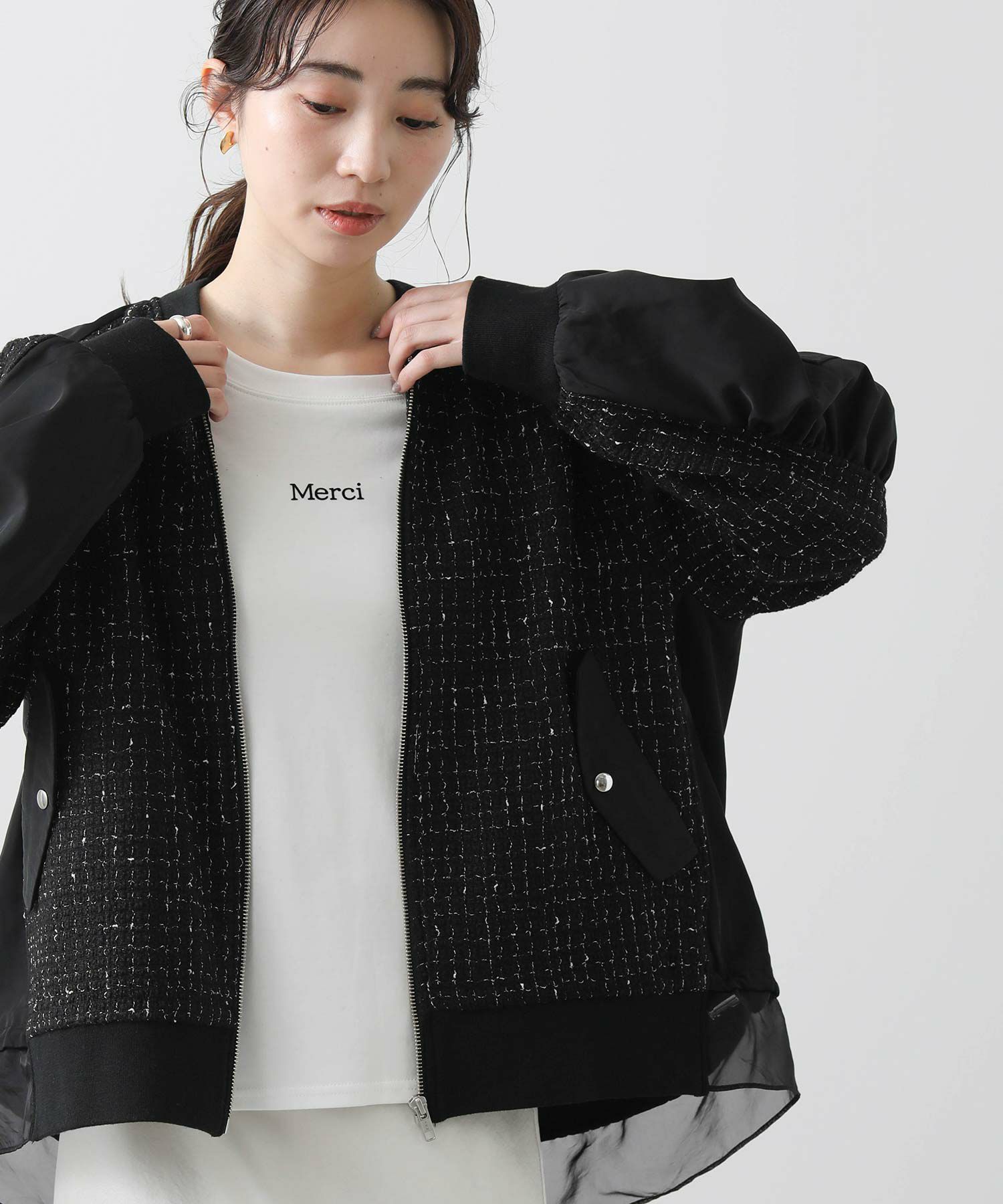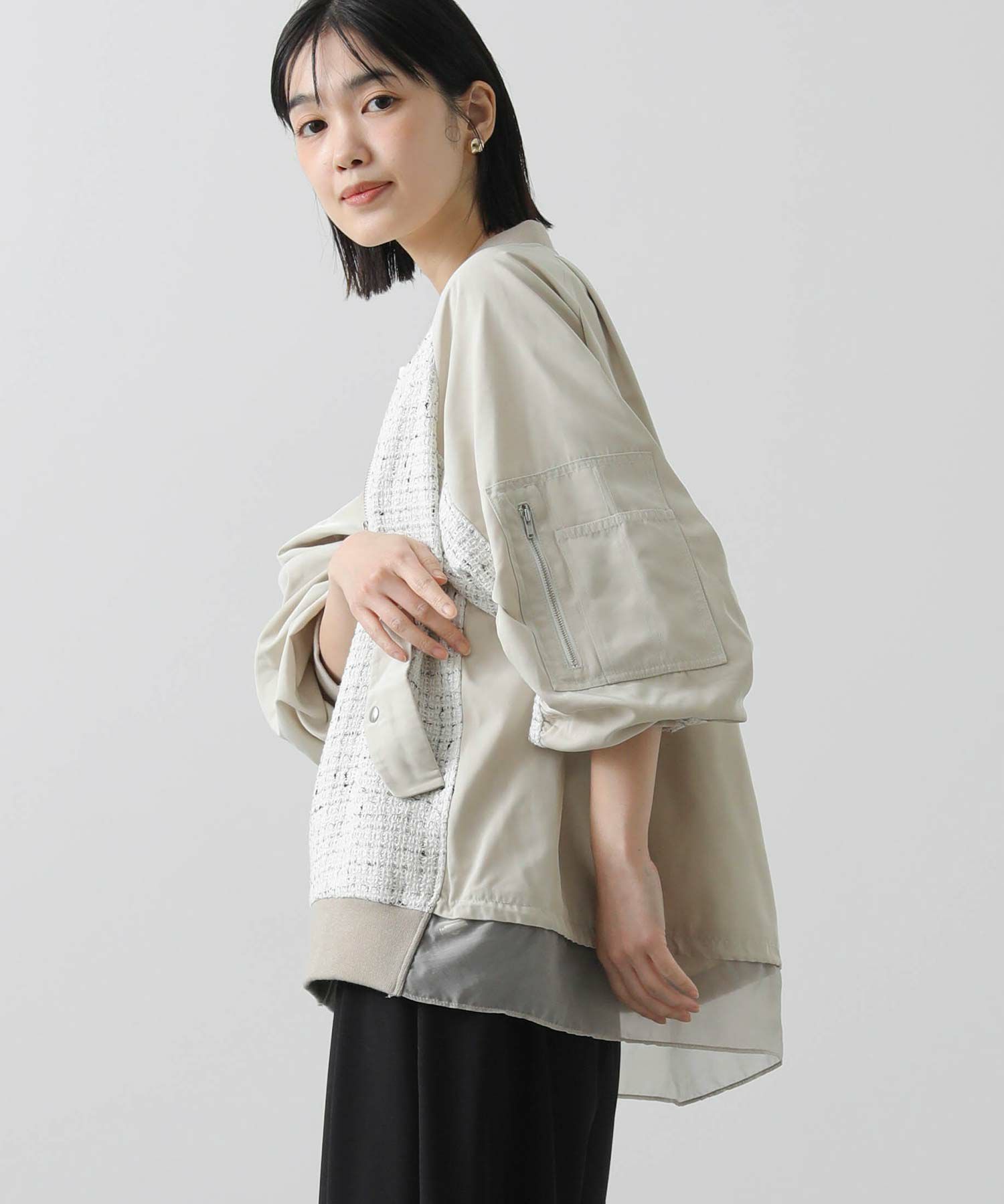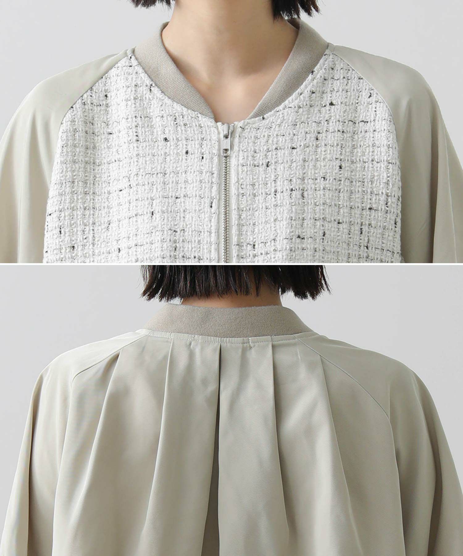 秋冬にご好評いただいたファンシーツイードとツイルを組み合わせた異素材ブルゾンが、アップグレードして登場です。