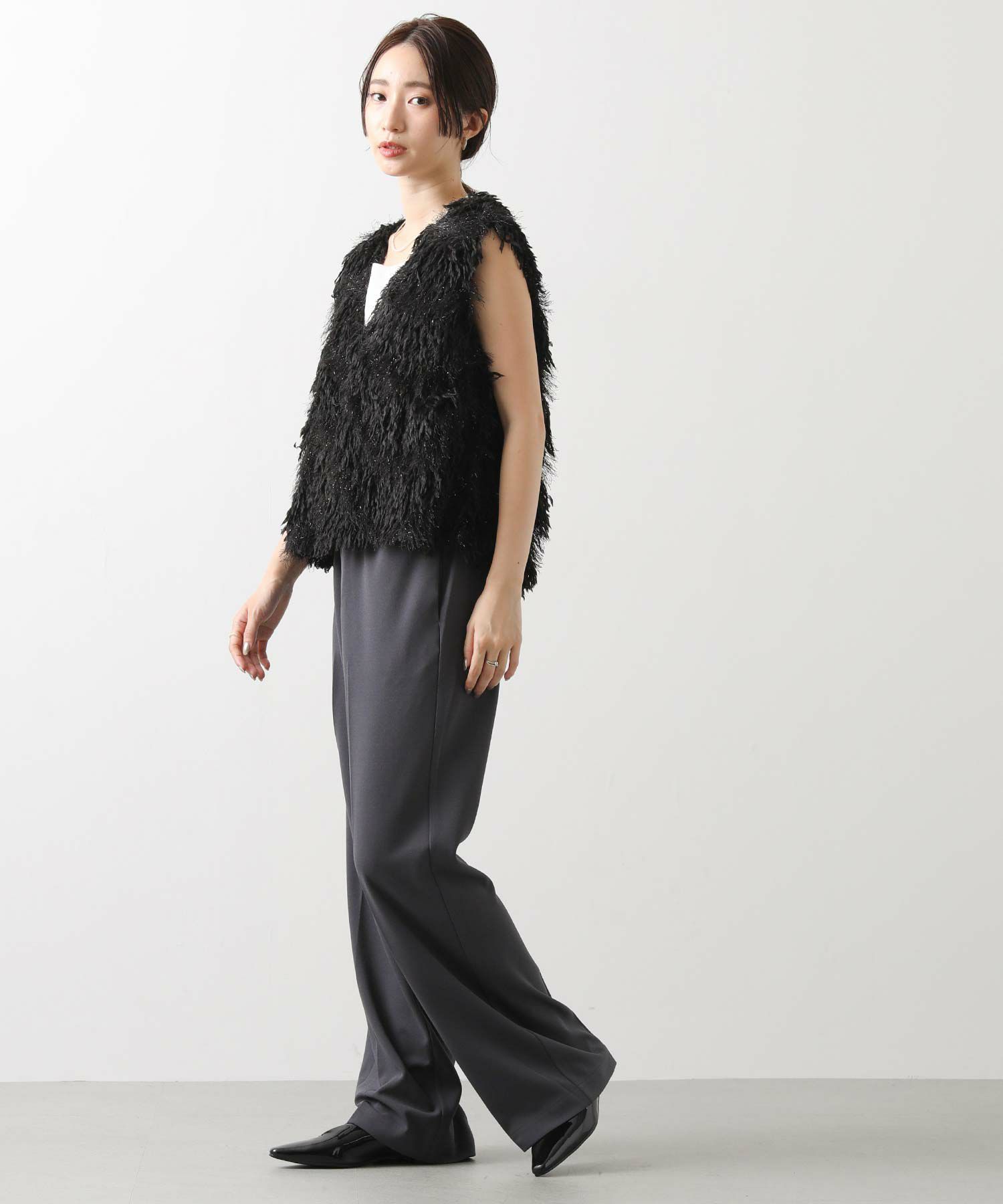 さらっと軽やかなストレッチジョーゼットを使用し、ポイントのラメ入りベルトは総ゴムで穿き心地◎