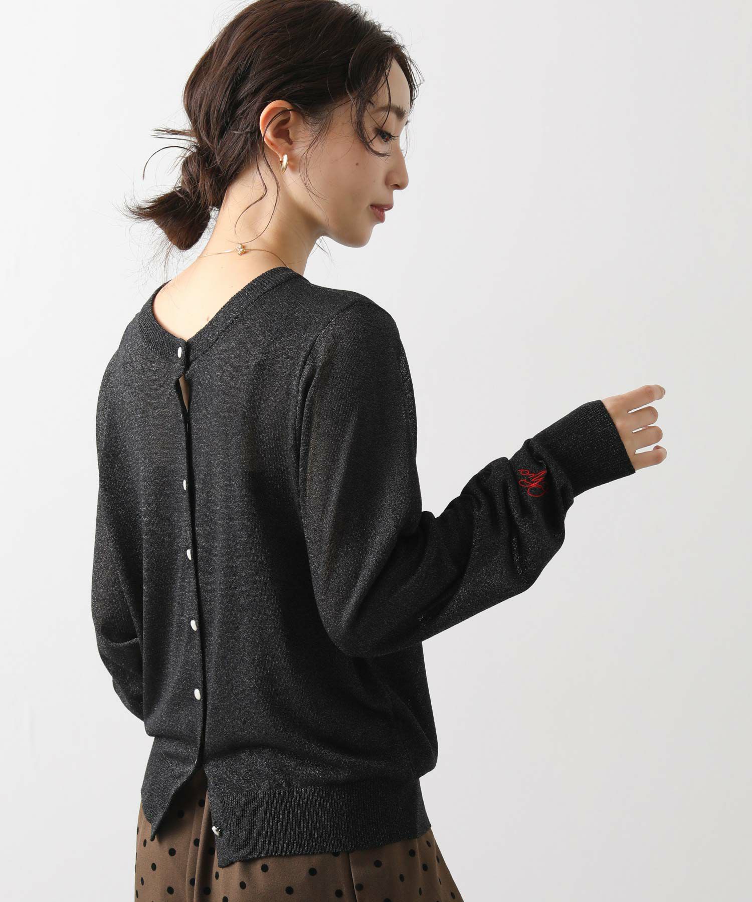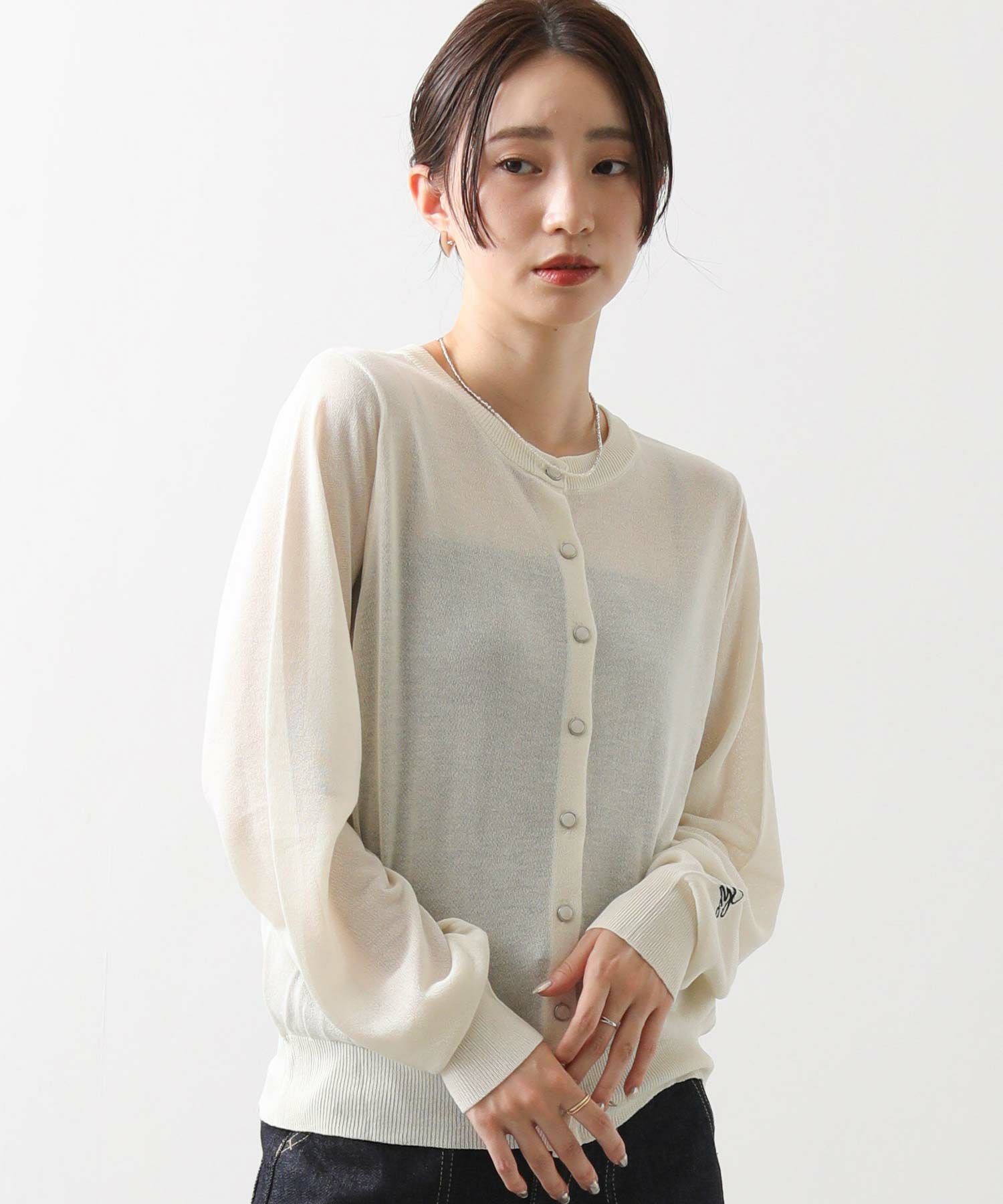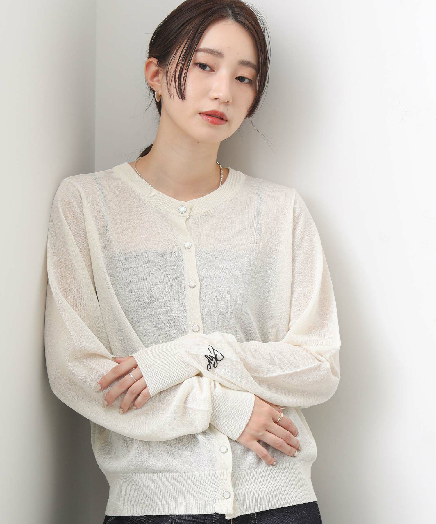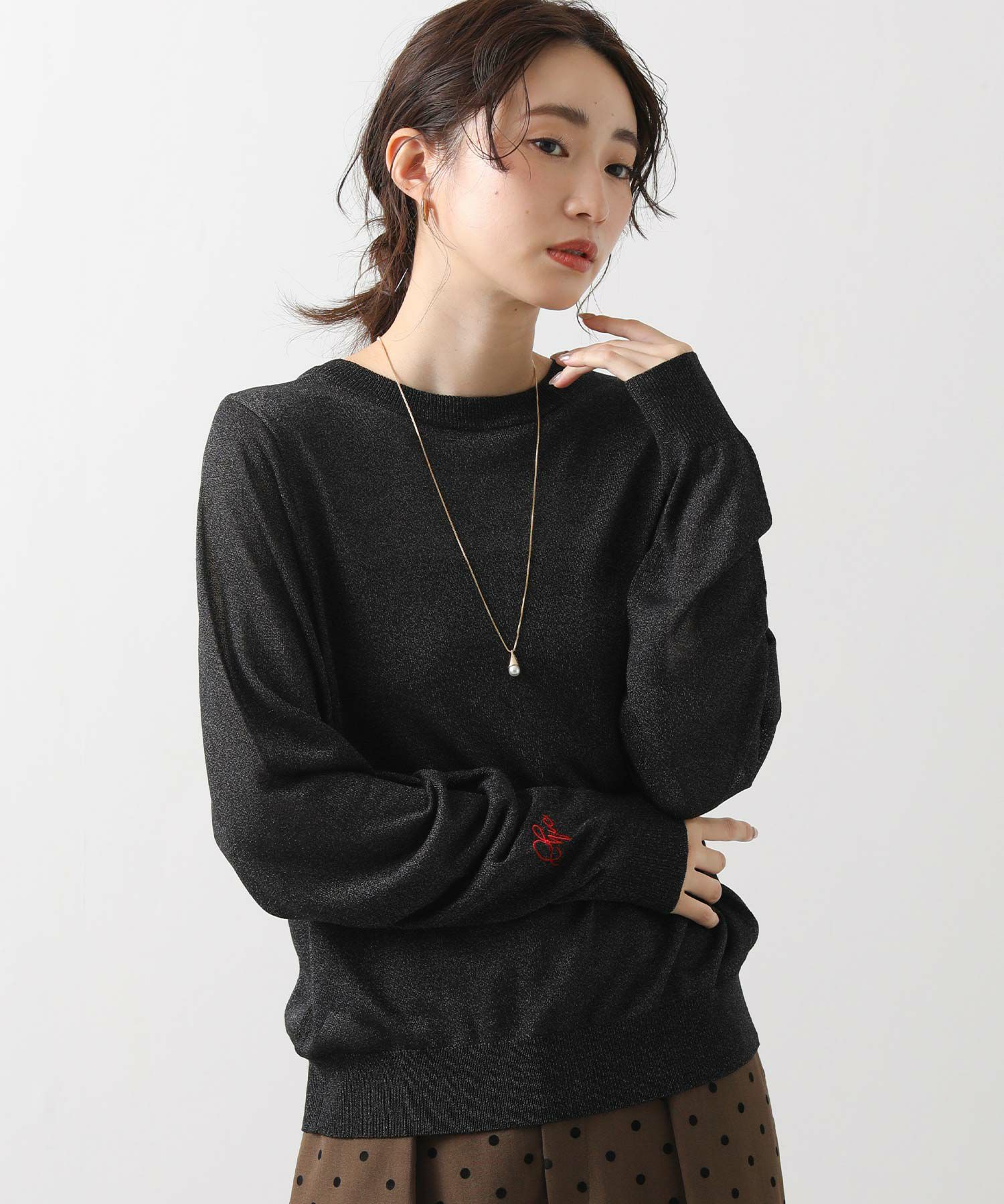 袖口のさりげないロゴ刺繍がポイントのコンパクトシアーニット。