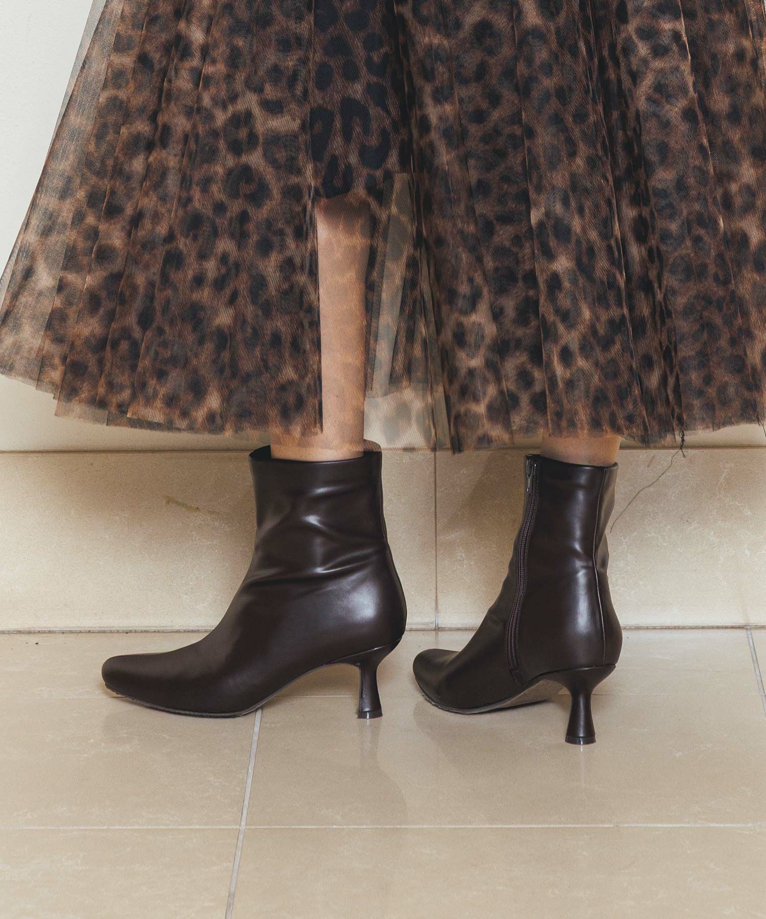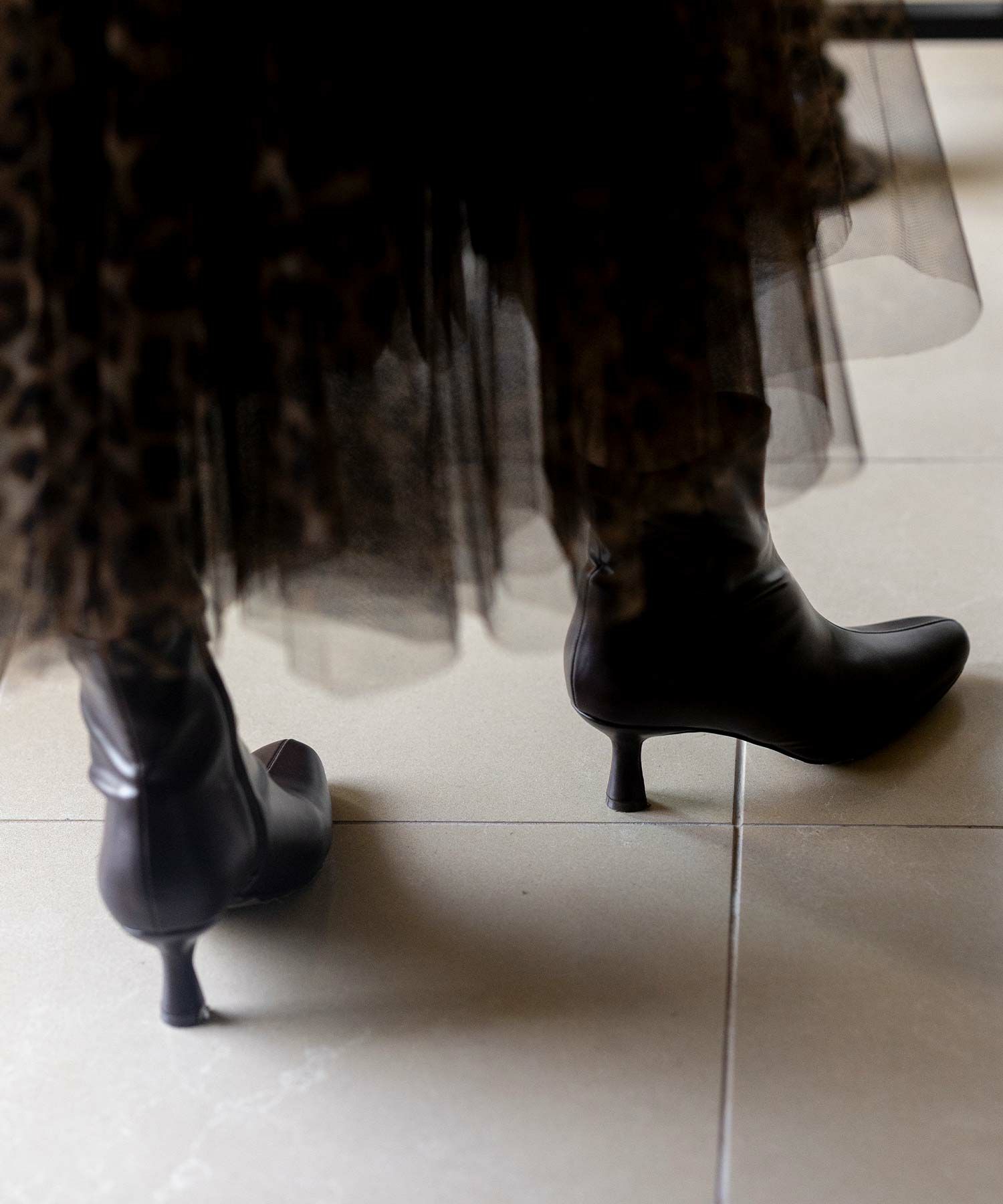 すっきりとしたトゥのラインと、細身の筒がエレガントな印象のショートブーツ。