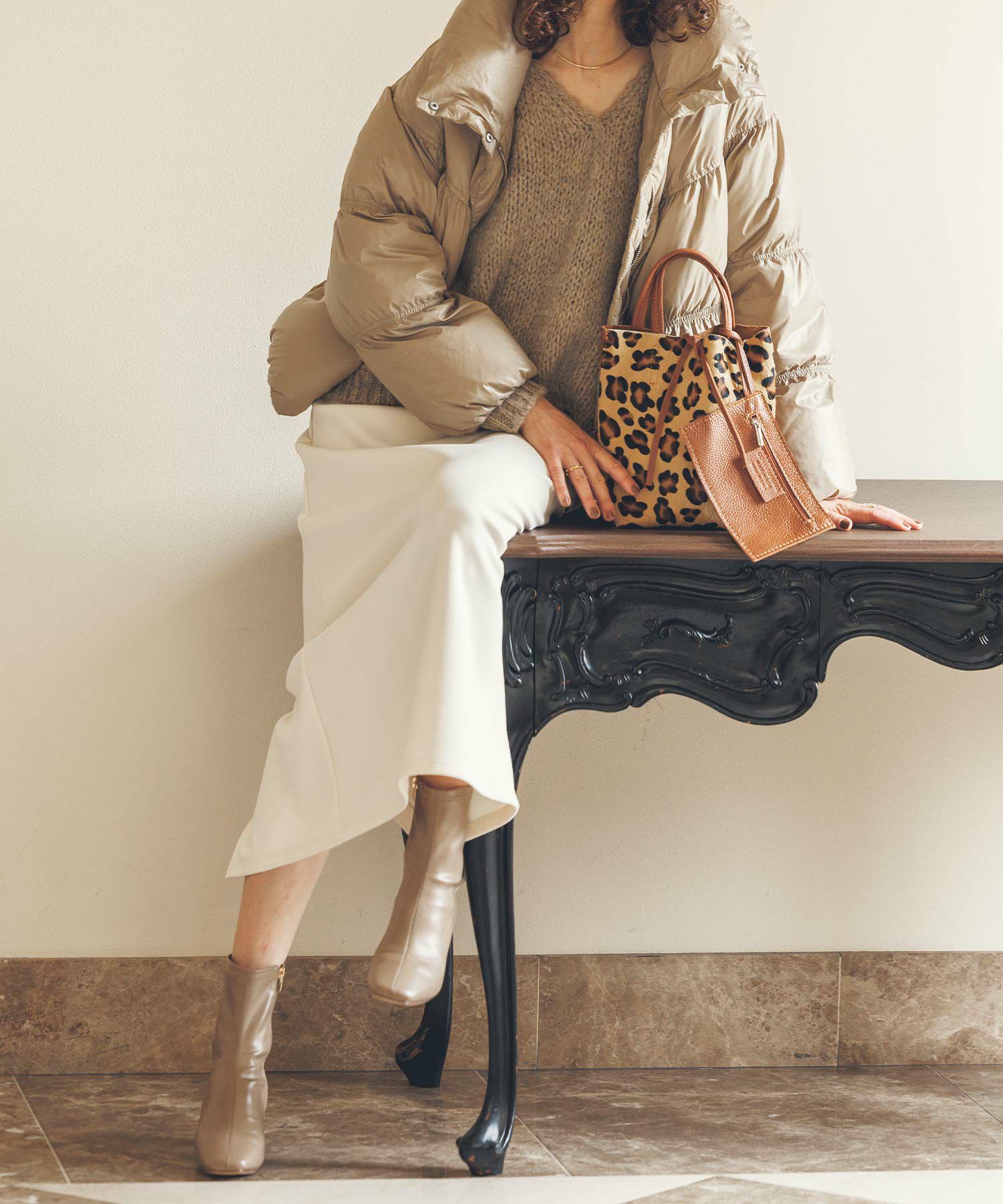 スクエアトゥでパンツからさりげなくのぞかせてラフに合わせても、ワンピースなどのきれいめスタイルにも、幅広いコーディネートに取り入れやすく、旬のバランスを楽しめます。