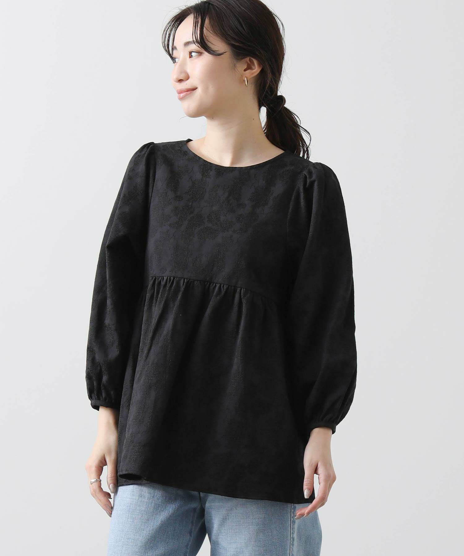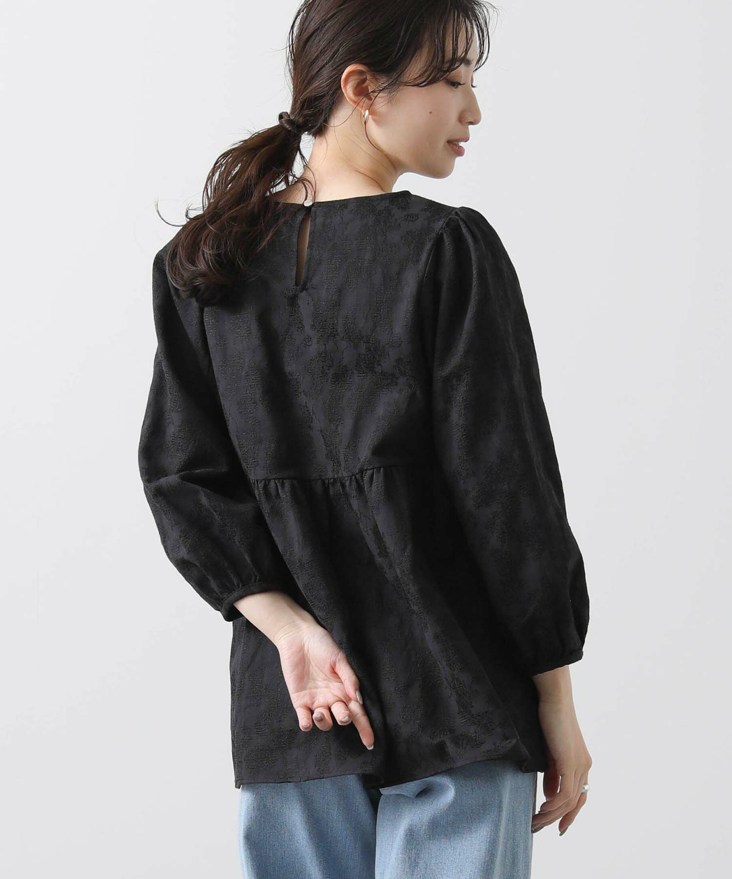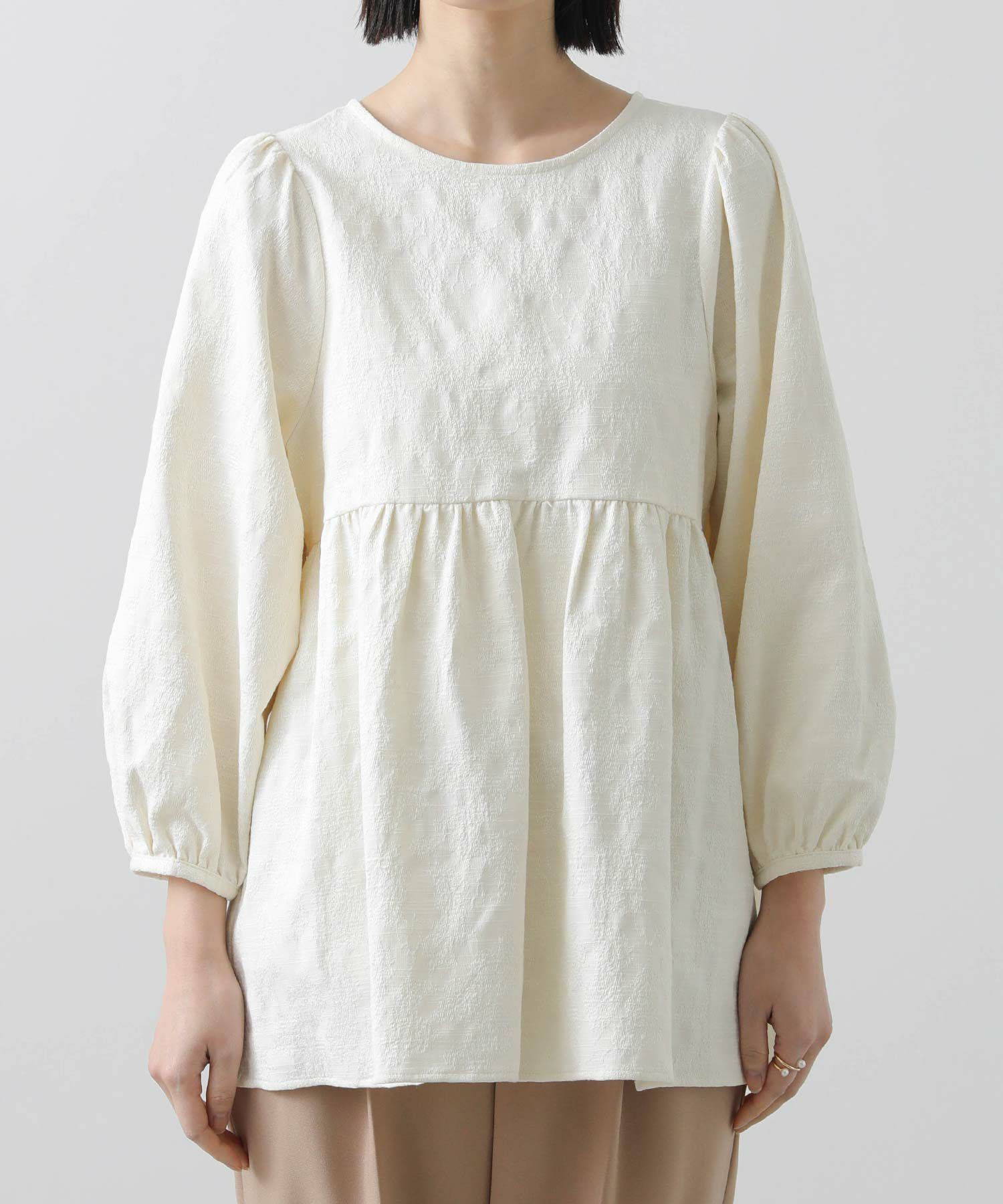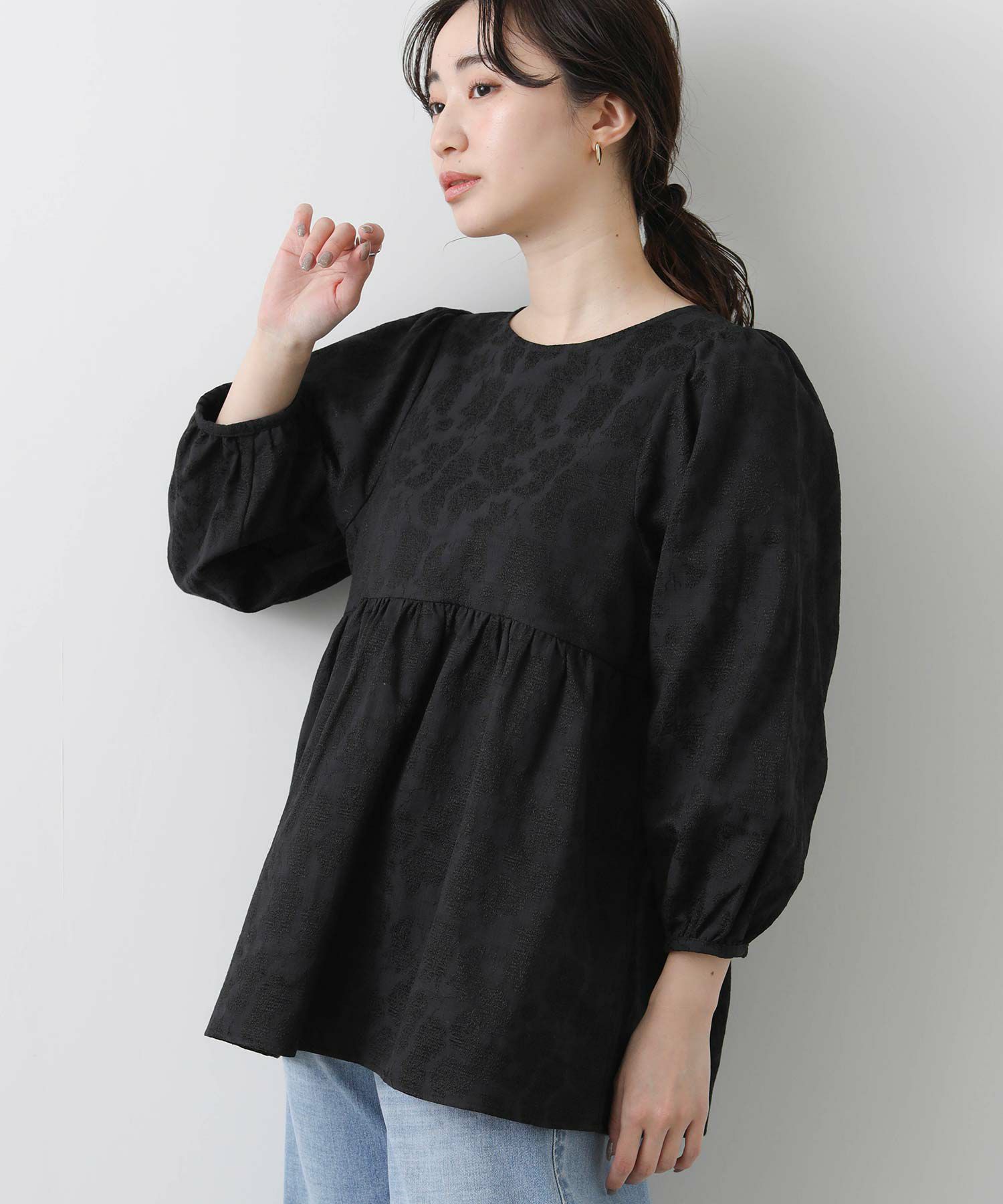 綿混のフラワージャガード素材が上品なブラウス。