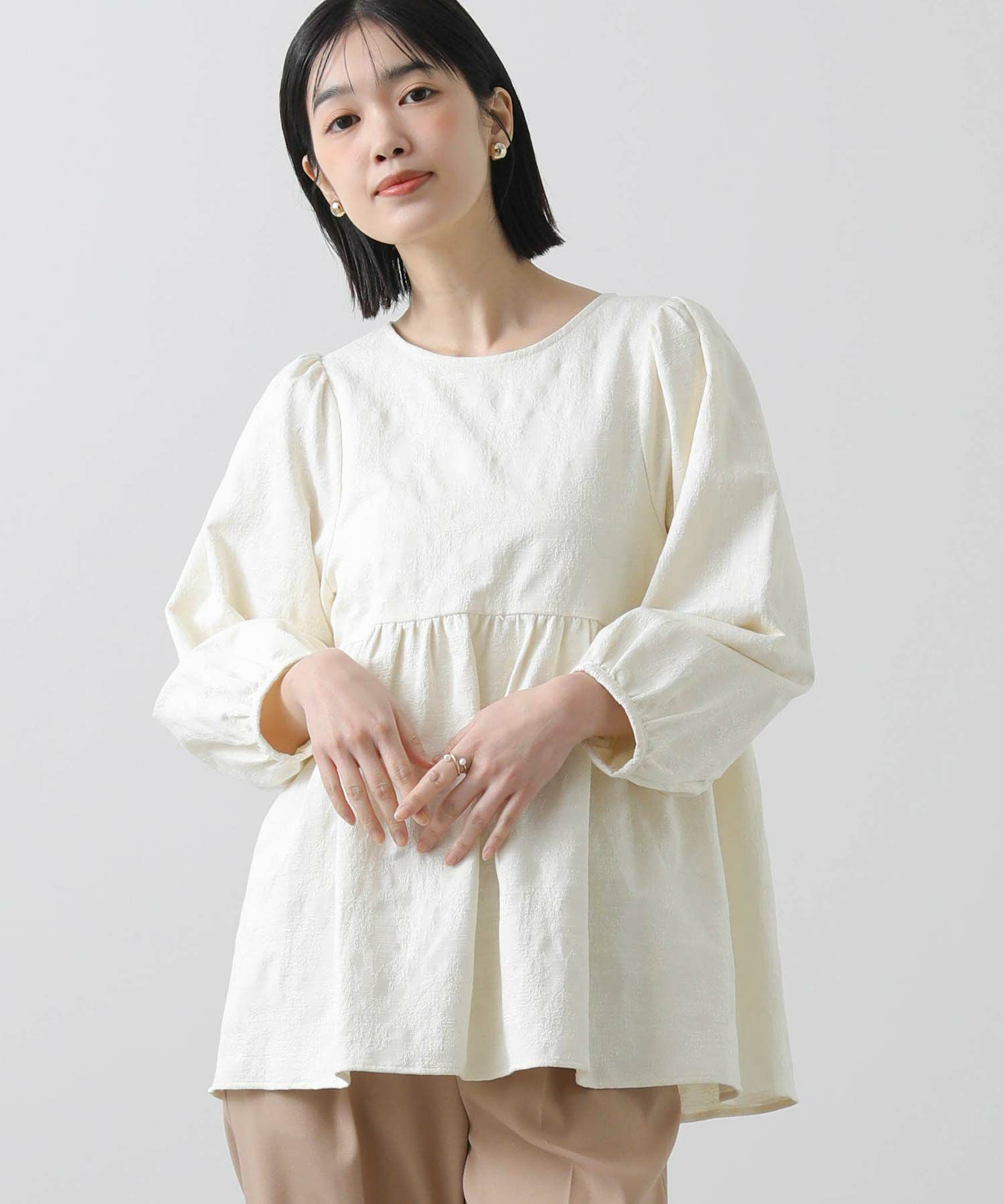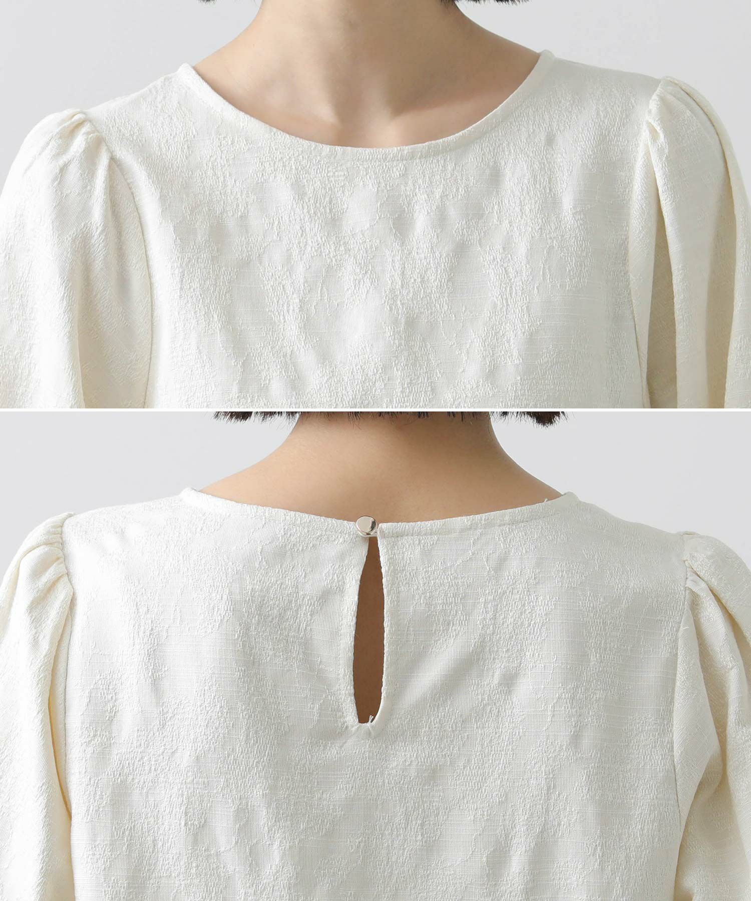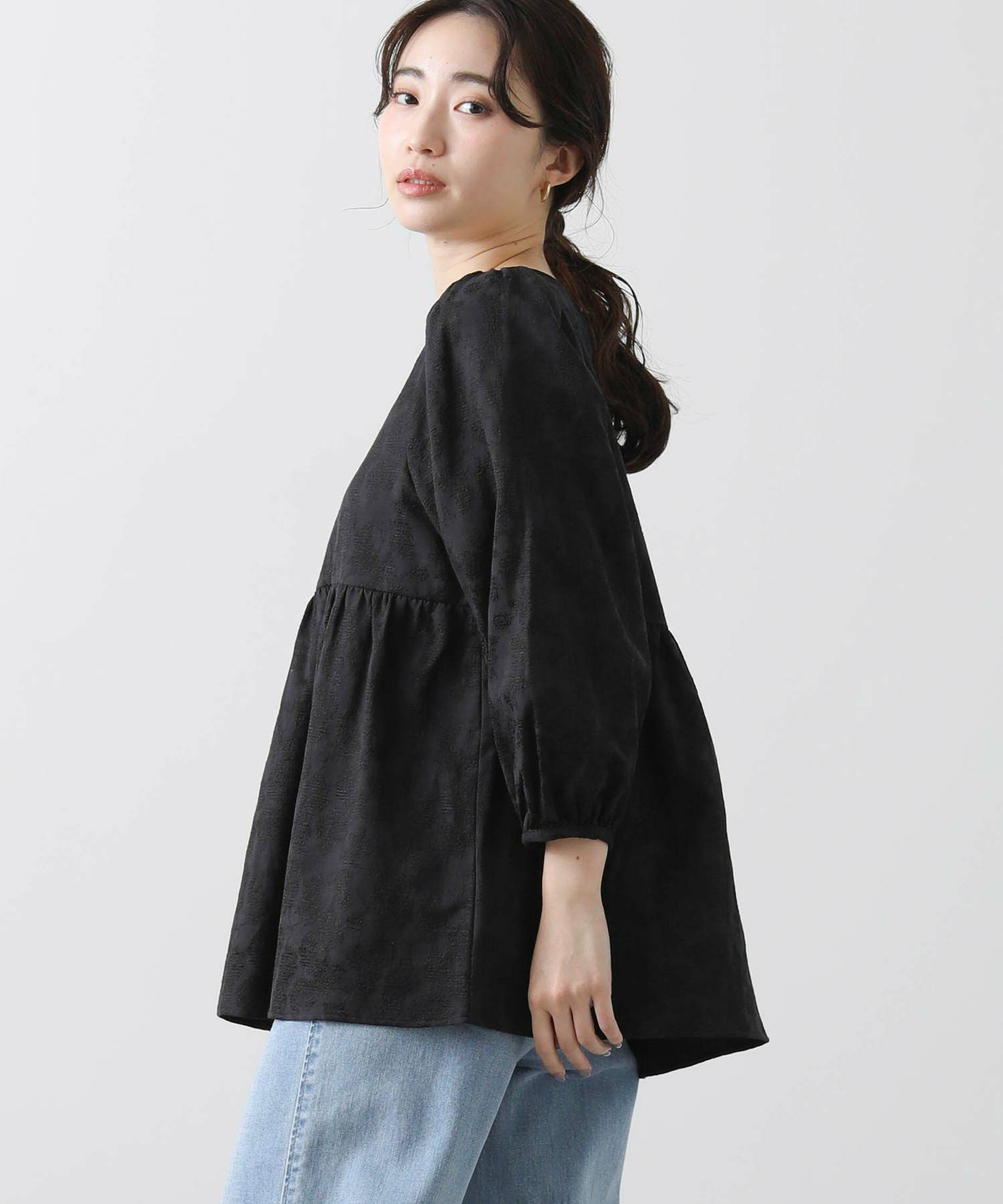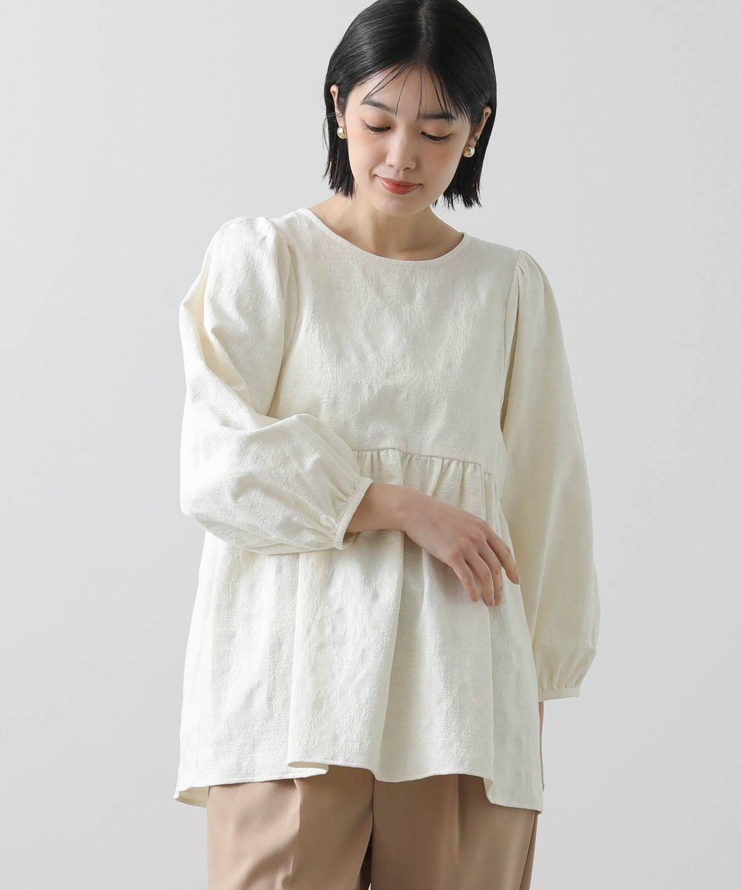 綿混のフラワージャガード素材が上品なブラウス。