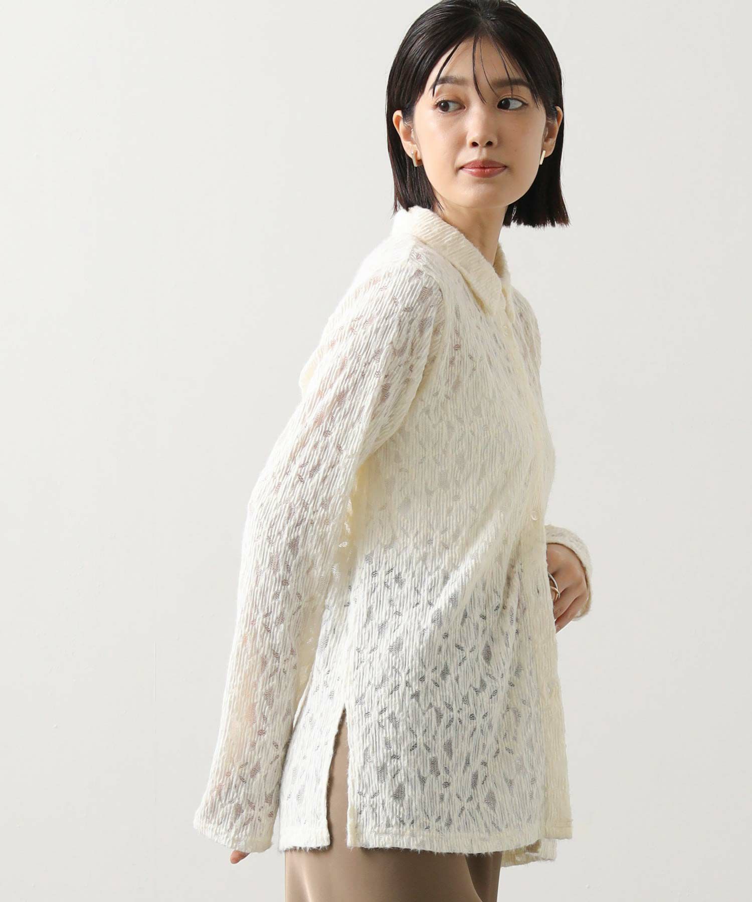 総レースで仕立てたシャツ。