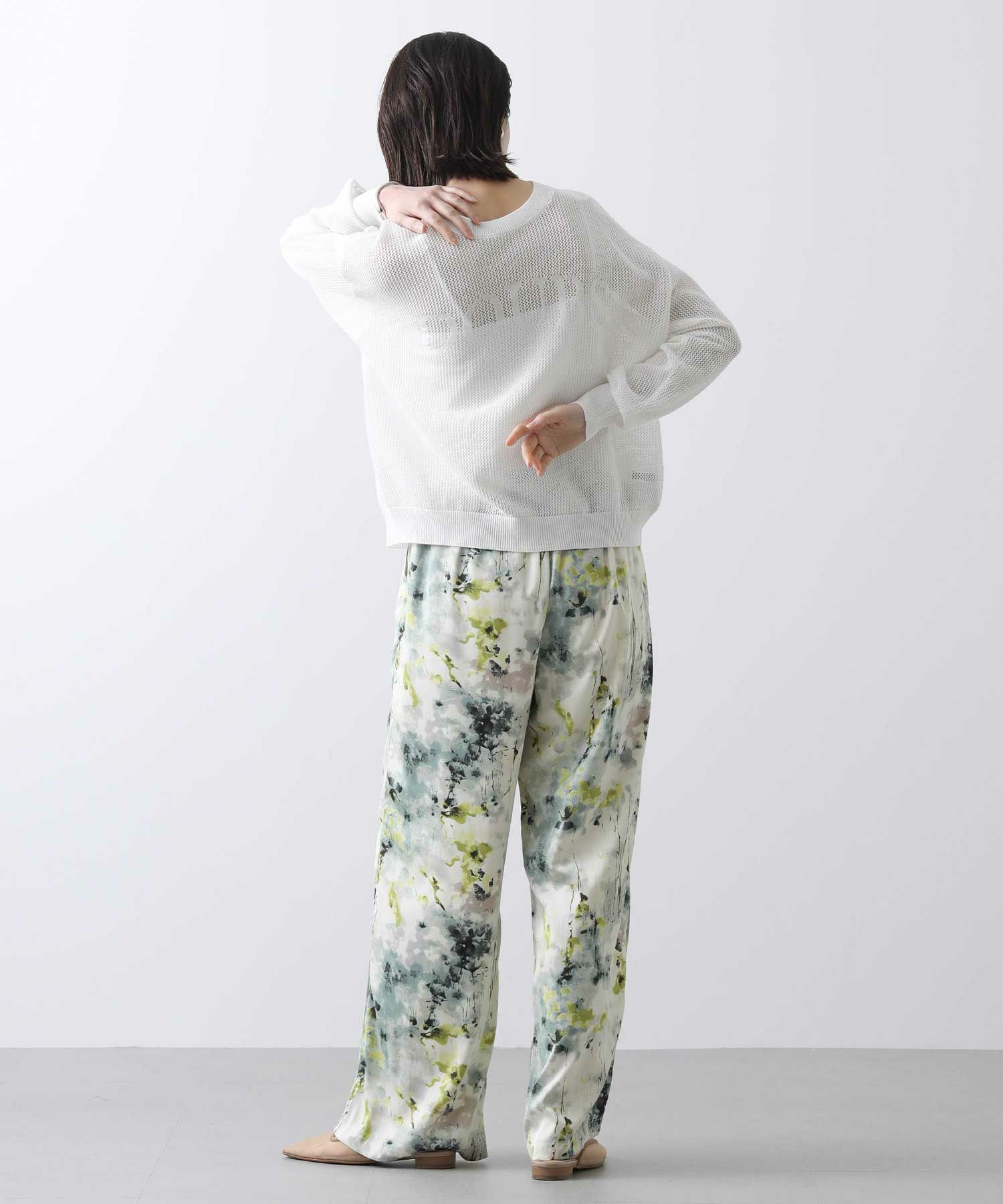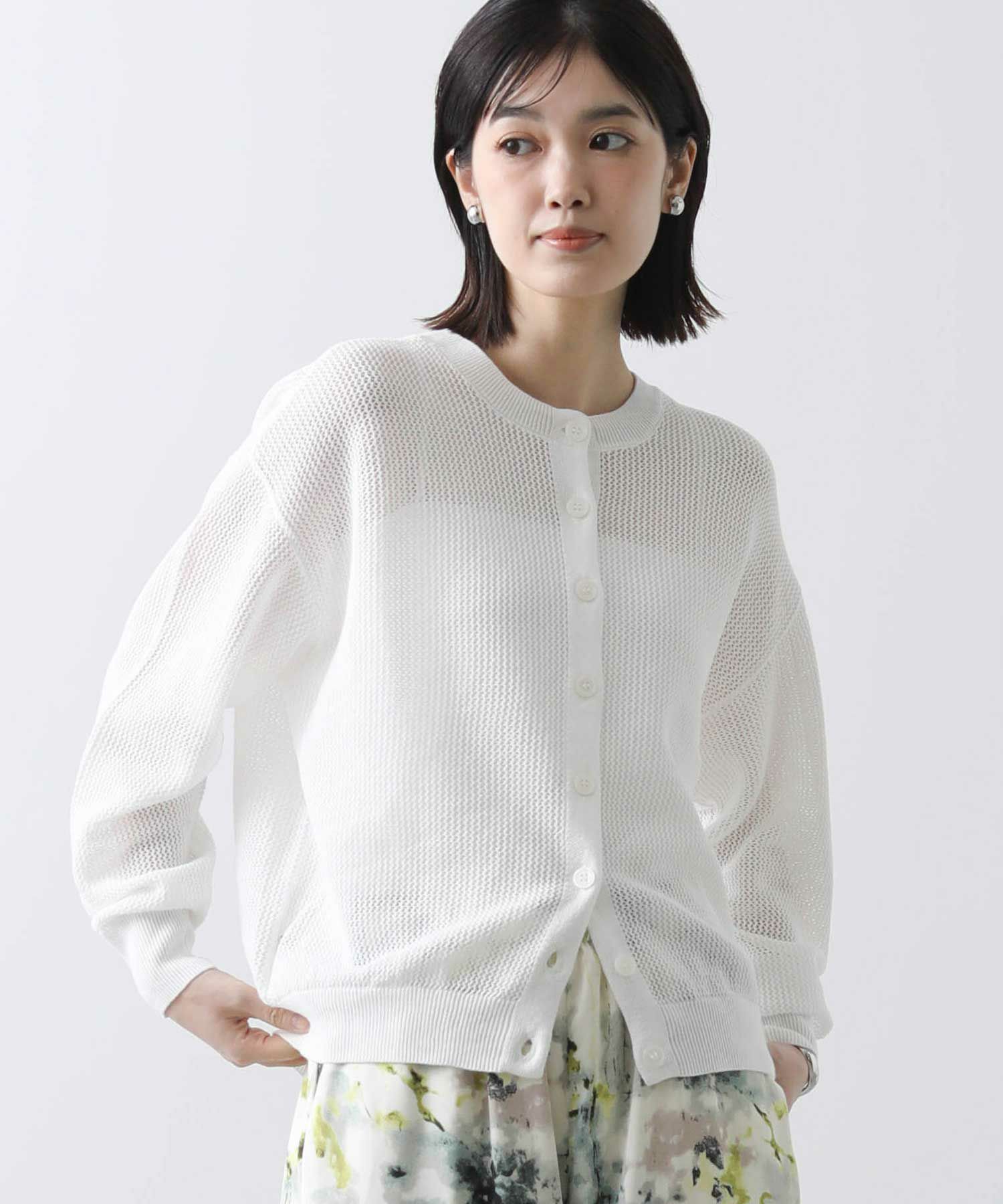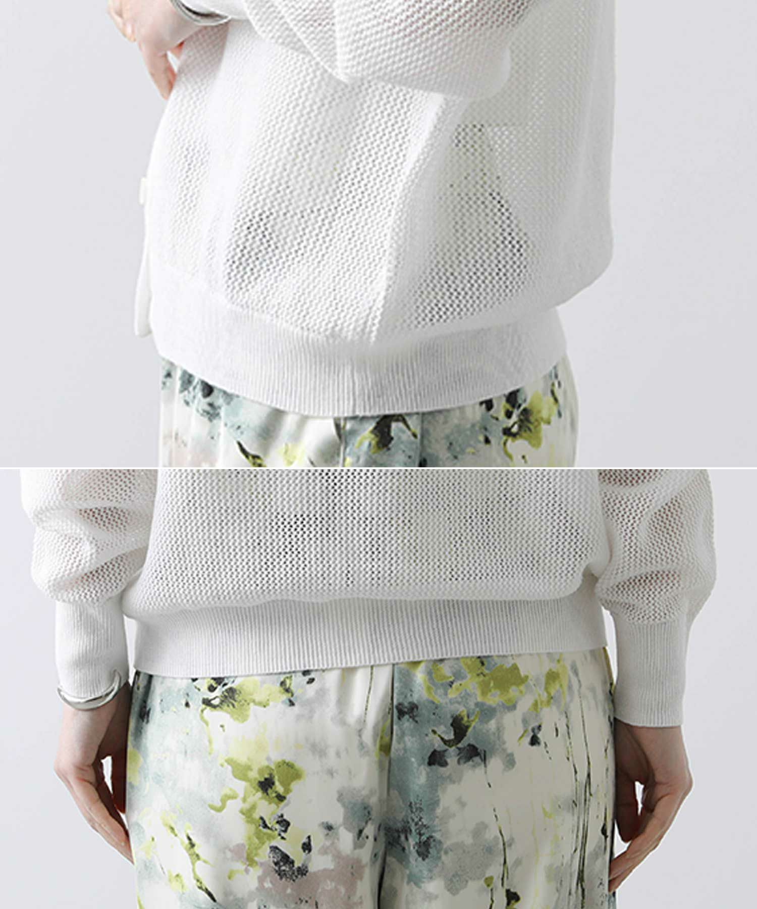 背中がボタンのプルオーバーとしても、クルーネックのカーデとしても楽しめる前後2WAY仕様。抜け感の出るシルエットと程よい透け感で大人っぽく着こなせるアイテムです。