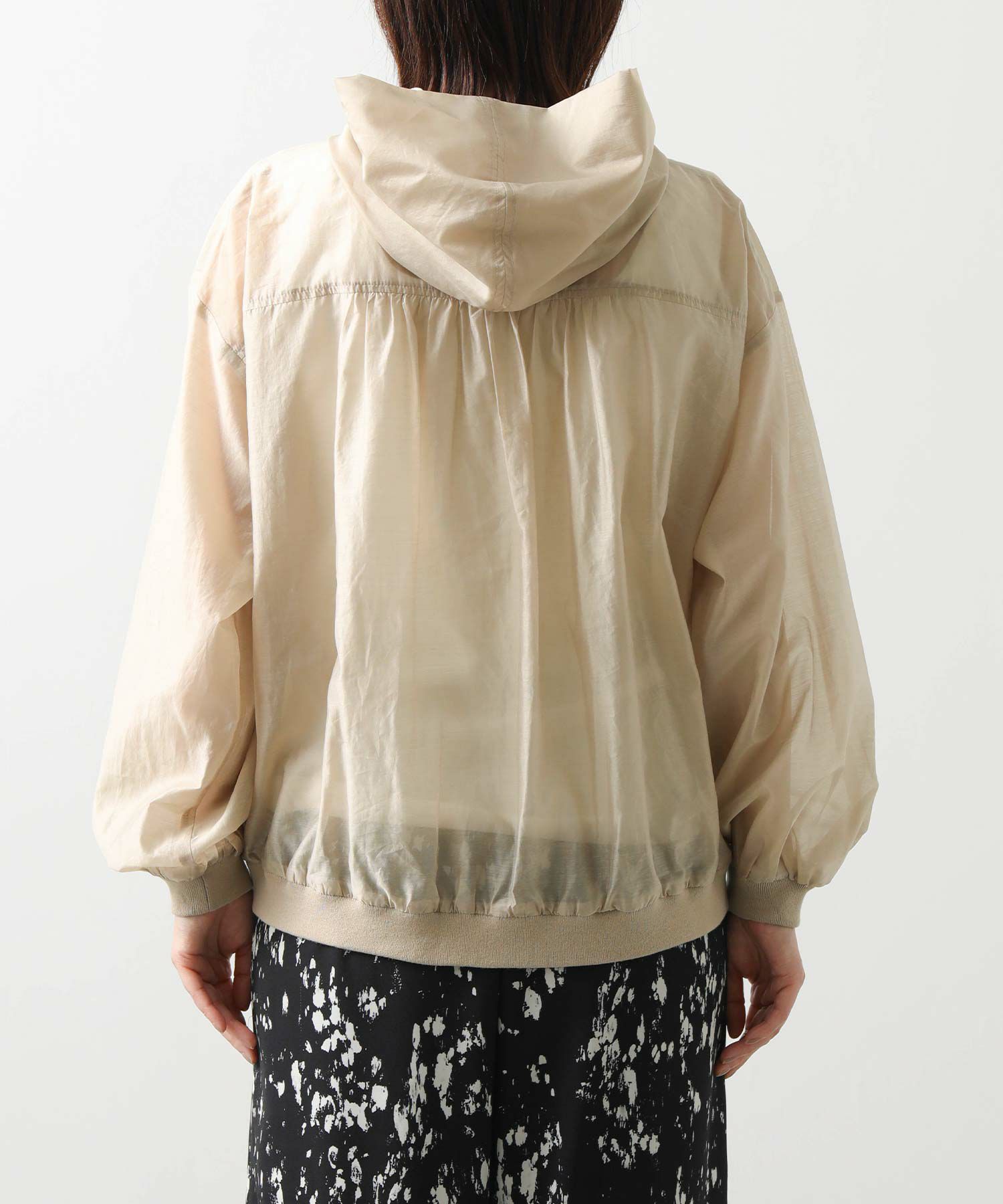 カジュアルなイメージのパーカーですが、上品な透け感の素材でキレイめコーデにも合わせやすい1枚。